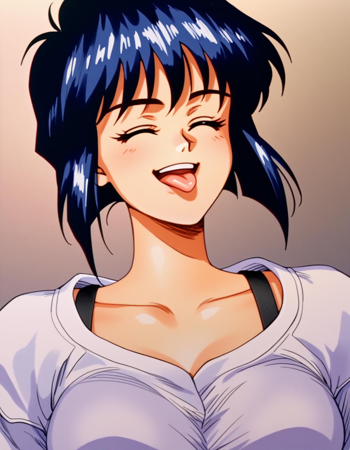 Motoko Kusanagi in the style of the PS1 game and to a lesser extent the original mangas. Trained on a starved dataset.