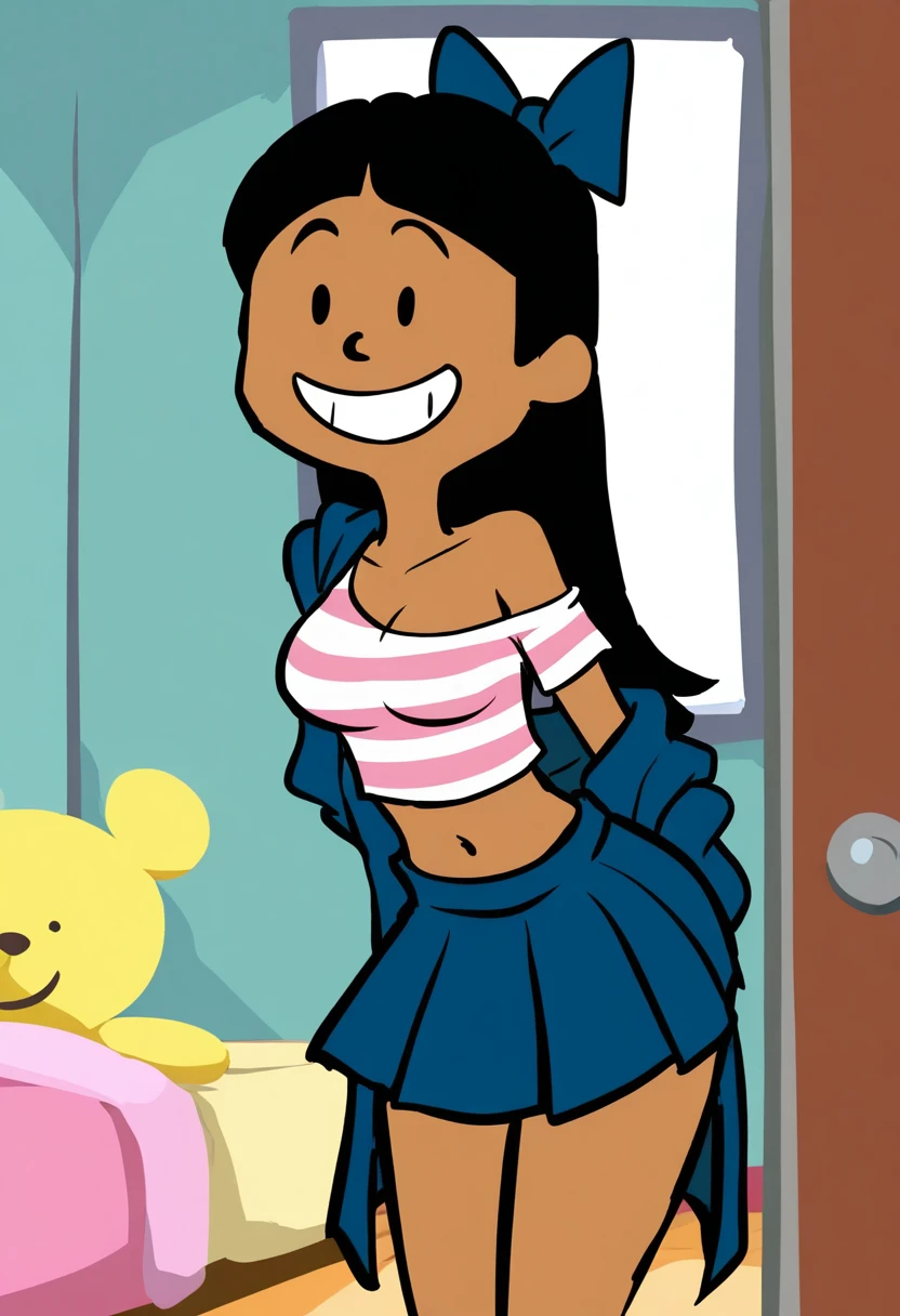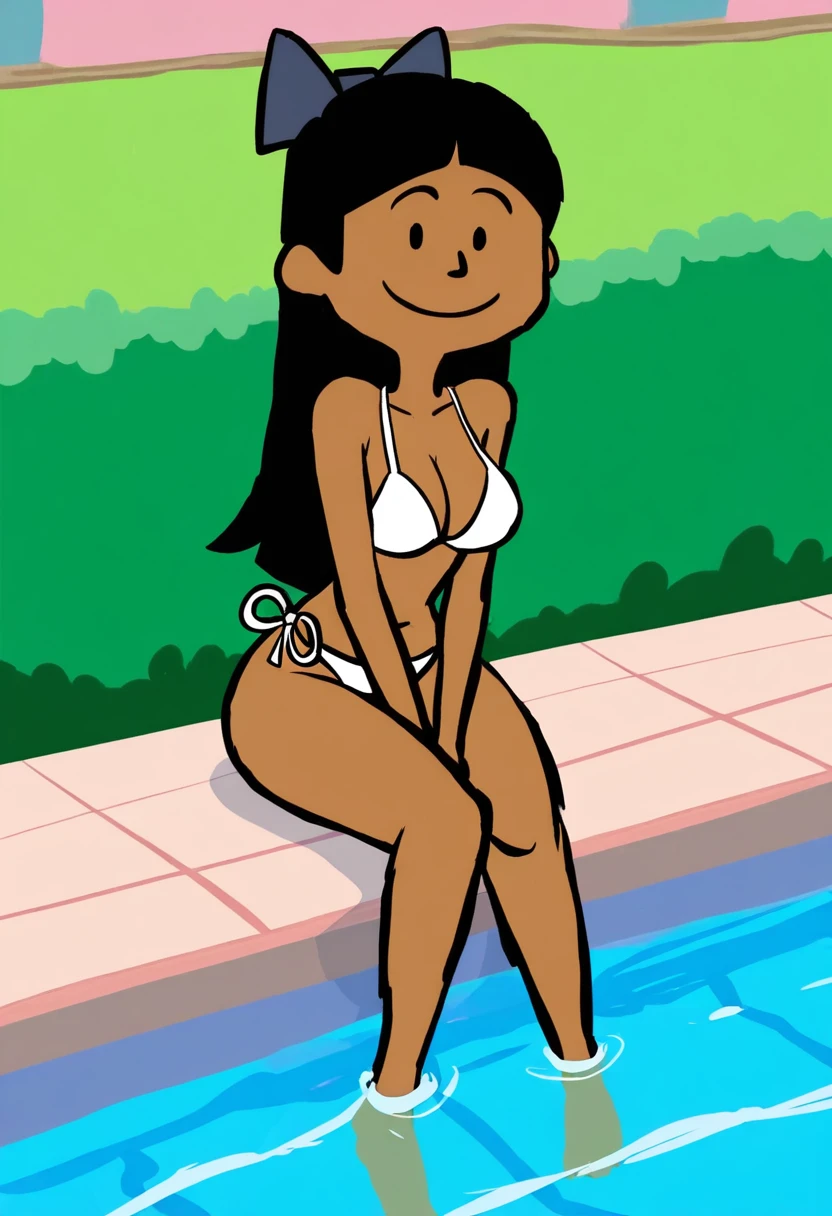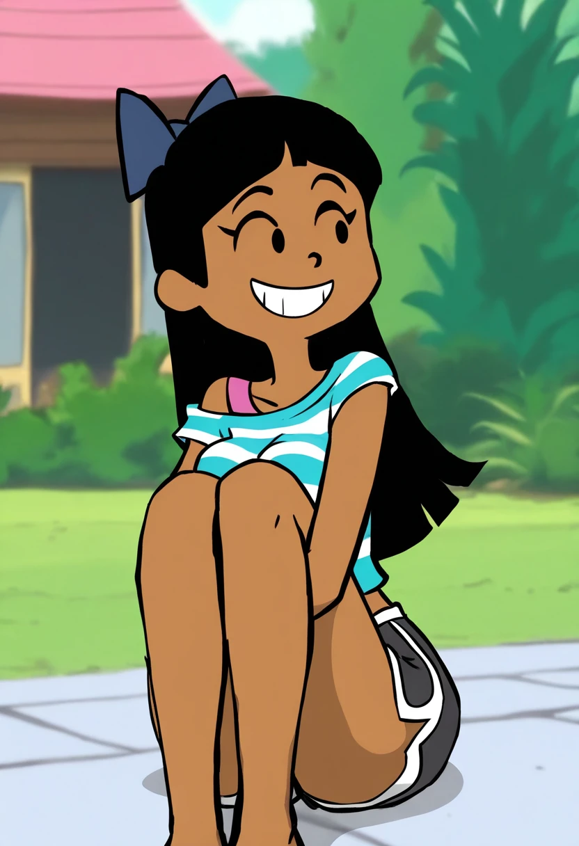 Shappire_Storybooth, straight hair, long hair, black hair, brown skin, hair bow,