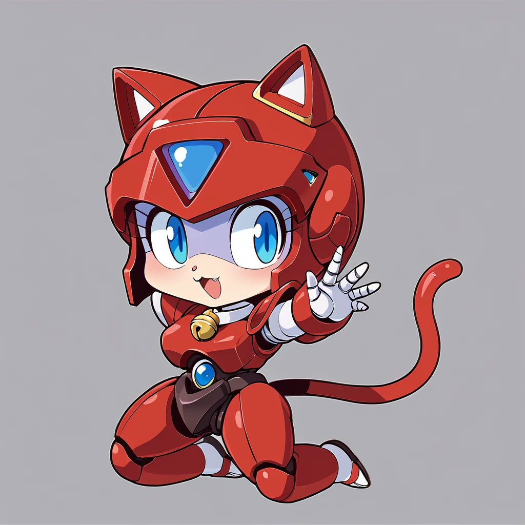 pururun, 1girl,red helmet, cat tail, blue eyes, cat ears, robot, android,red armor,neck bell,
