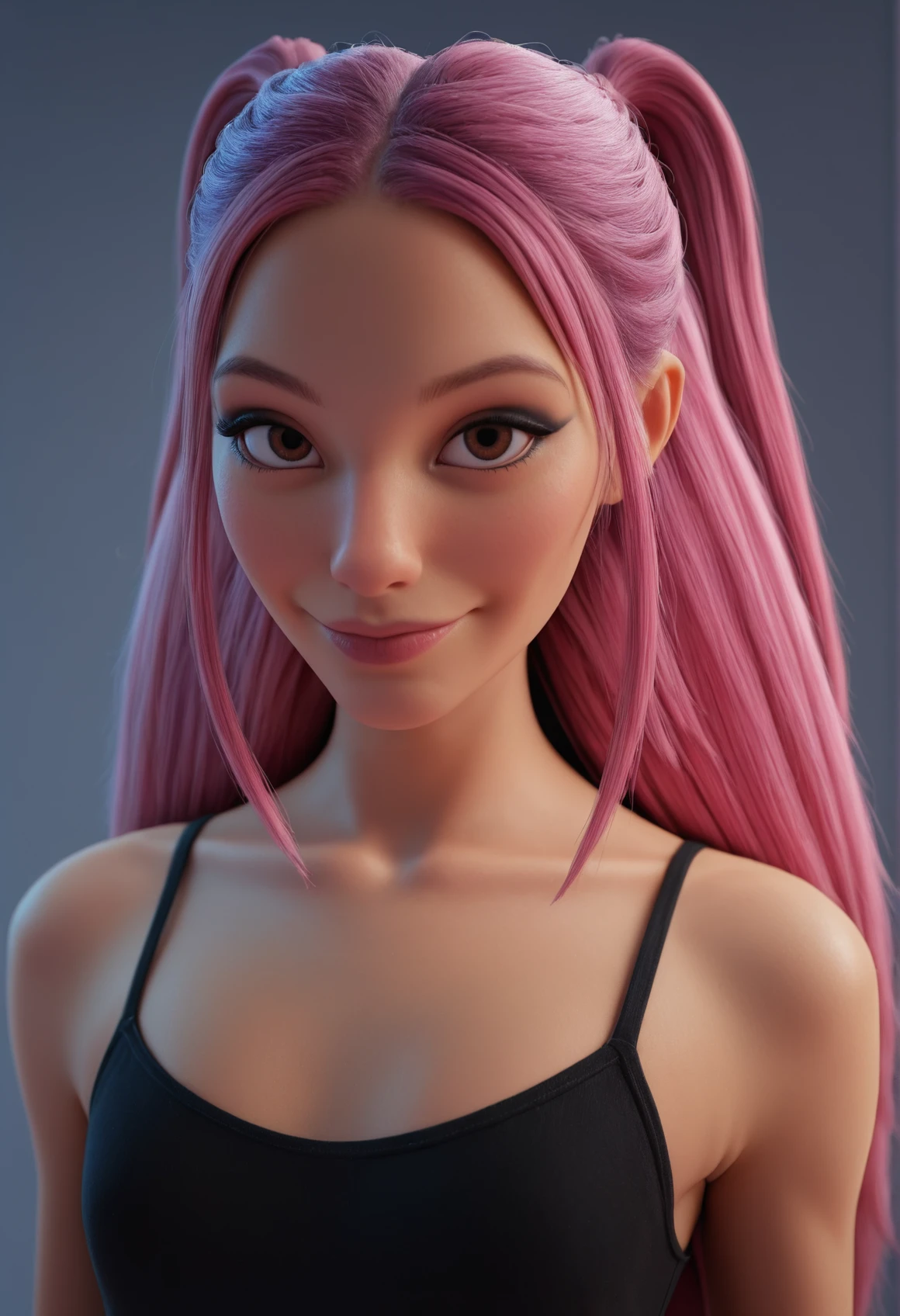 M1raCute, pink hair, twin tails, long hair, brown eyes