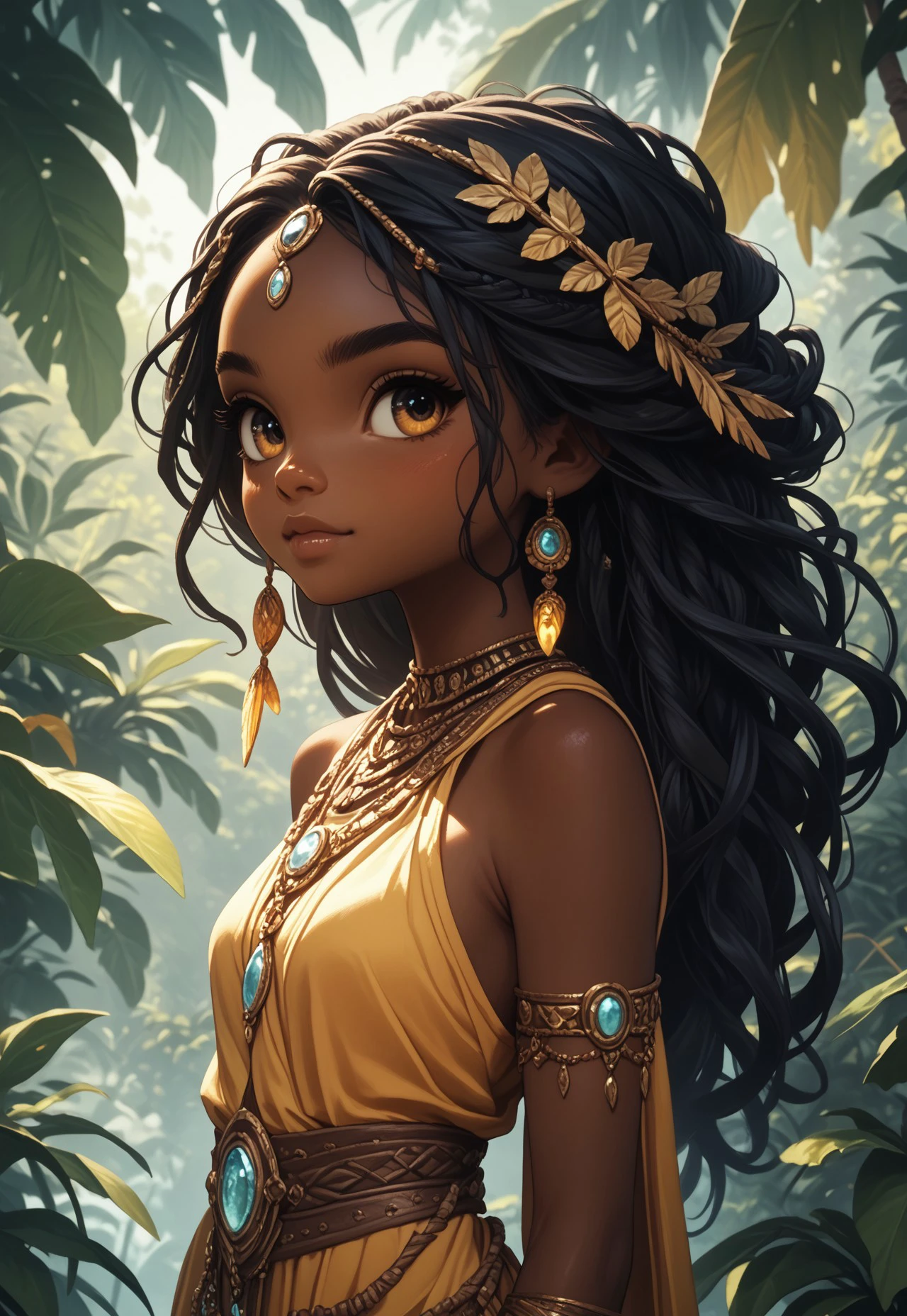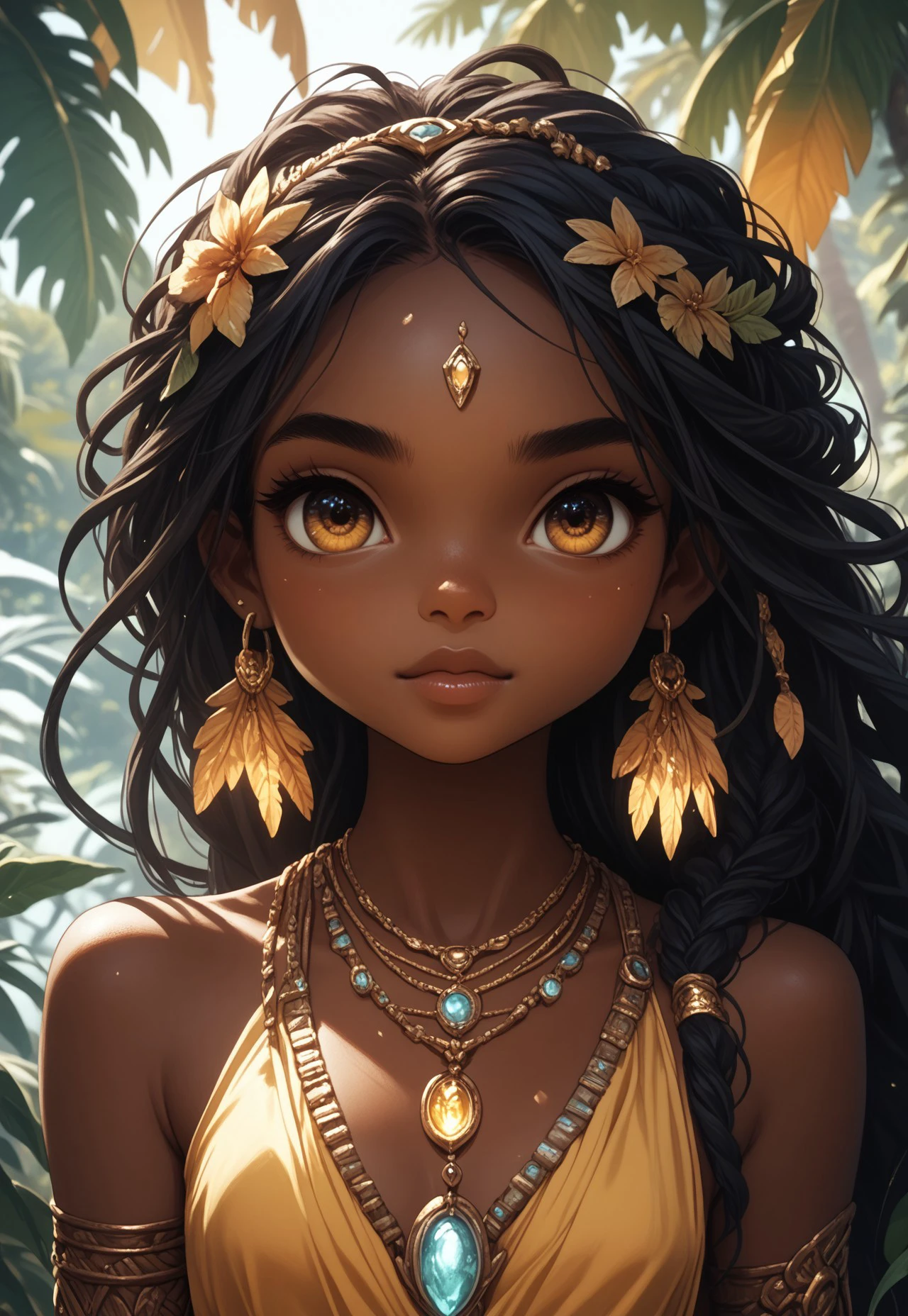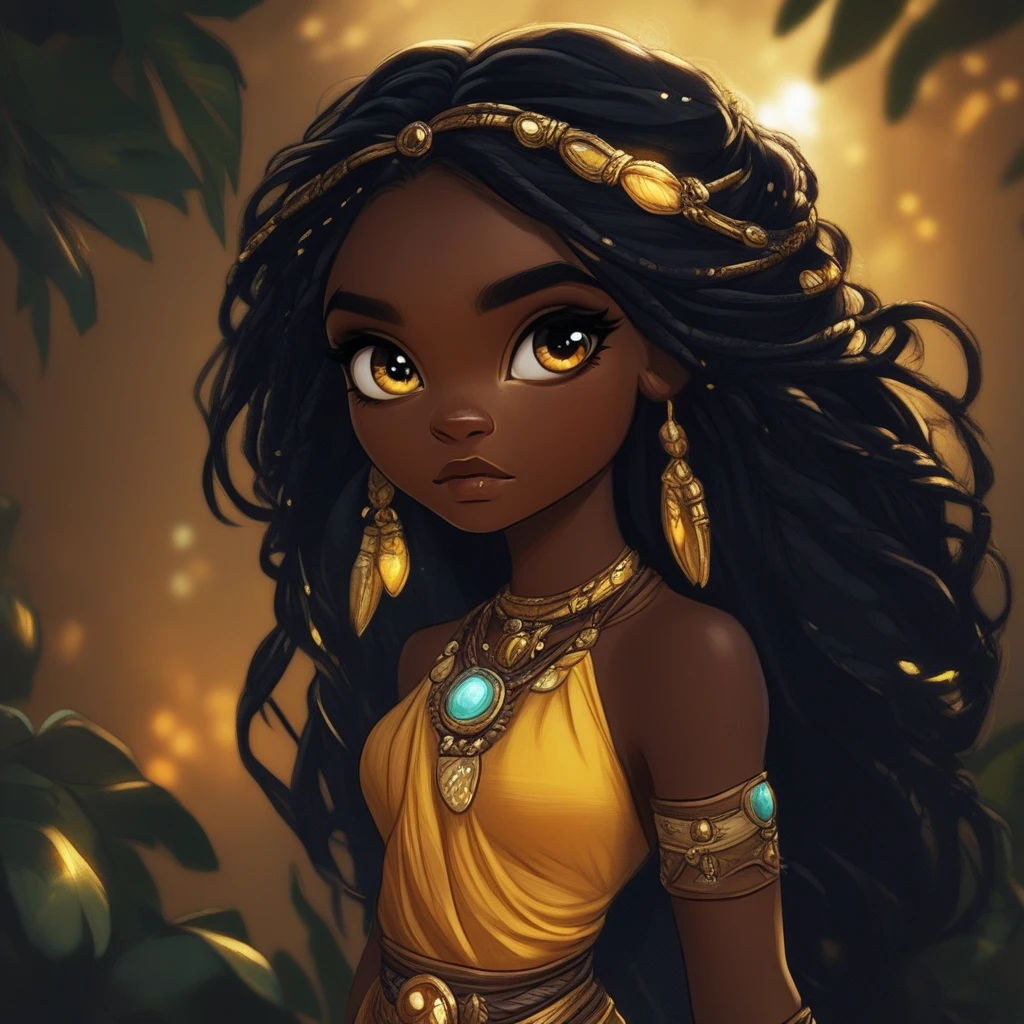 Amaramb, dark-skinned female, dark skin, jewelry, long hair, black hair,