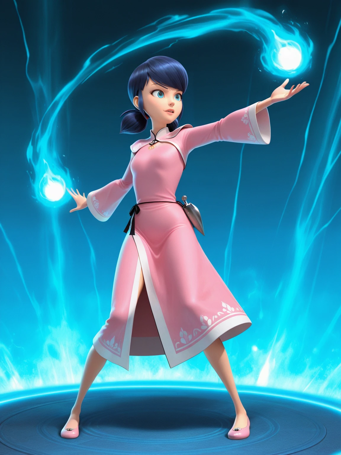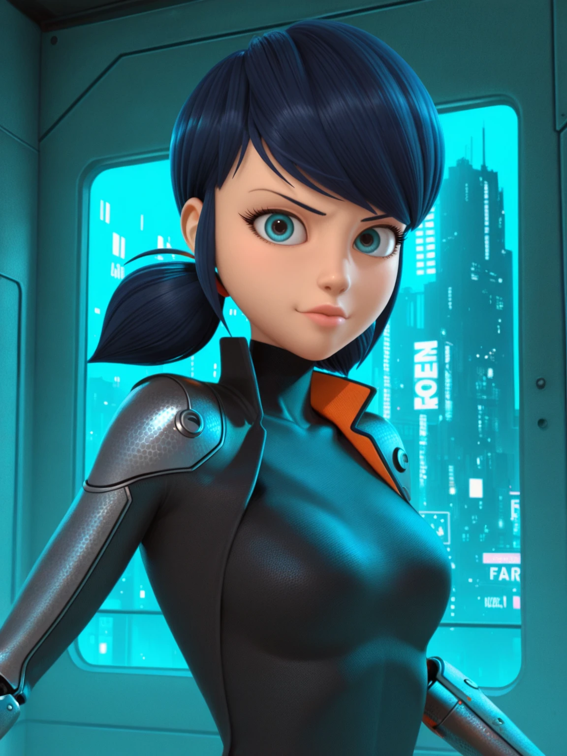 Recommend prompt: "l_b, 1girl, fair skin, black hair, shoulder-length hair with pigtails, light pink lips, blue eyes"