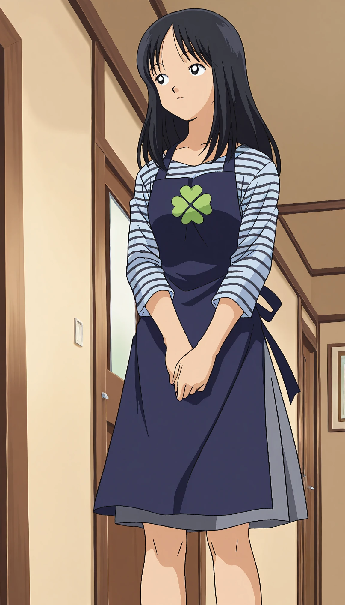 **for one, somehow, the model decides the apron is green by default, though in all of the training images it was dark blue --- easily fixable through describing the clothes