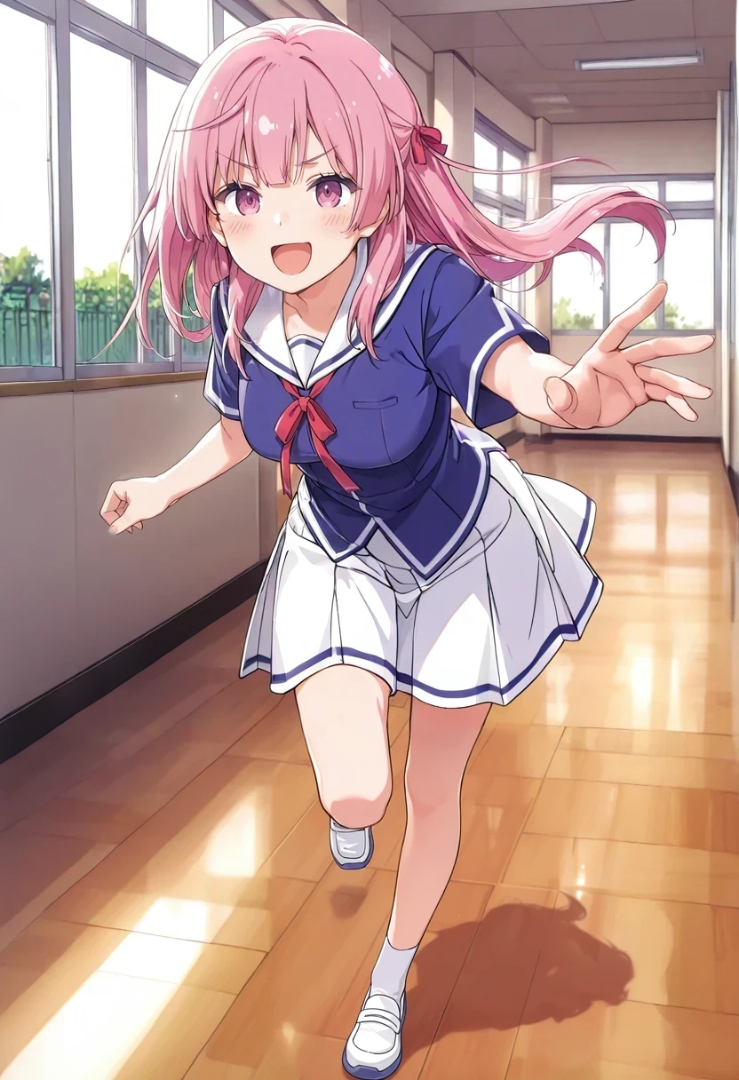 serafuku,red neck ribbon,blue shirt,white skirt,pleated skirt,