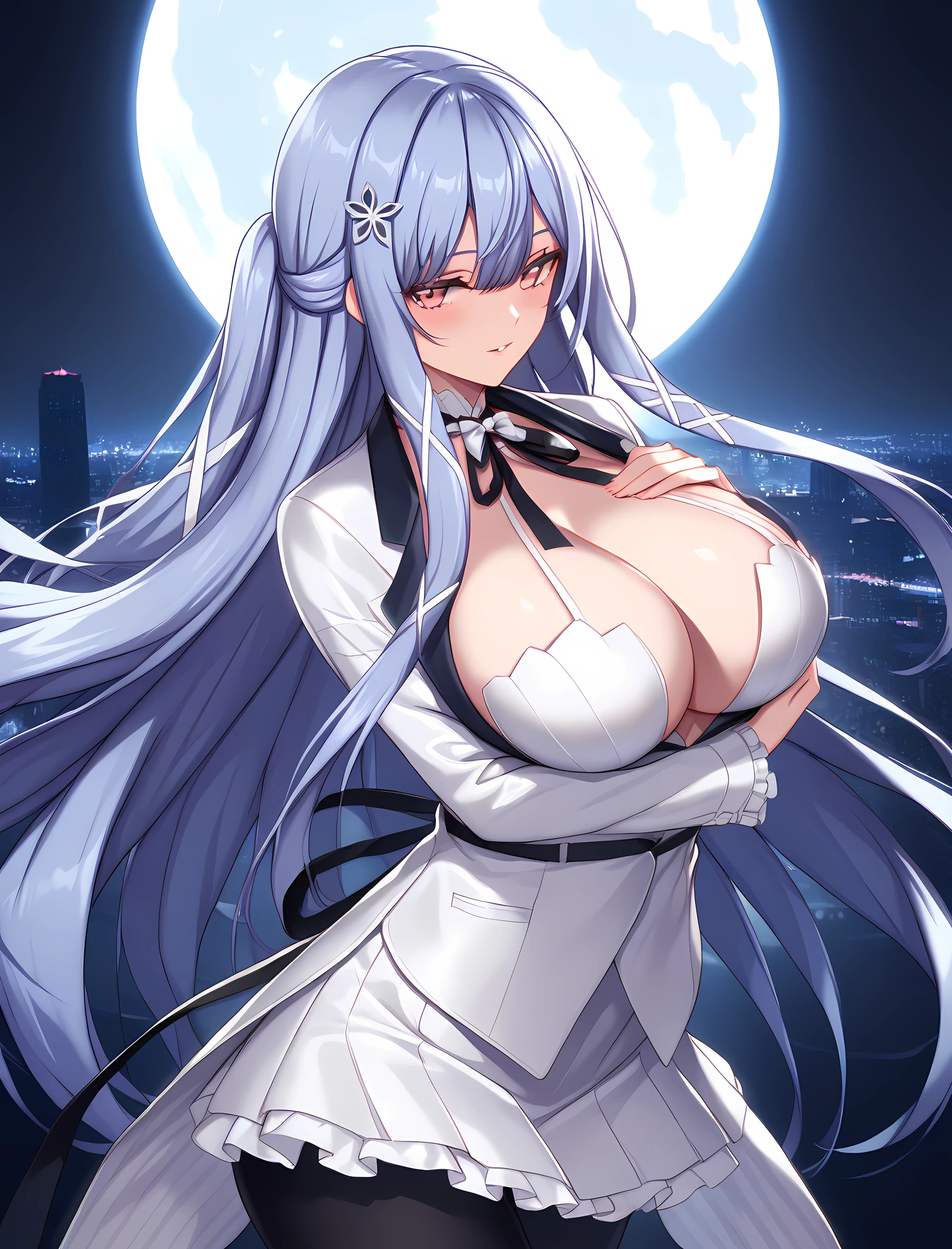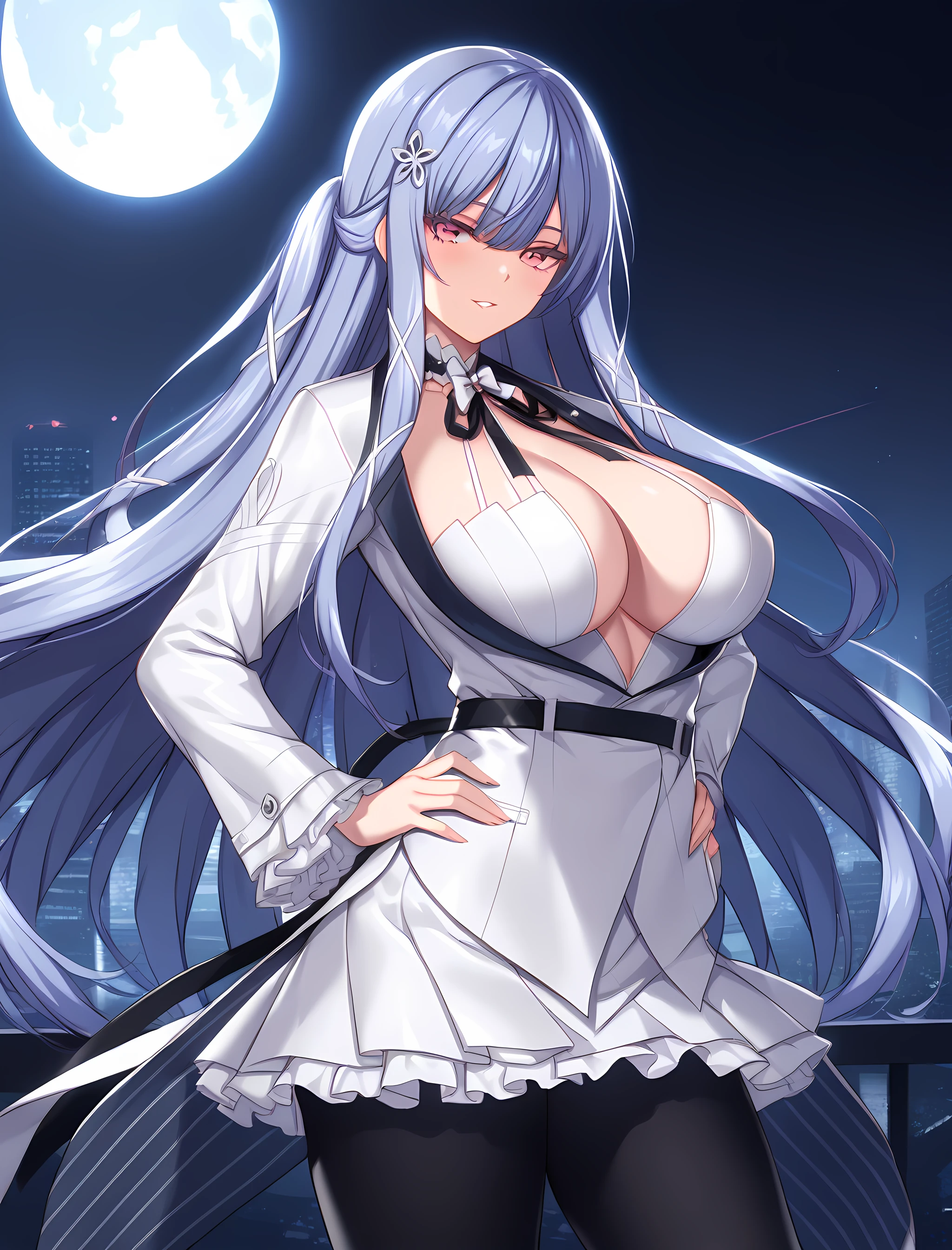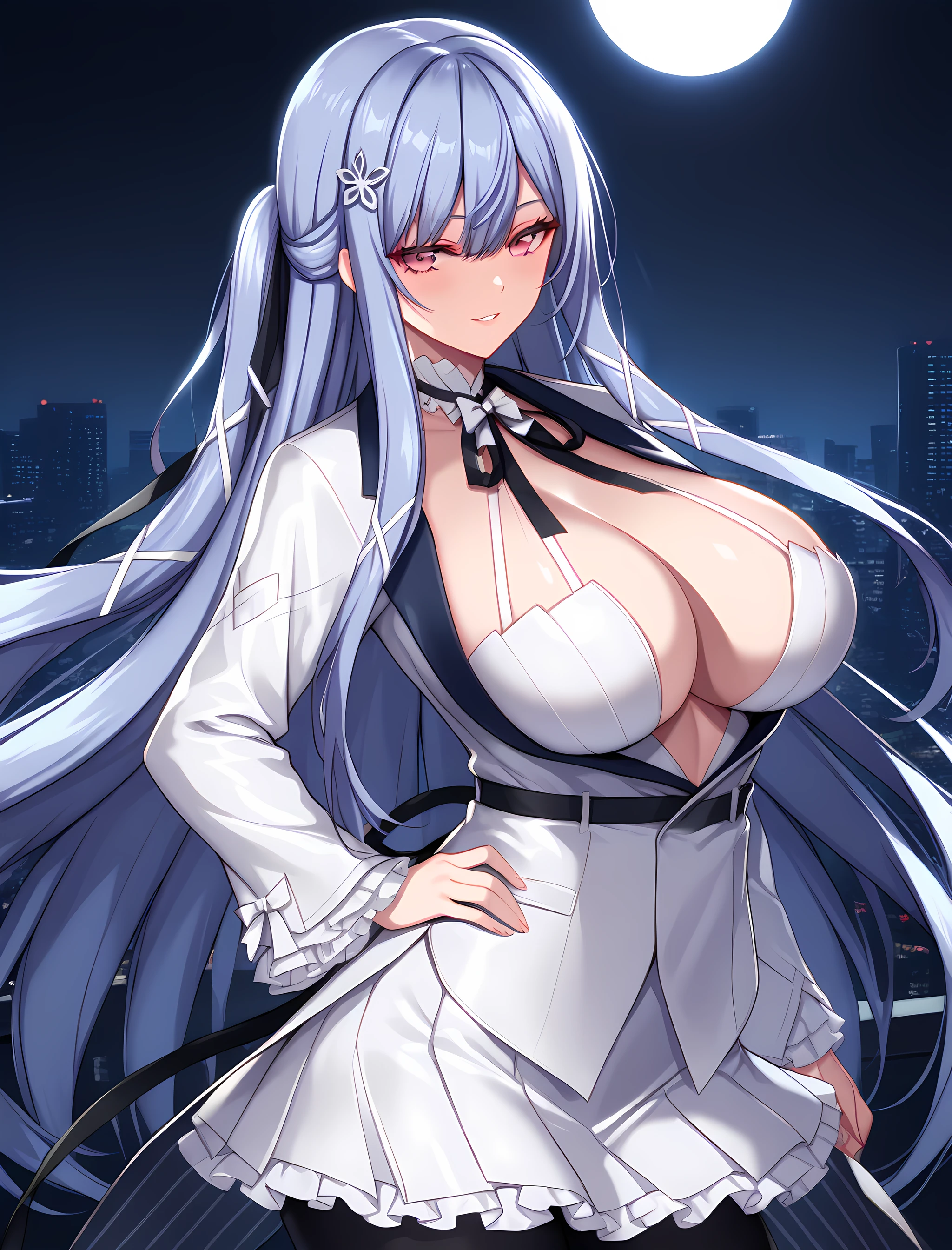 Activation tag is "swan_claire, long hair, black gloves, pantyhose, large breasts, high heels, gloves, cleavage, black pantyhose, dress, white dress, bangs, red eyes, white footwear, criss-cross footwear, standing, originaloutfit, ". Since she has just one outfit, these tags should be sufficient to call it. It's a combined-style, designed for NSFW and SFW generation.