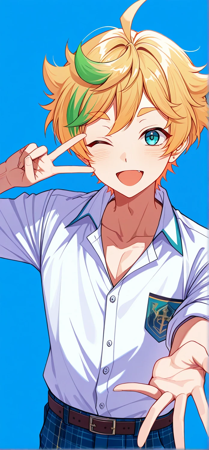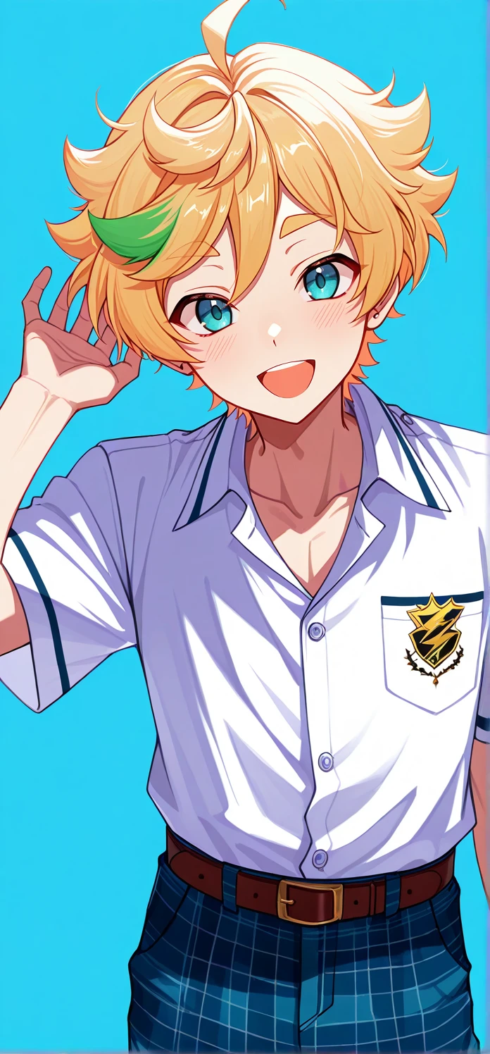 harukawa sora,blonde hair,short hair,blue eyes,multicolored hair,green hair,streaked hair,ahoge,aqua eyes