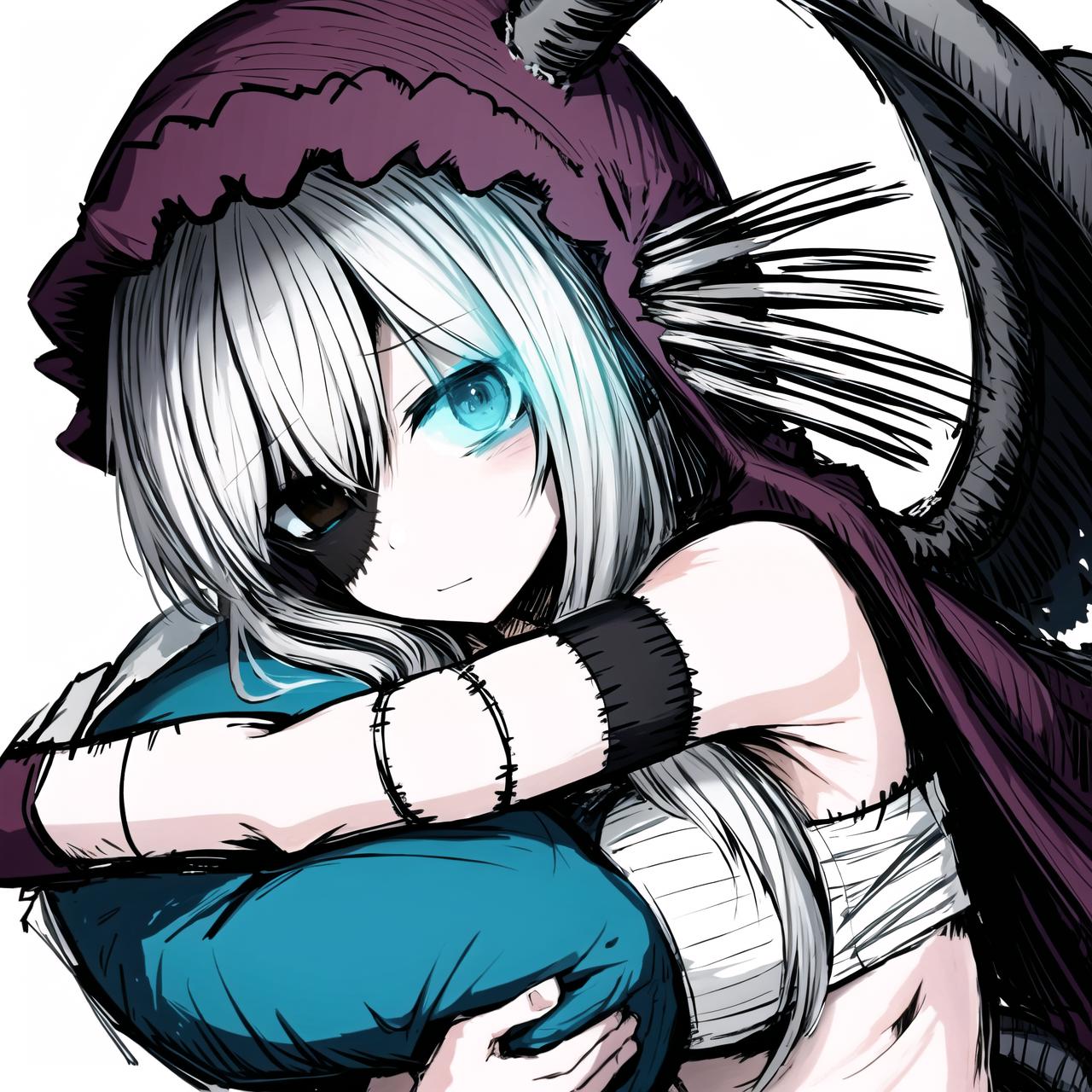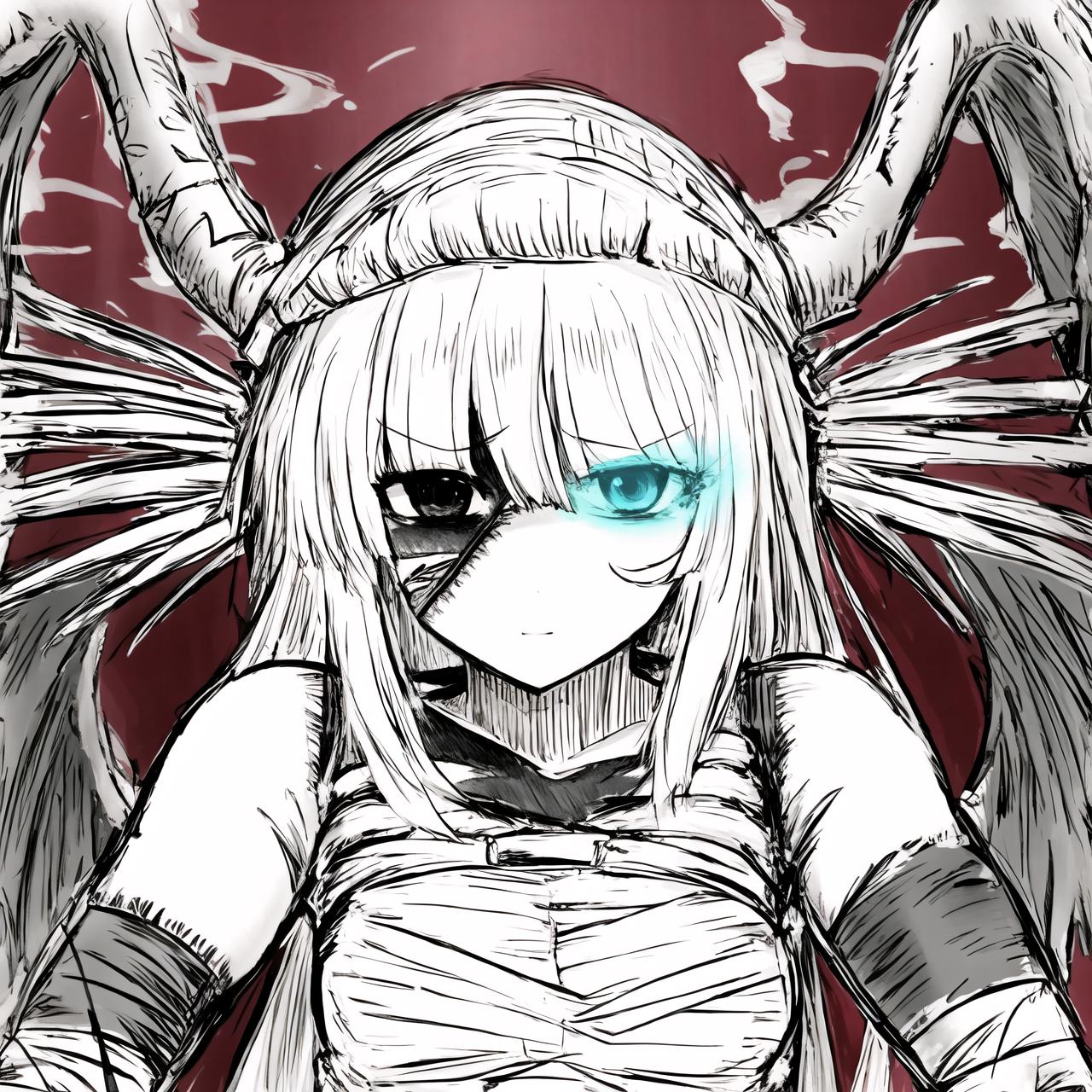 Triggers: game cg, official art, official artstyle, jabberwock, black souls, bandages.