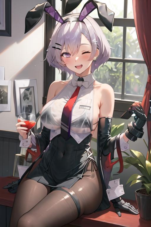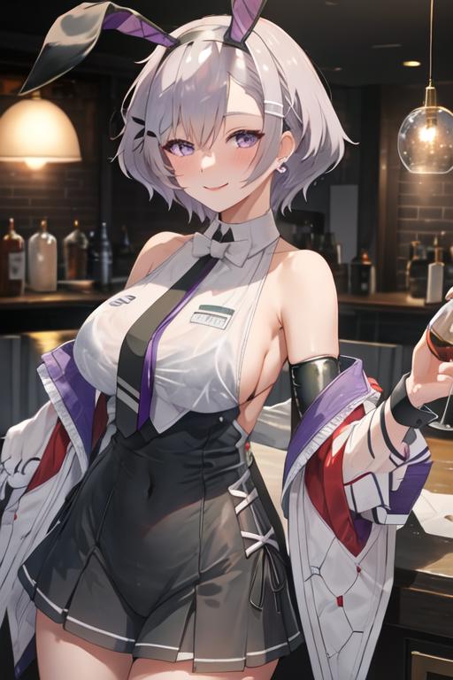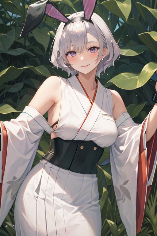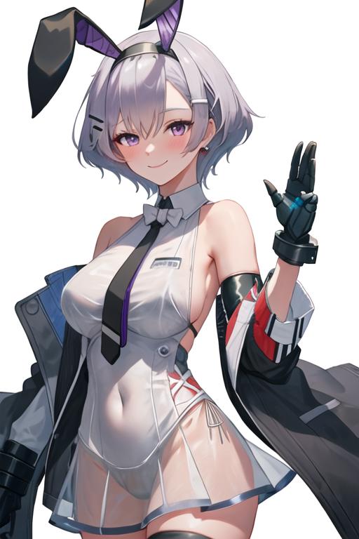 The trigger word is reno_azurlane, and the recommended tags are best quality, masterpiece, highres, solo, {reno_azurlane:1.15}, purple_eyes, breasts, grey_hair, large_breasts, bangs, blush, short_hair, hairband, smile, hair_between_eyes, black_hairband, sleeveless, see-through, parted_hair, animal_ears, fake_animal_ears, rabbit_ears.