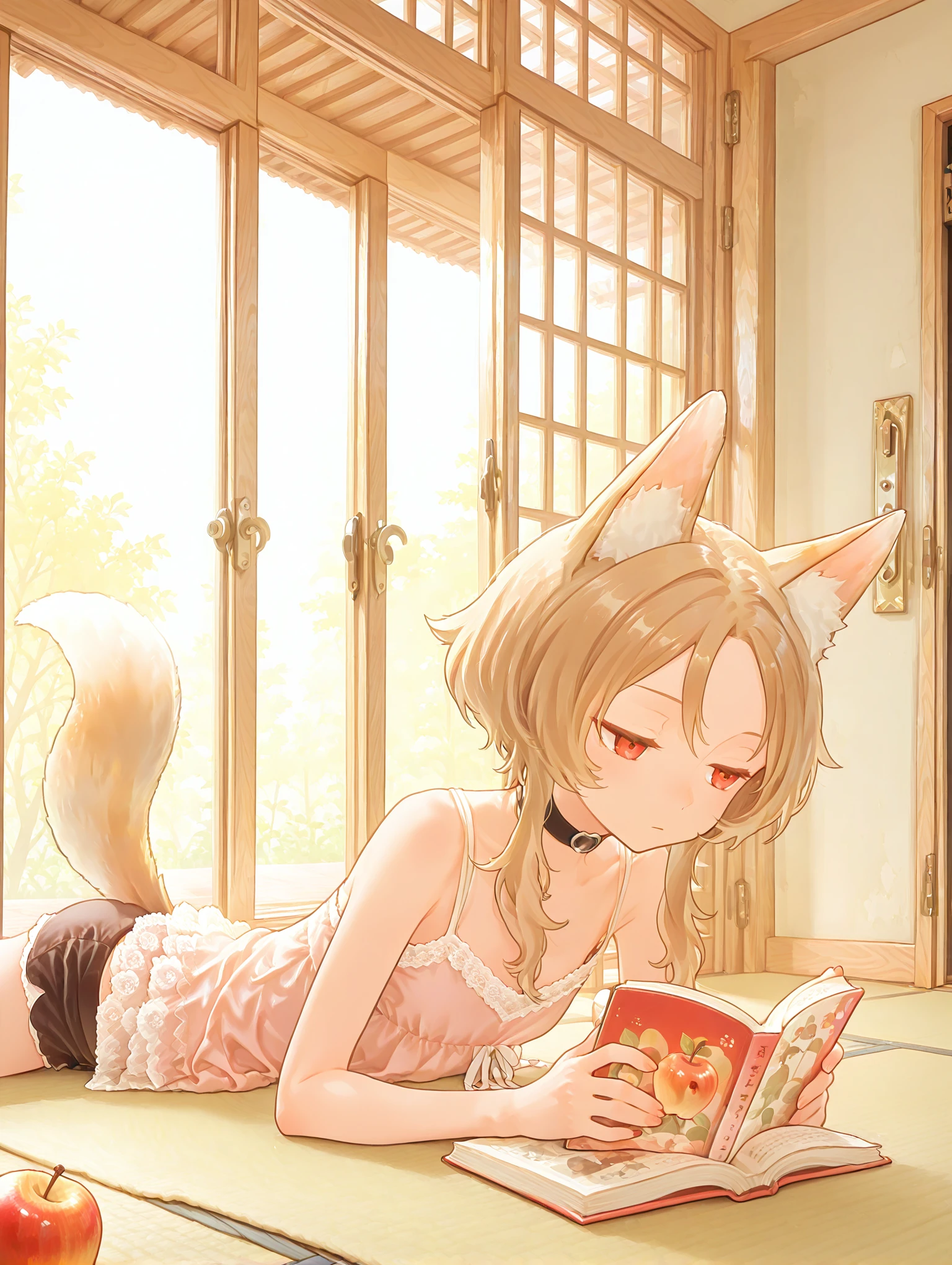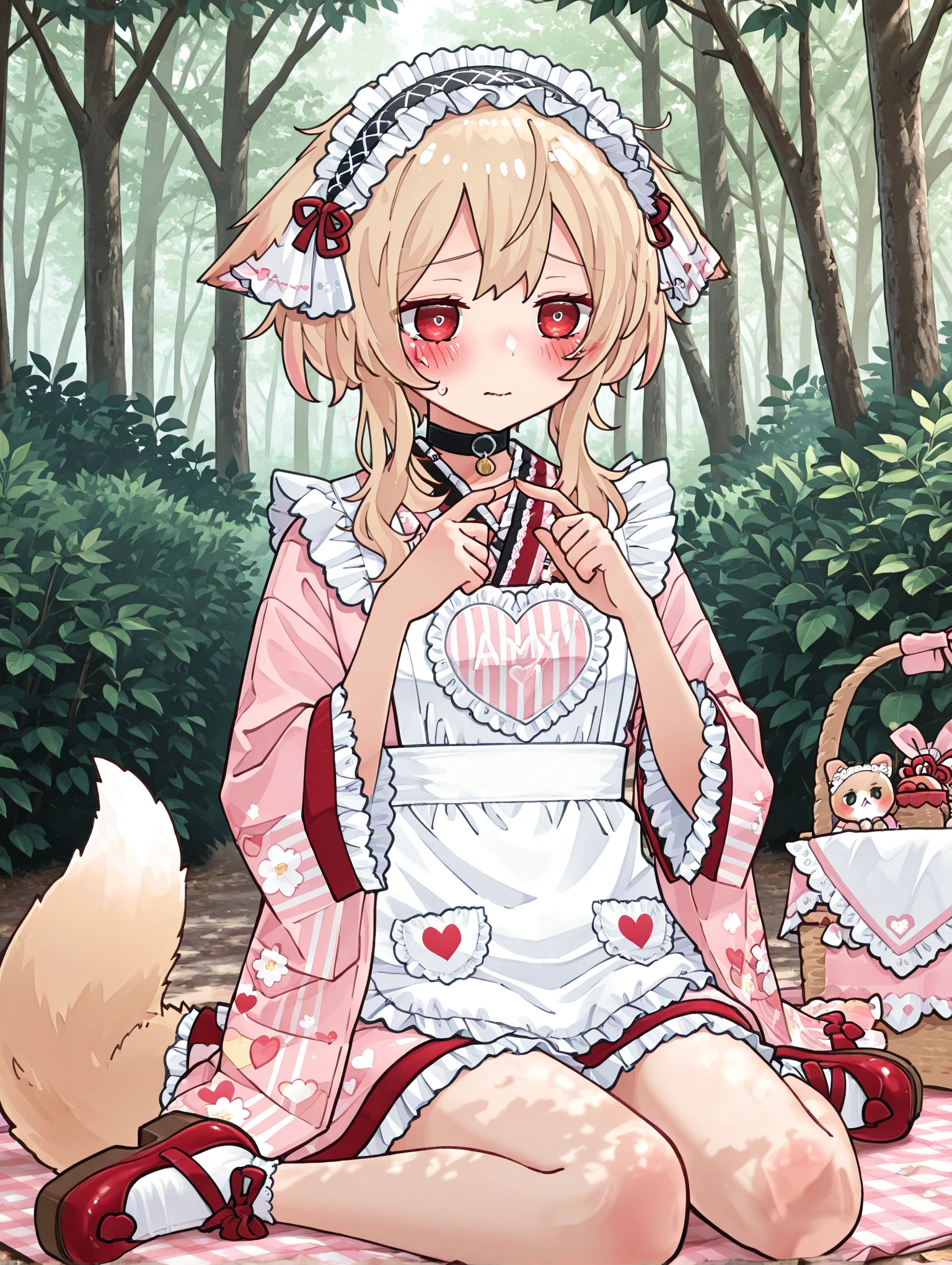 O0ka_Miko, 1girl, short hair with long locks, tail, ears downOutfit