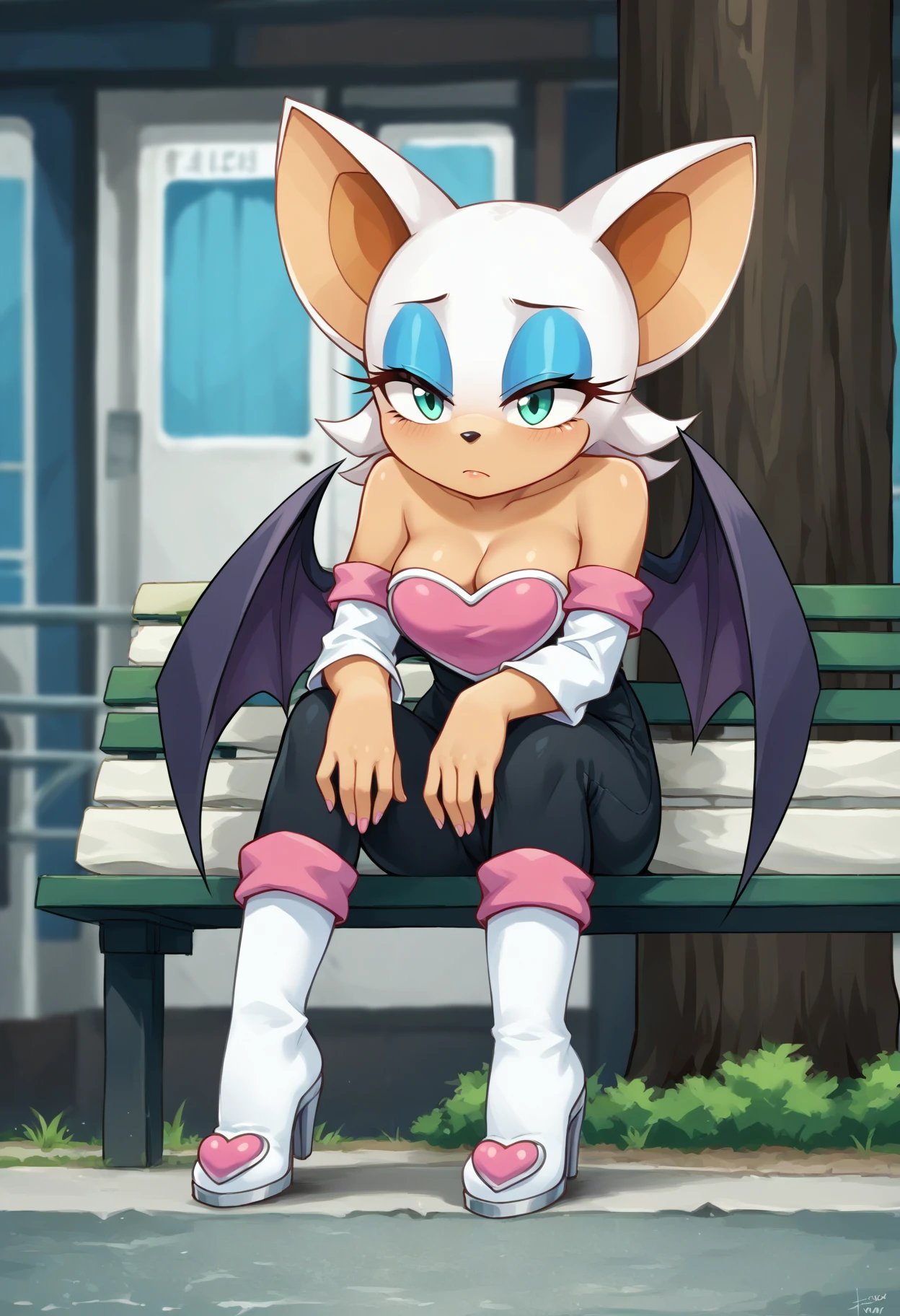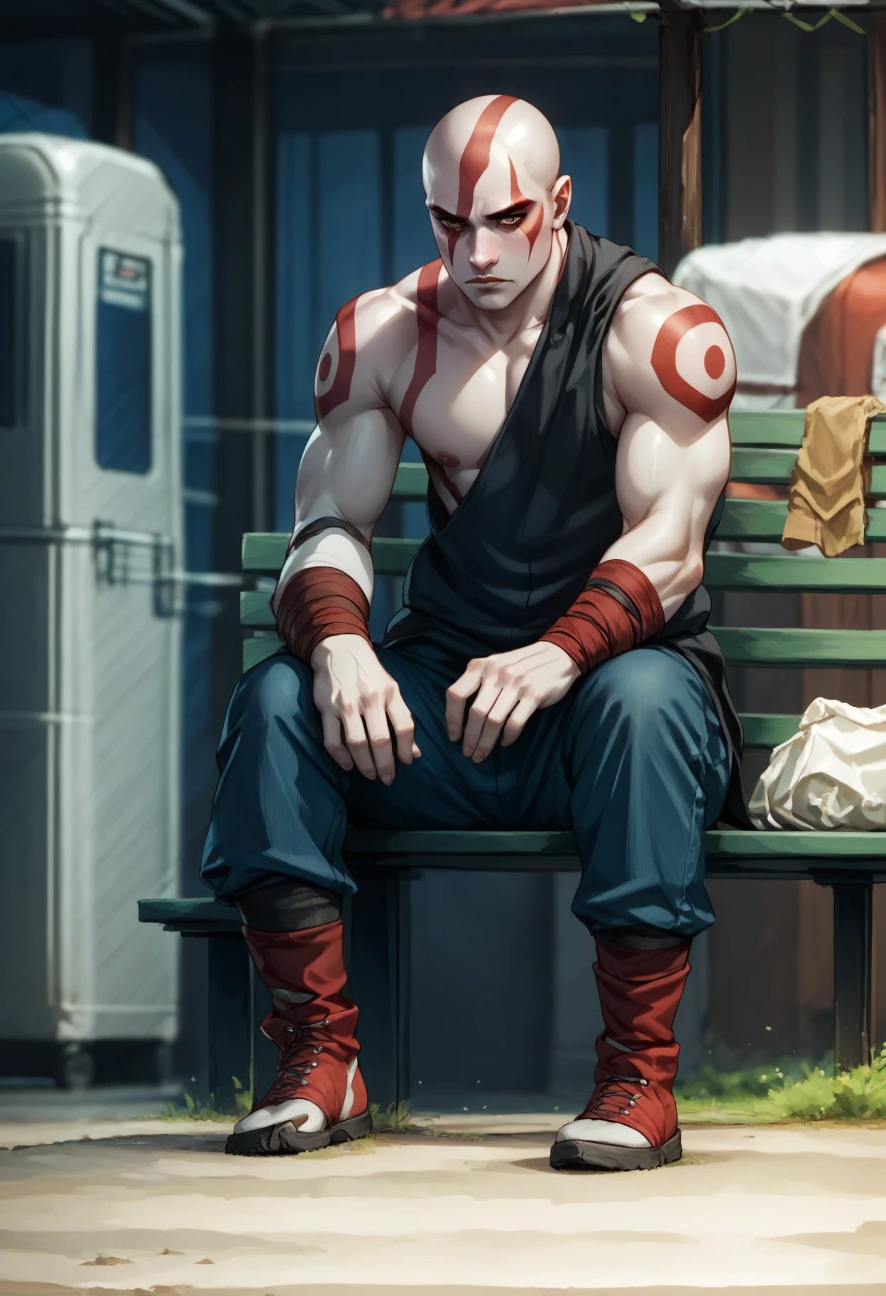 sad_keanu, sitting on bench, leaning forward