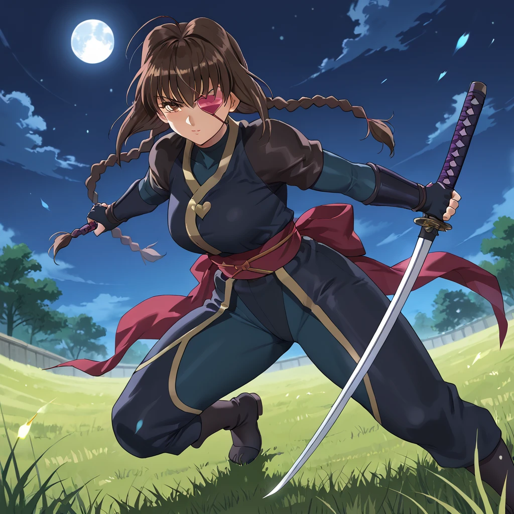 Jiyuu's transformed state as Yagyu Jubei the Second. Like with Jiyuu, Finding material was hard. The model can be a little rigid. Comes with a katana of course, though like any held object, it's touch and go with the results. Model struggles some with her eyepatch too...