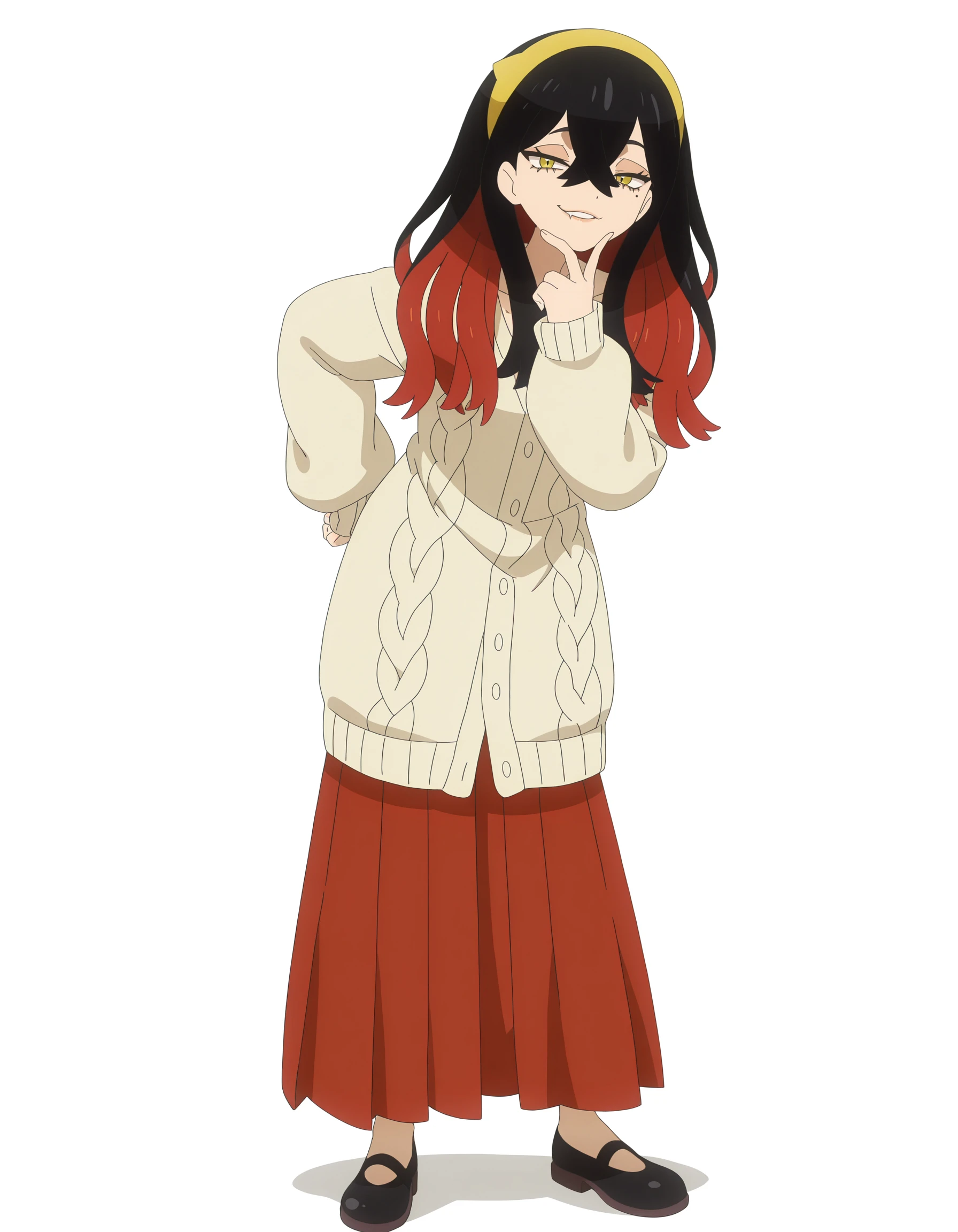 c2rm1n3, 1girl, mole under eye, yellow hairband, two_tone hair