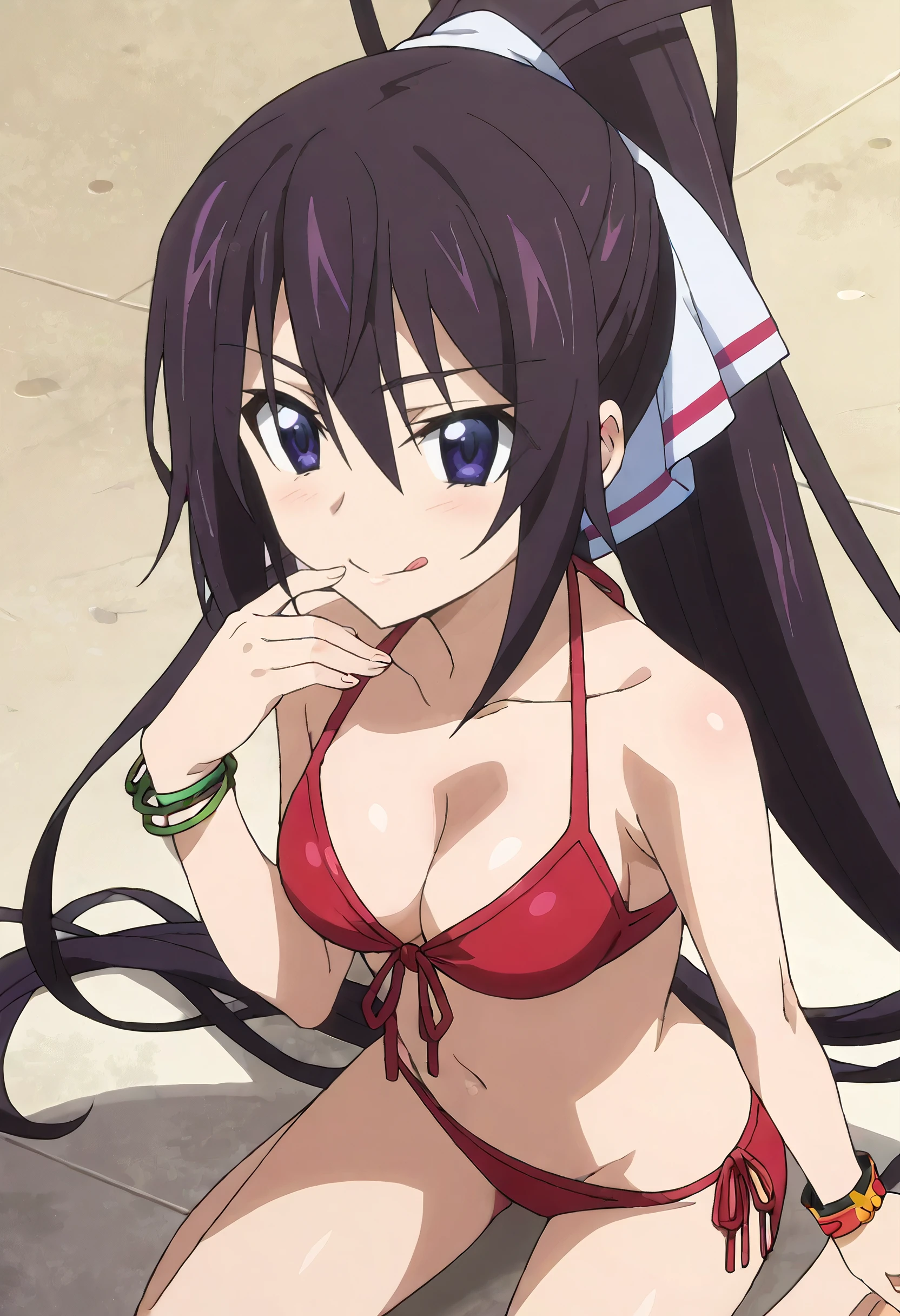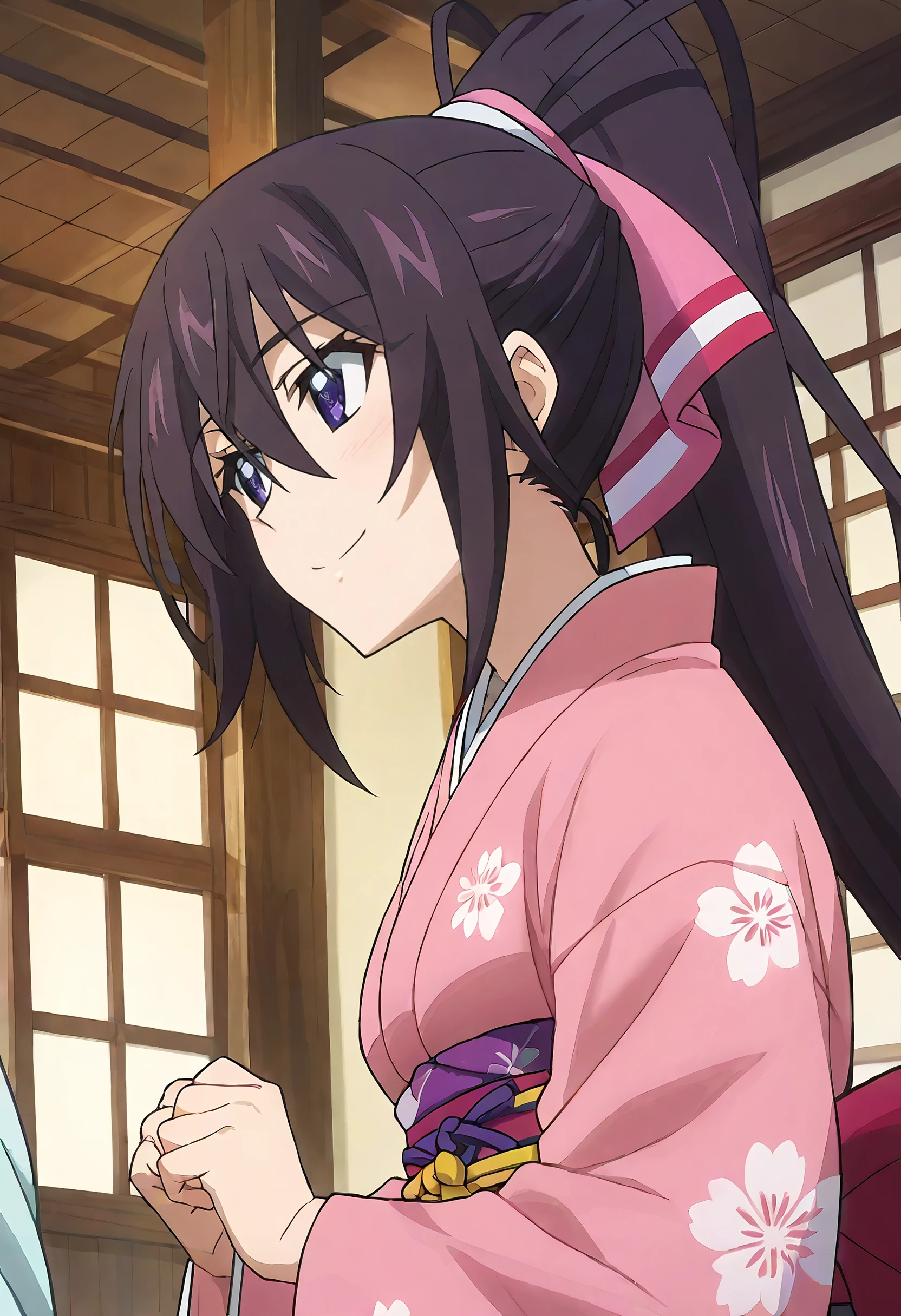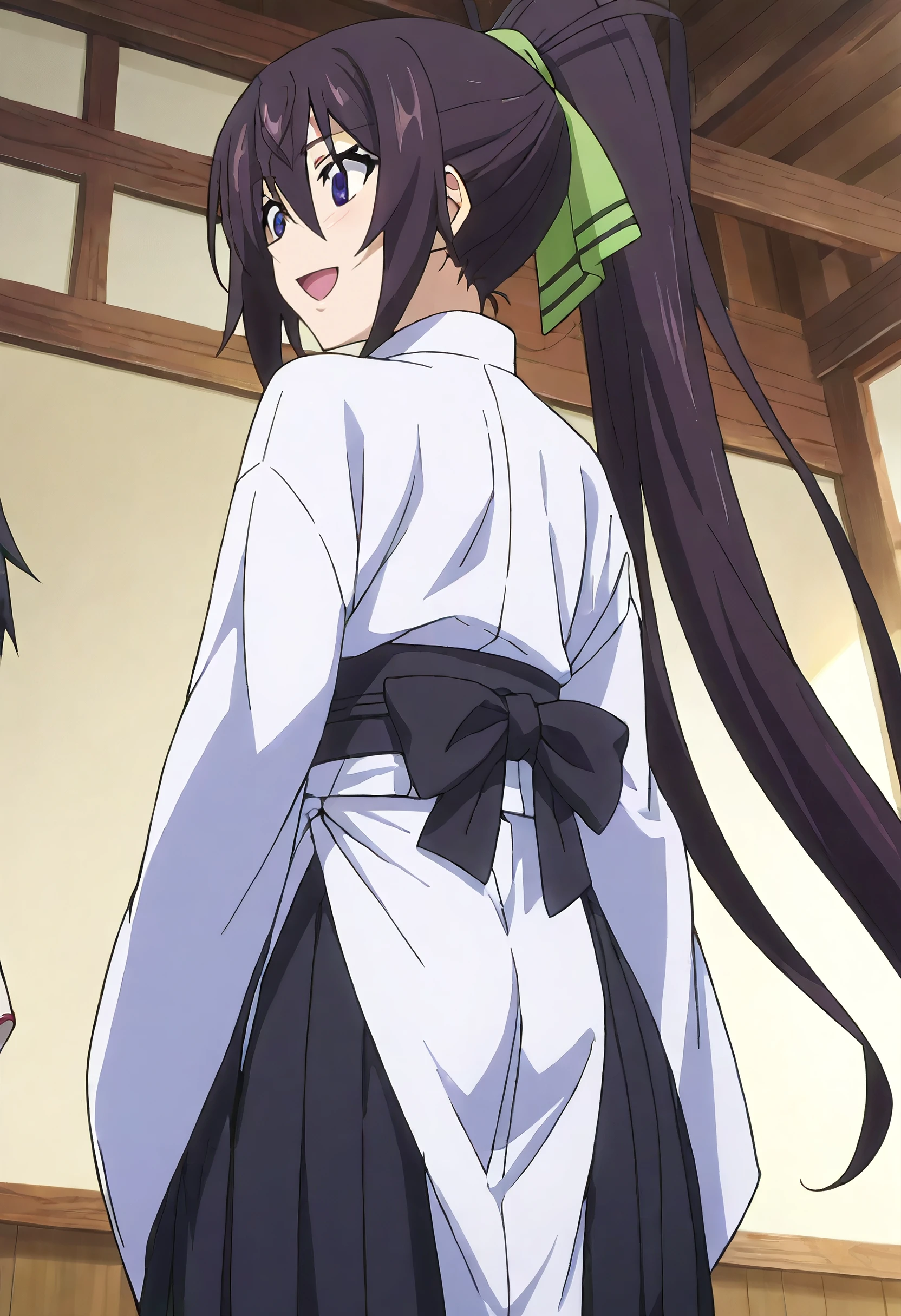 IStHouki, long hair, black hair, purple eyes, ponytail, split ponytail, very long hair, high ponytail, hair between eyes,