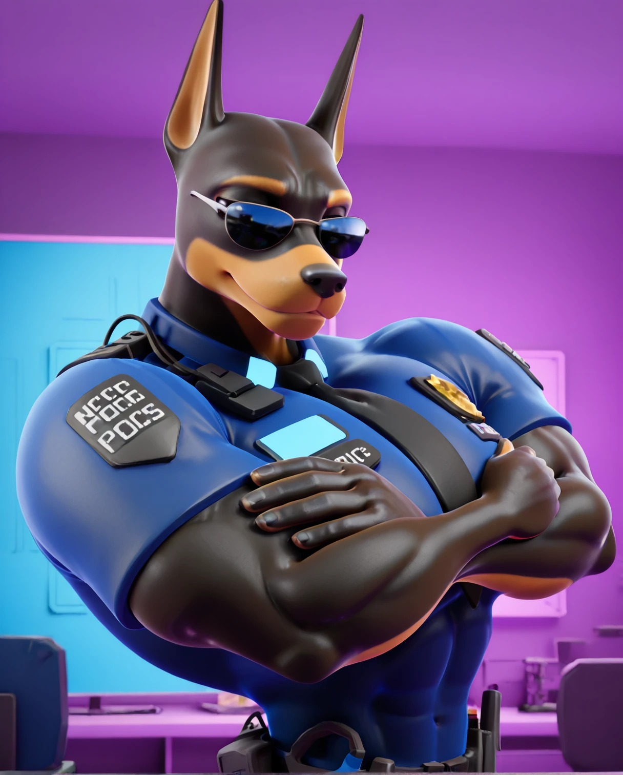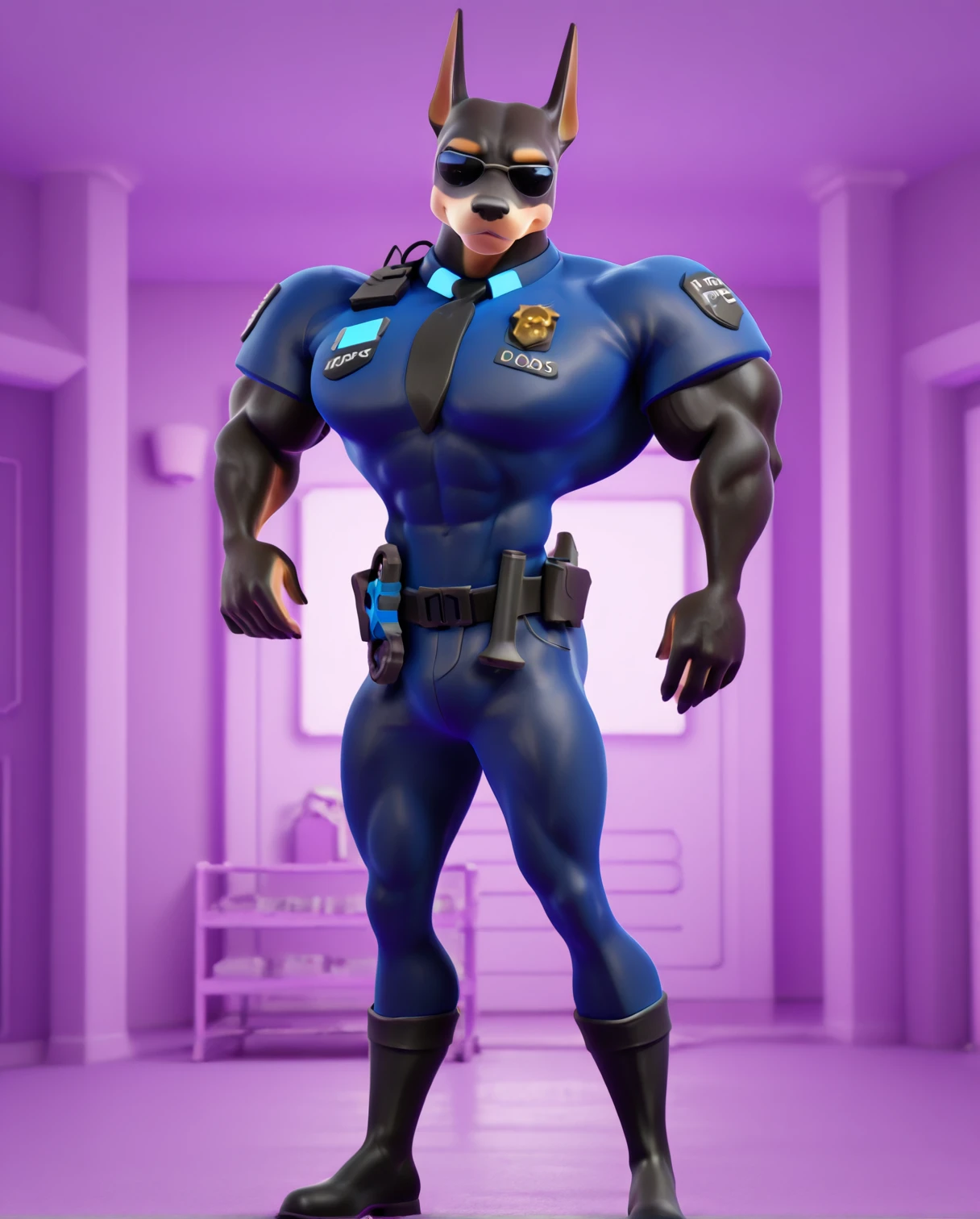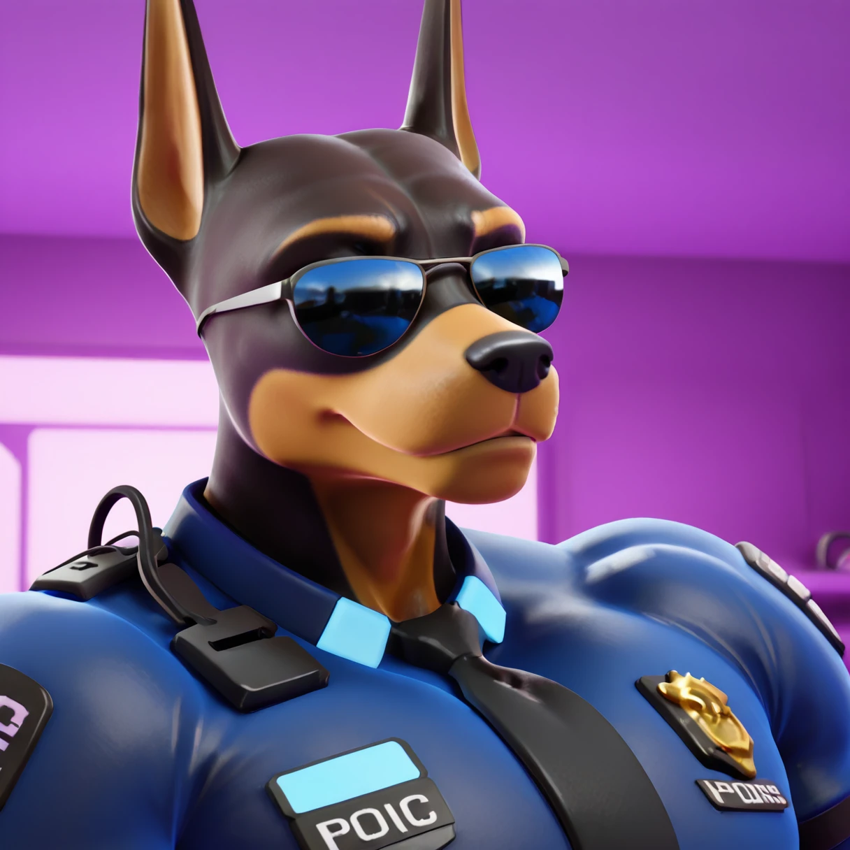 furry, anthro, dobermann, male, two tone fur, black fur, brown fur, bald