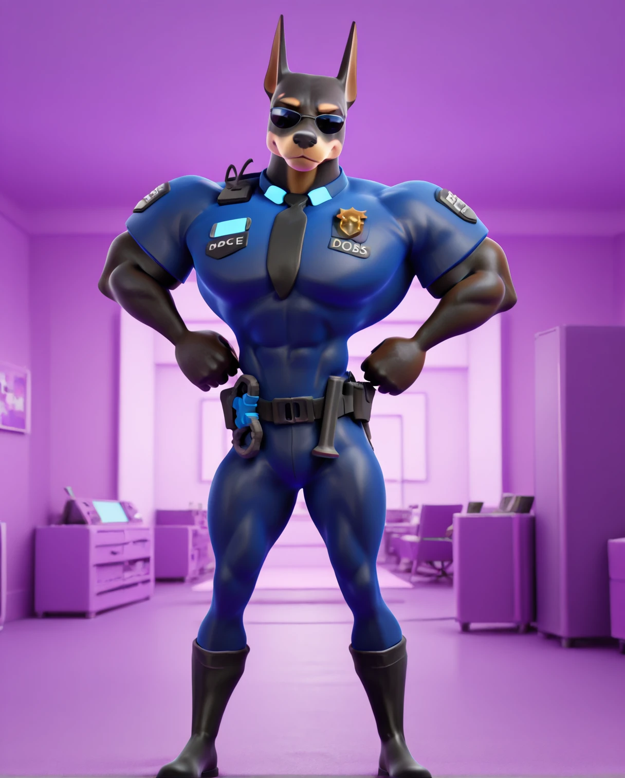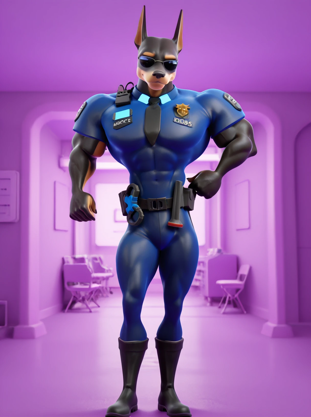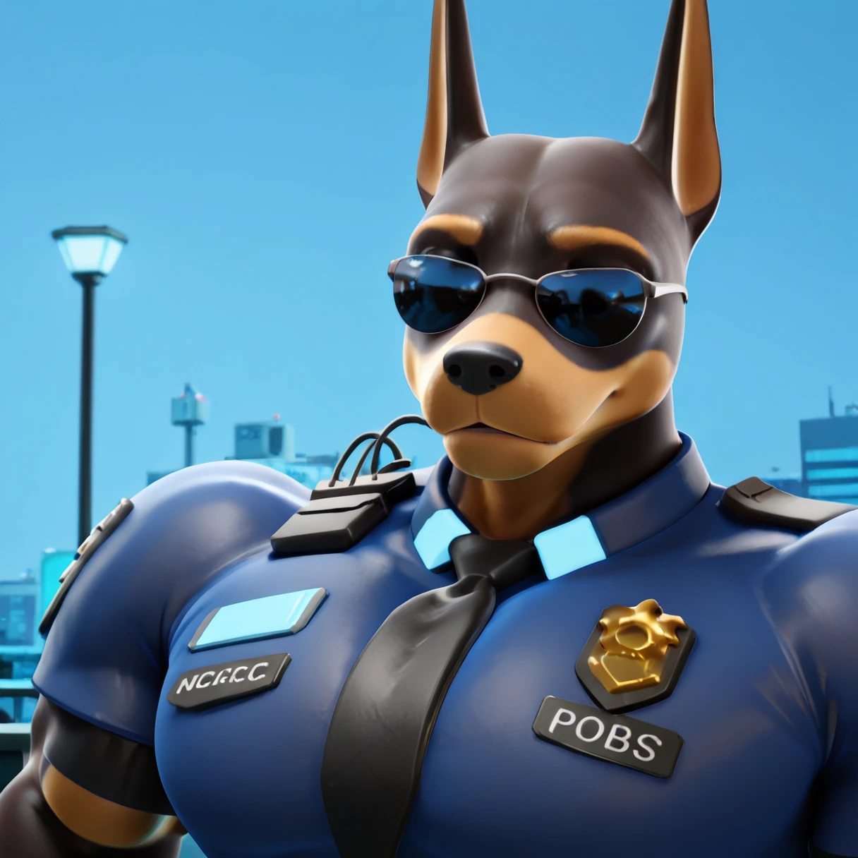 furry, anthro, dobermann, male, two tone fur, black fur, brown fur, bald