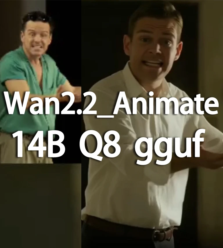 This is GGUF version of Wan2.2-Animate model, the sample of workflow is same as the fp8 version, u just need to change "Wan2_2-Animate-14B_fp8_e5m2_scaled_KJ.safetensors" model to this GGUF version (use gguf loader)