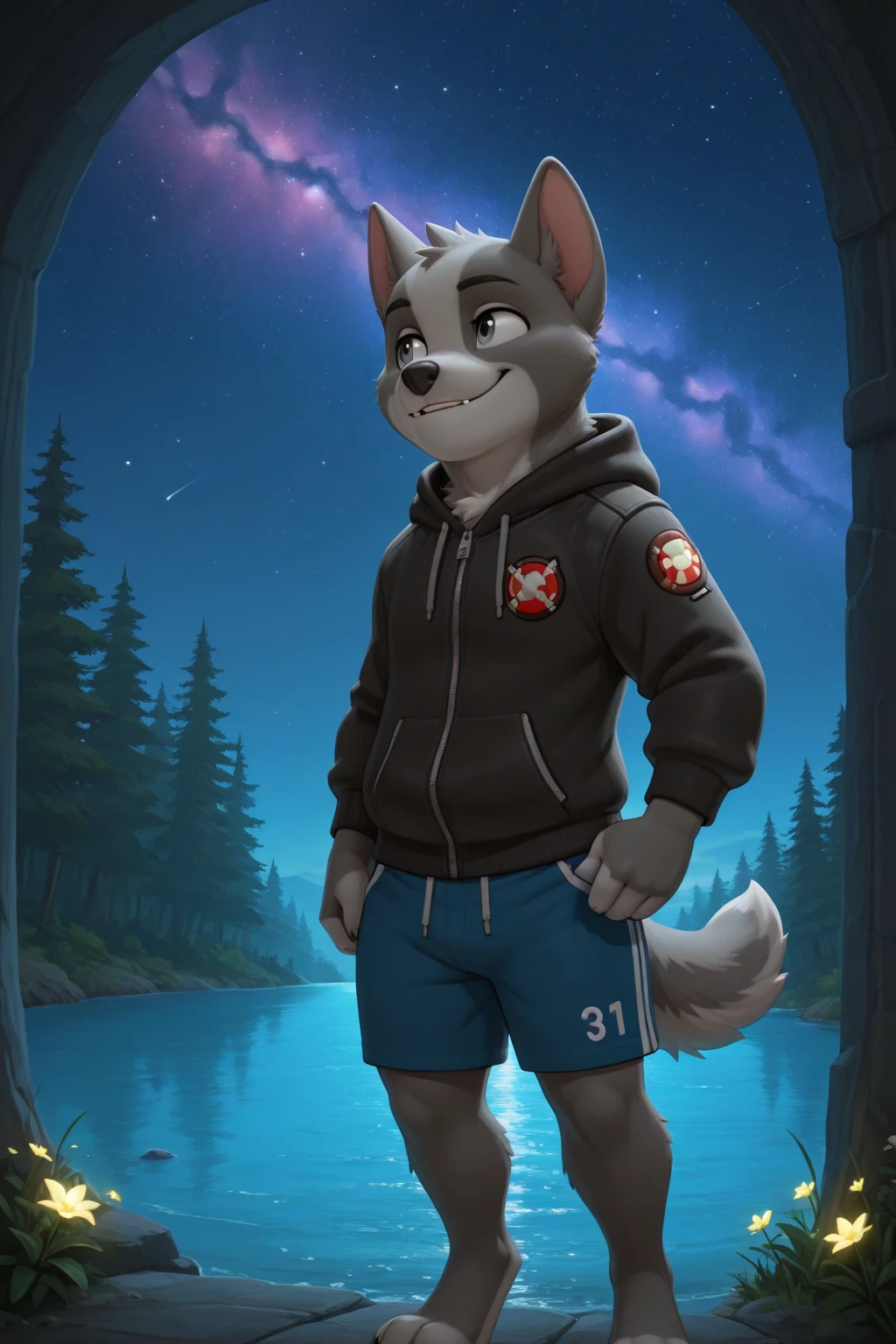 Mensajes de refuerzo: "domestic dog, male, grey eyes, grey fur, light gray body"