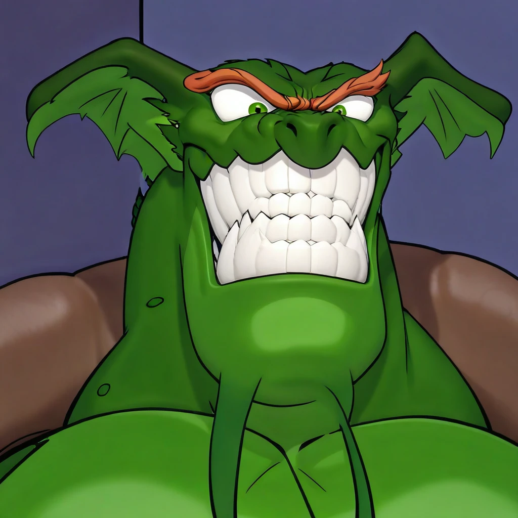 , Zirconis, dragon boy, fairy tail, anime emerald scale skin, yellow eyebrows, winged ears, green eyes, smile , teeth, wings