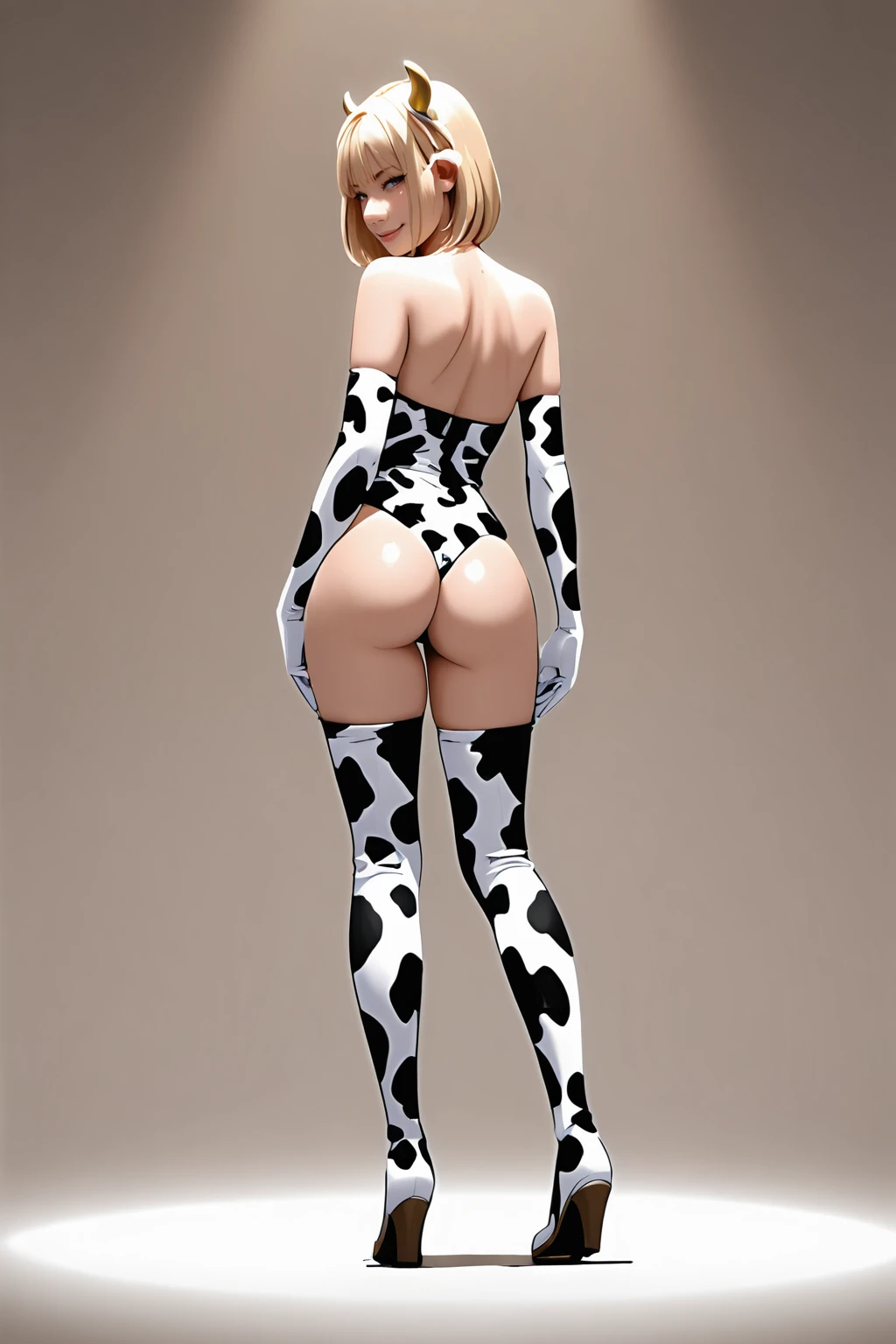 CowNicole, Cow Print Cowgirl,Cow Print Elbow Gloves,Cow Print Thighhigh Stockings,,Cow Horns,thigh boots,
