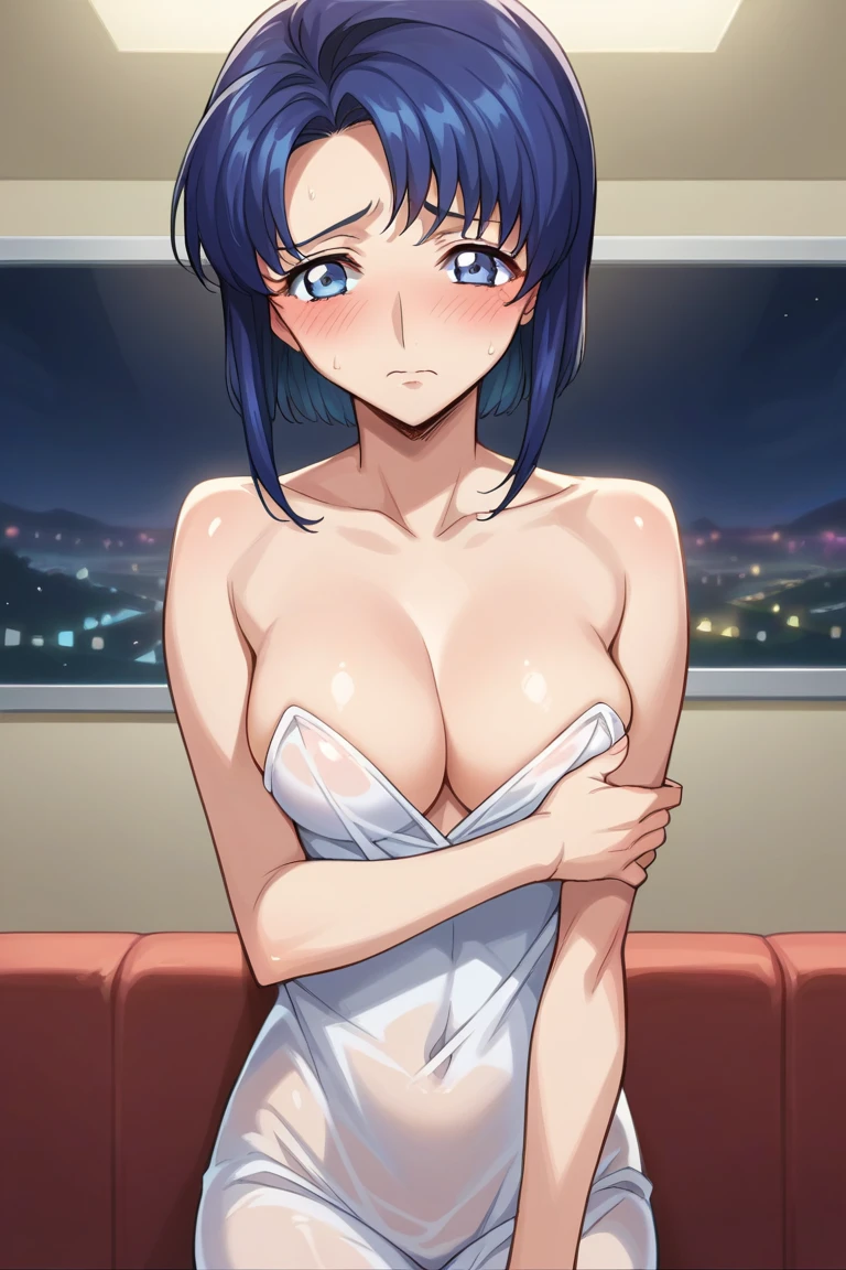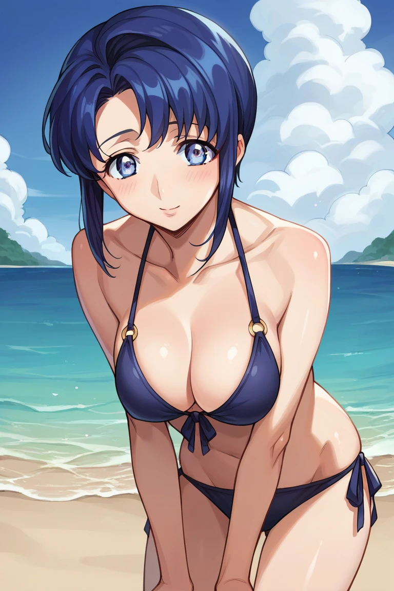 cecile croomy, blue hair, blue eyes, short hair, long sidelocks,