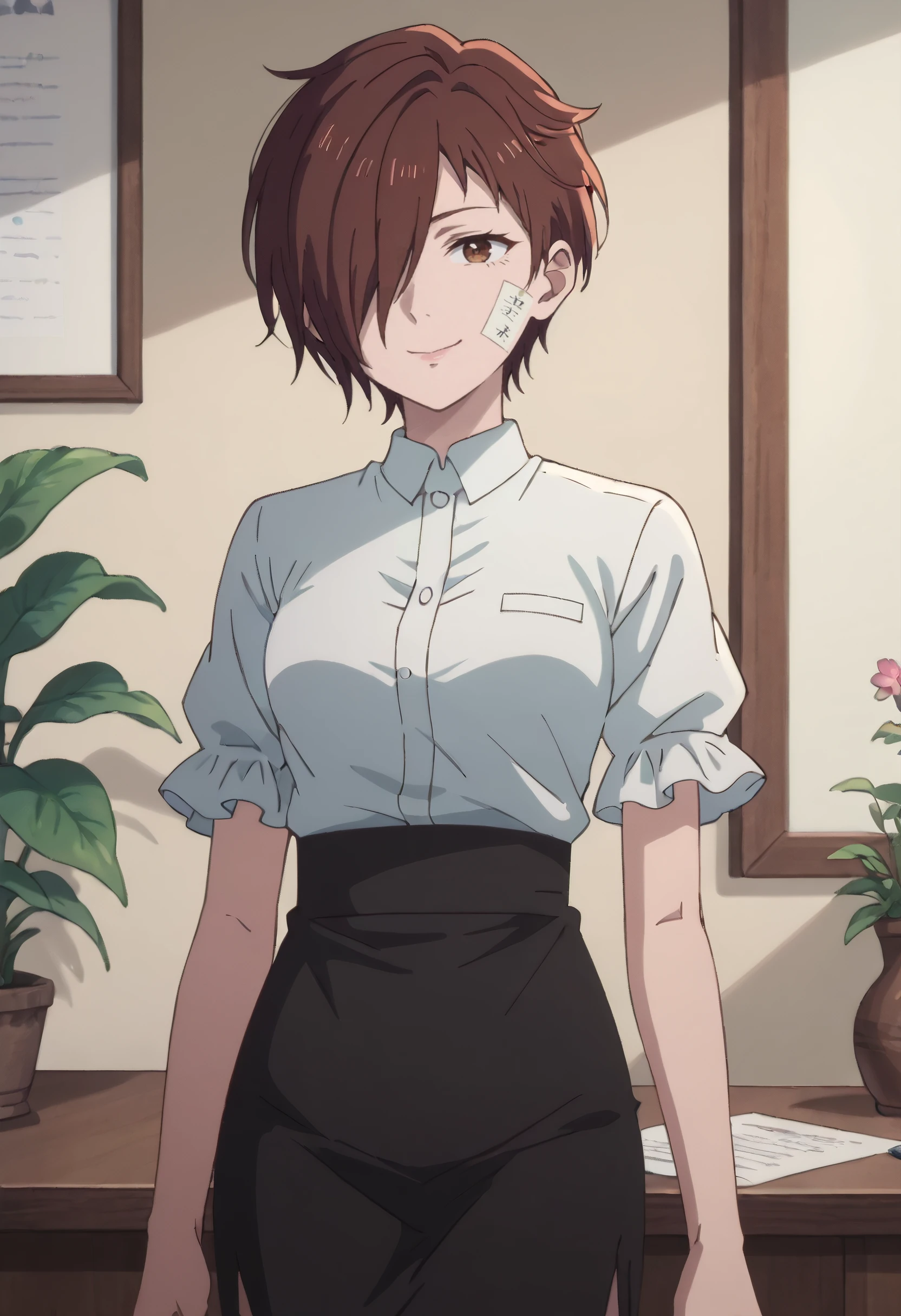BGFReia, short hair, brown eyes, hair over one eye, brown hair, bangs, hair over one eye,
