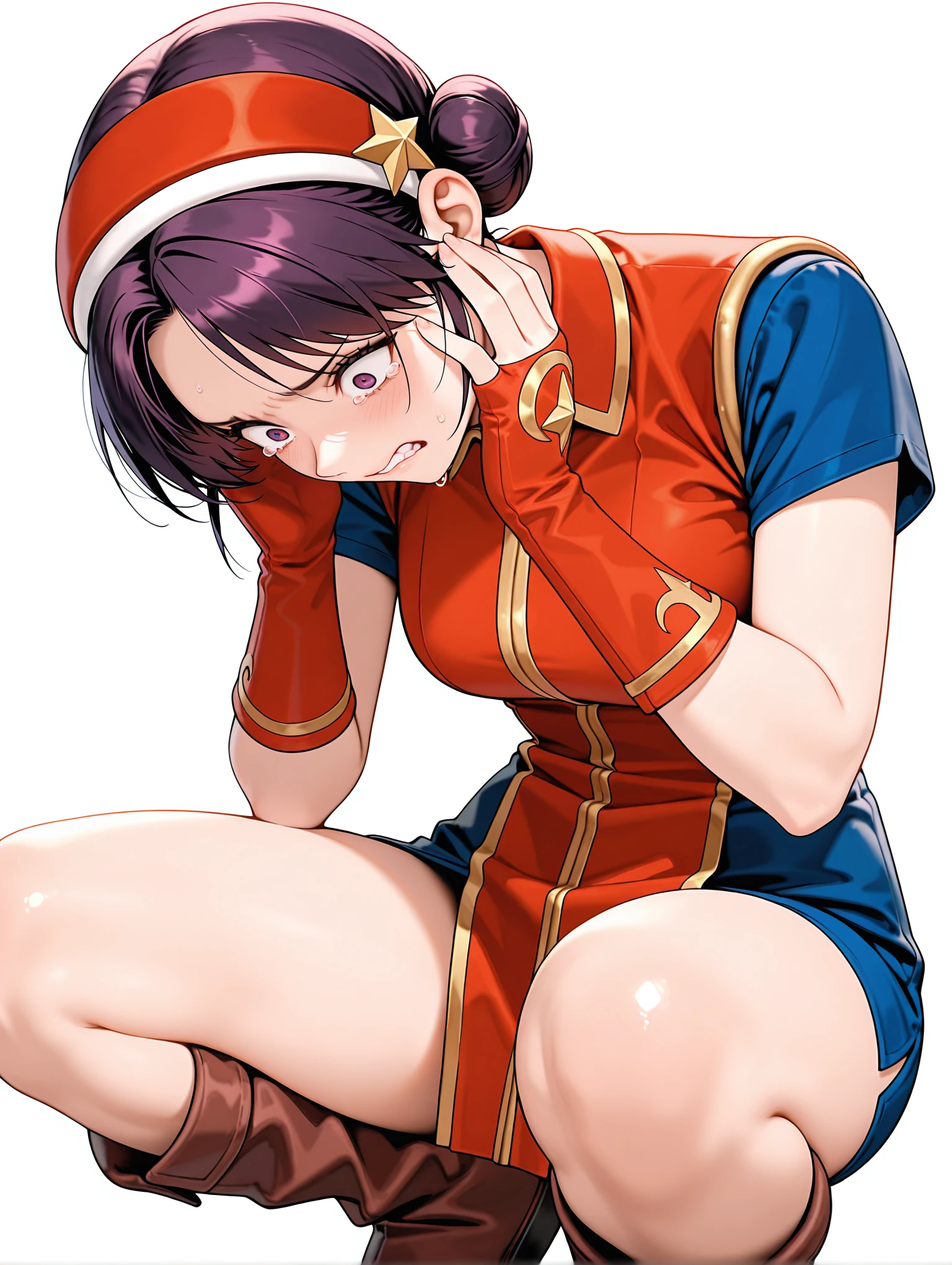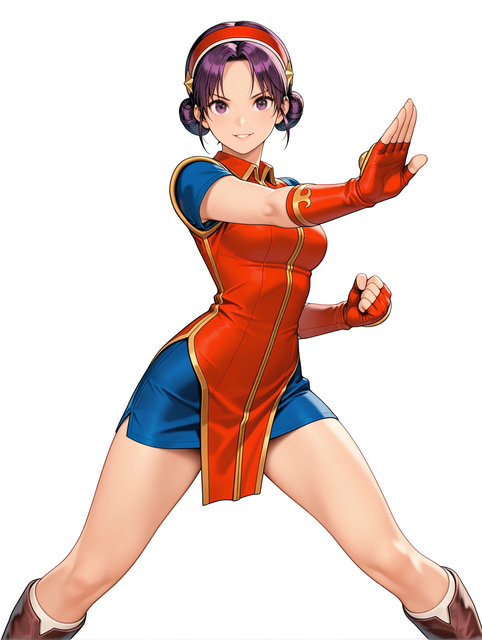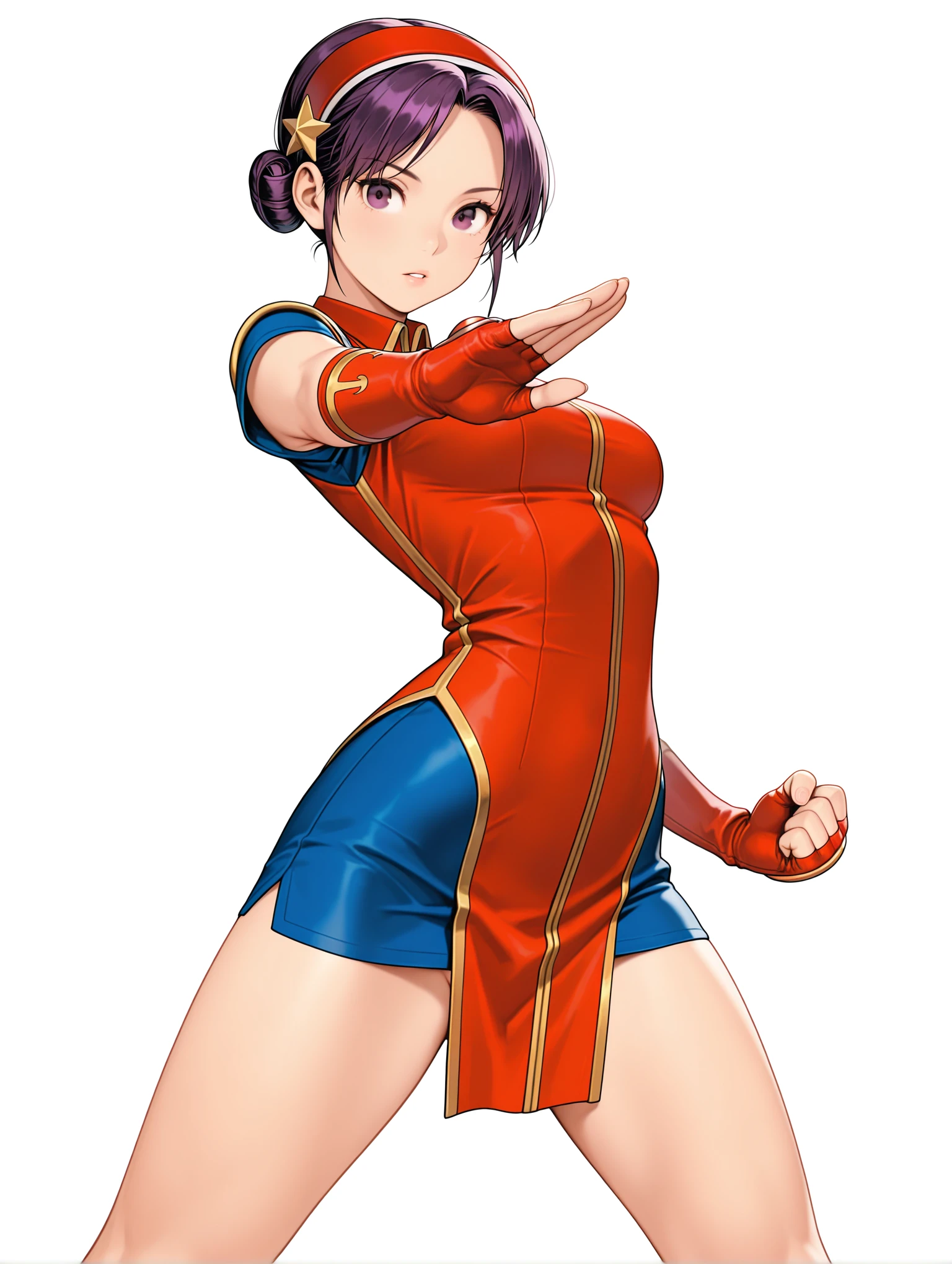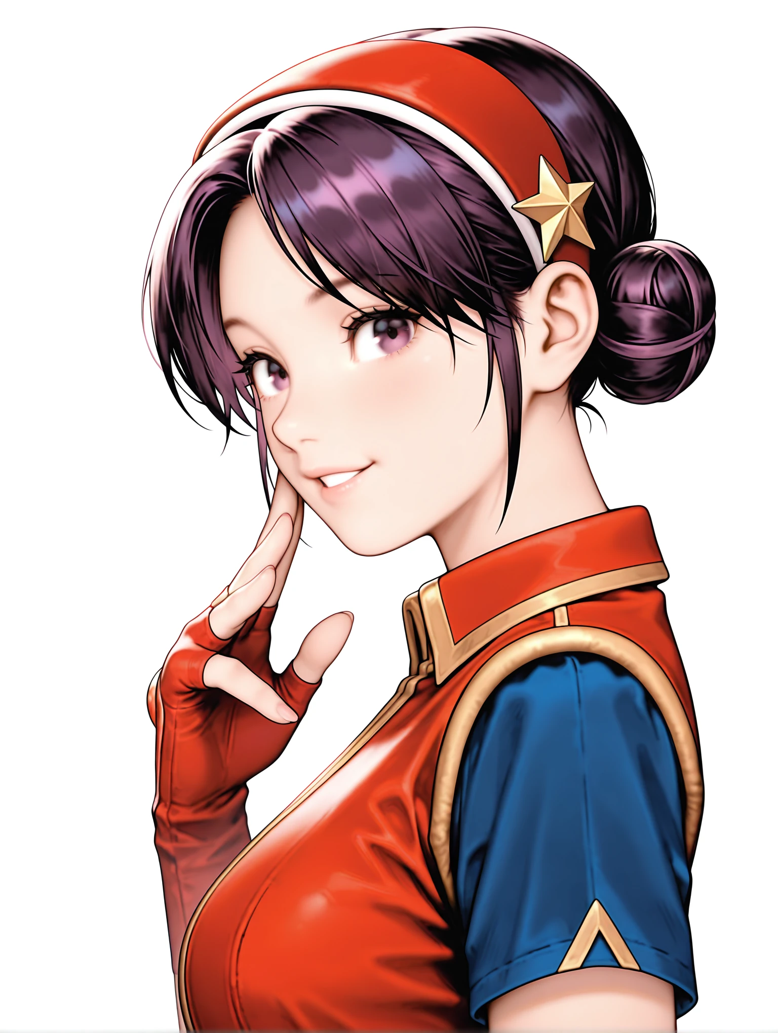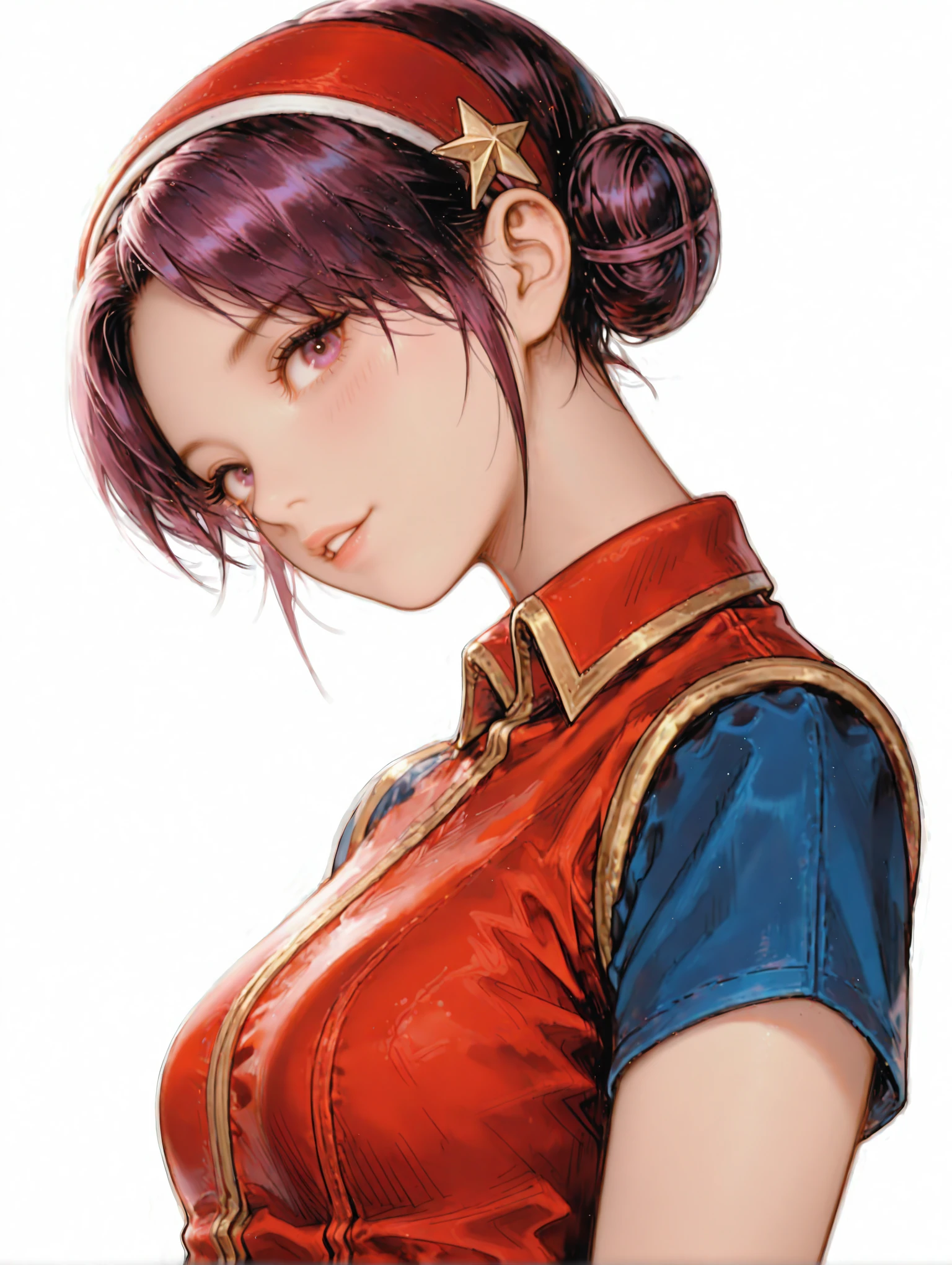 a_a,red hairband,star hair ornament,purple hair,short hair,double hair bun,purple eyes,