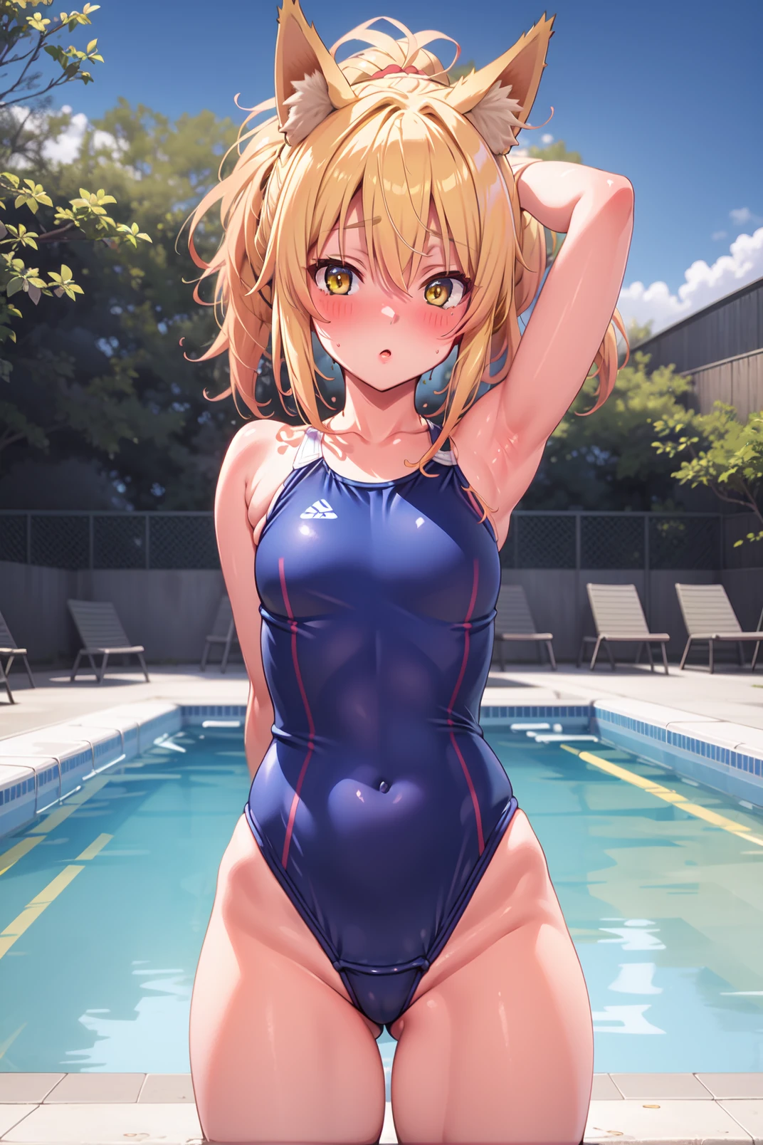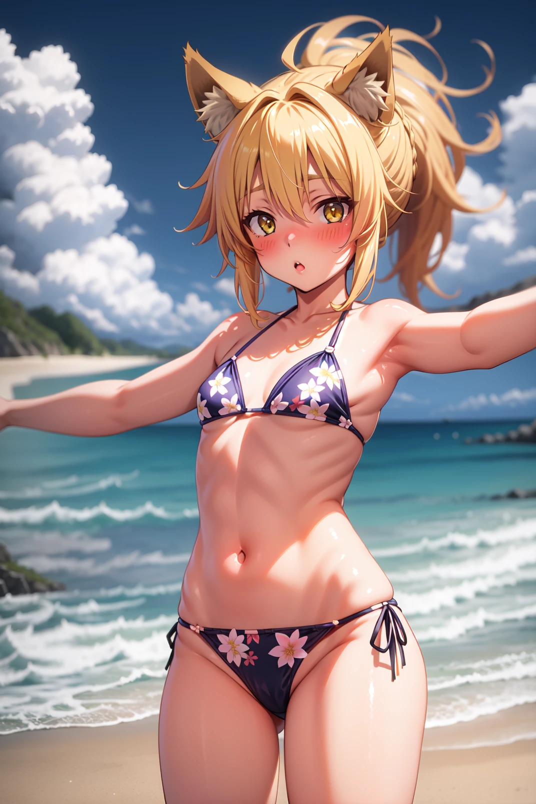 kunou, yellow eyes, blonde hair, long hair, ponytail, fox ears, fox tail, multiple tails,