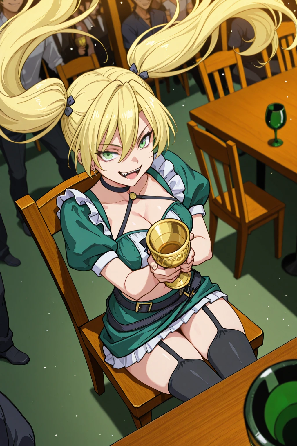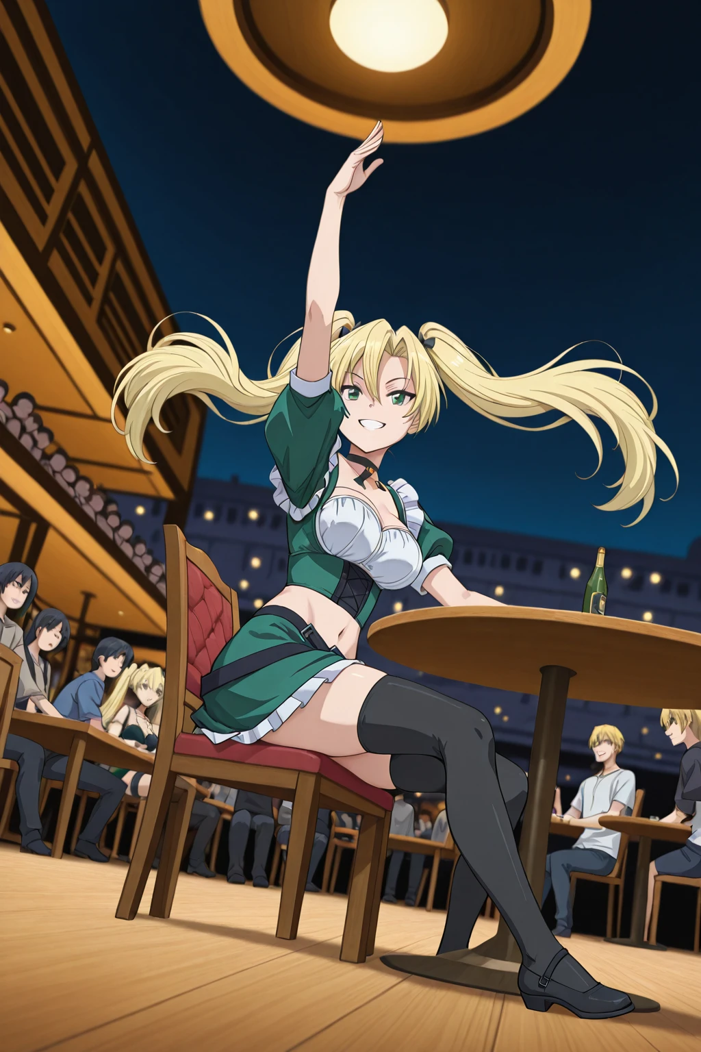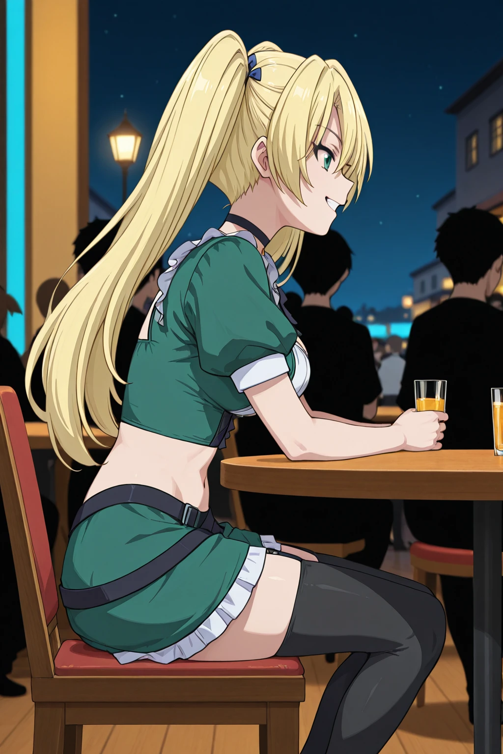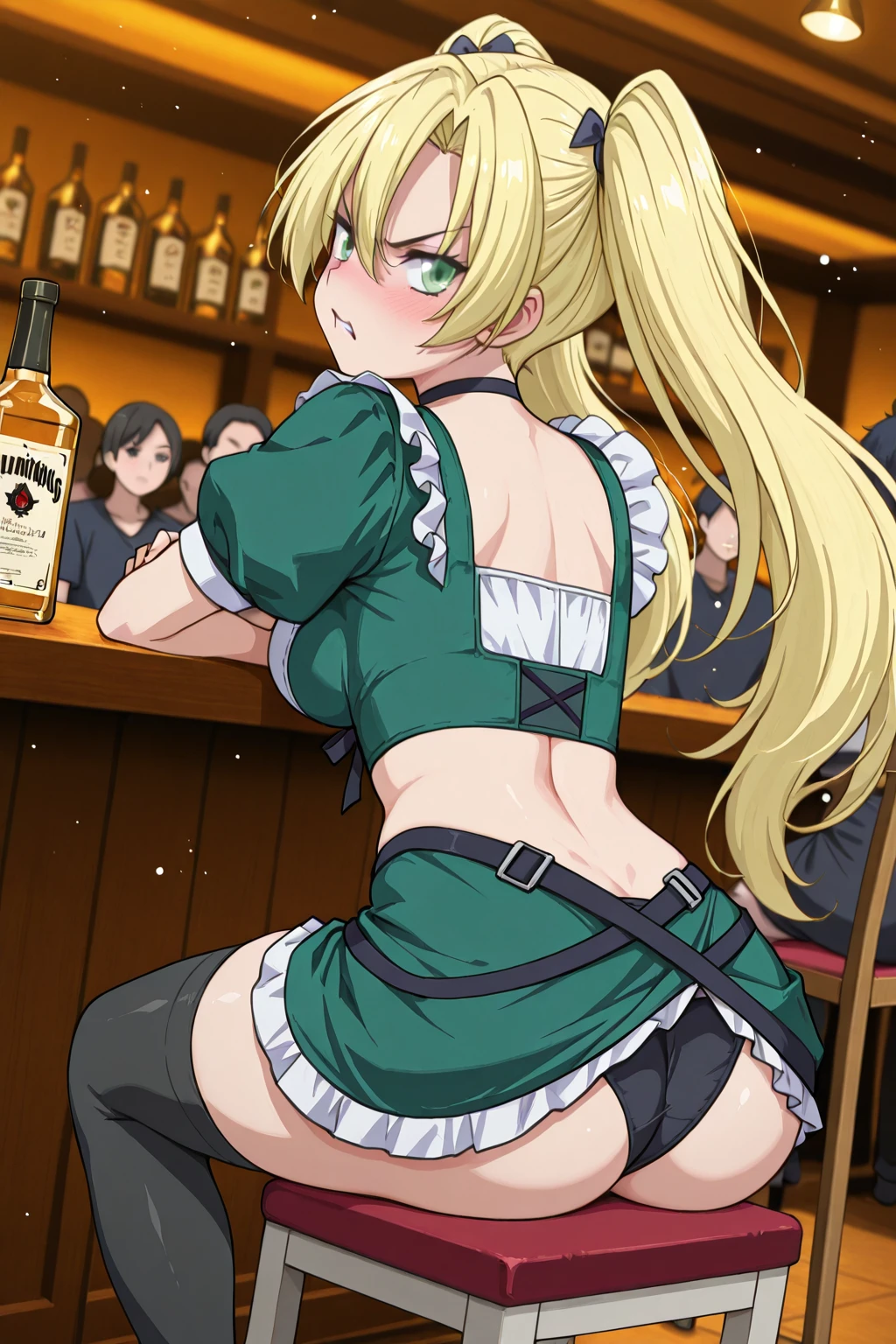 from_side, erika,green_skirt, thighhighs, twintails, blonde_hair,