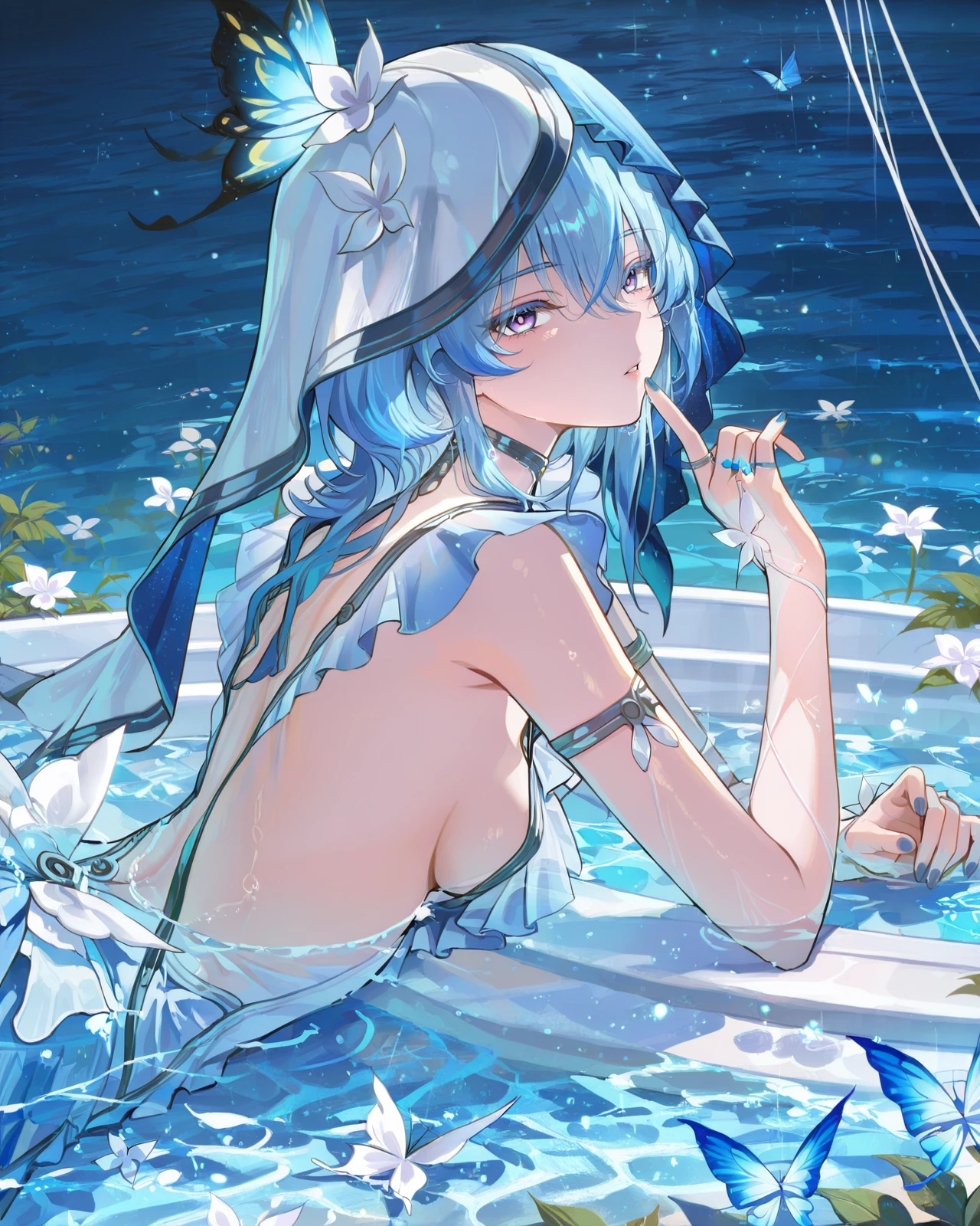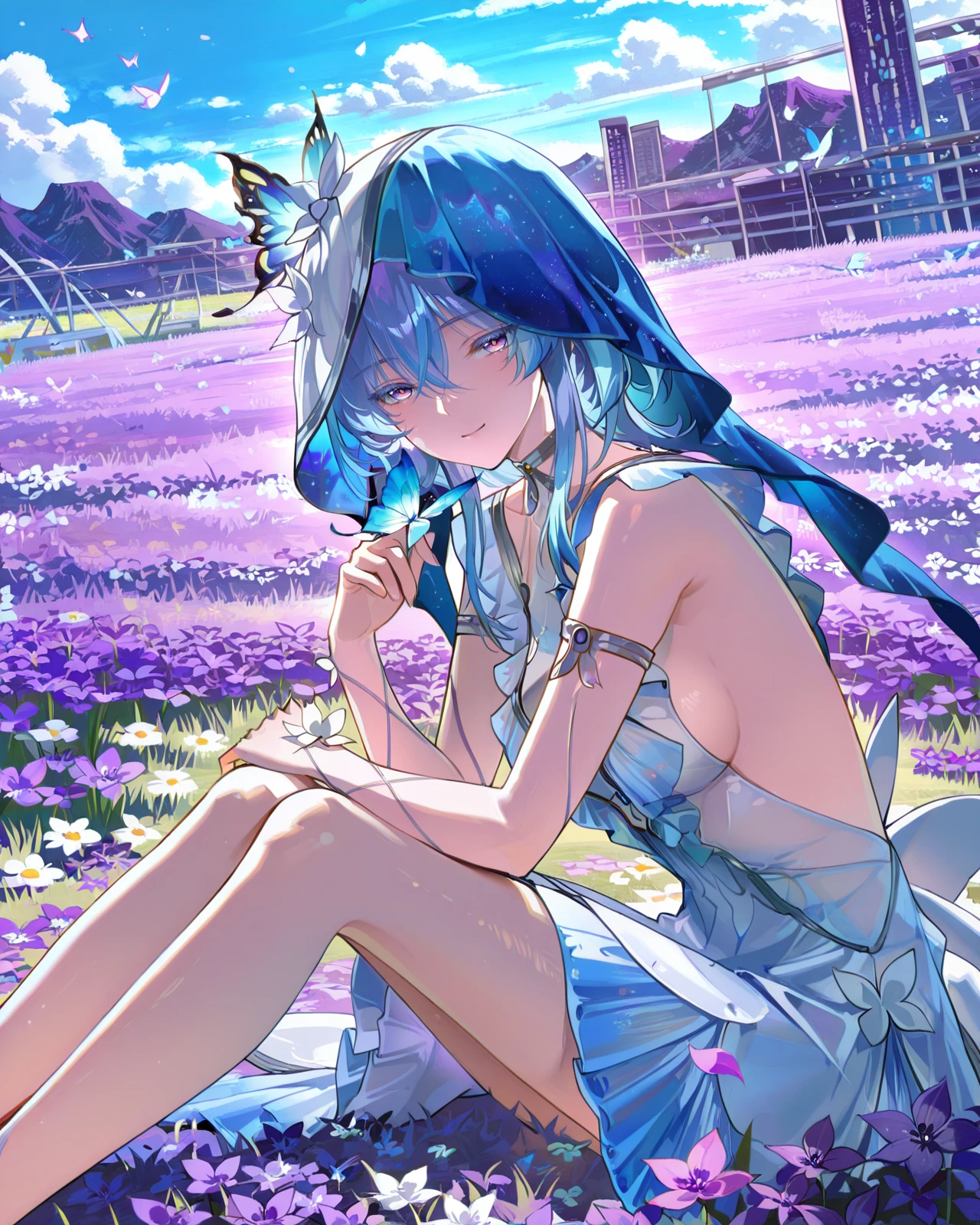 Shorekeeper, 1girl, solo, long hair, ??????????????, multicolored hair, light blue hair, violet eyes