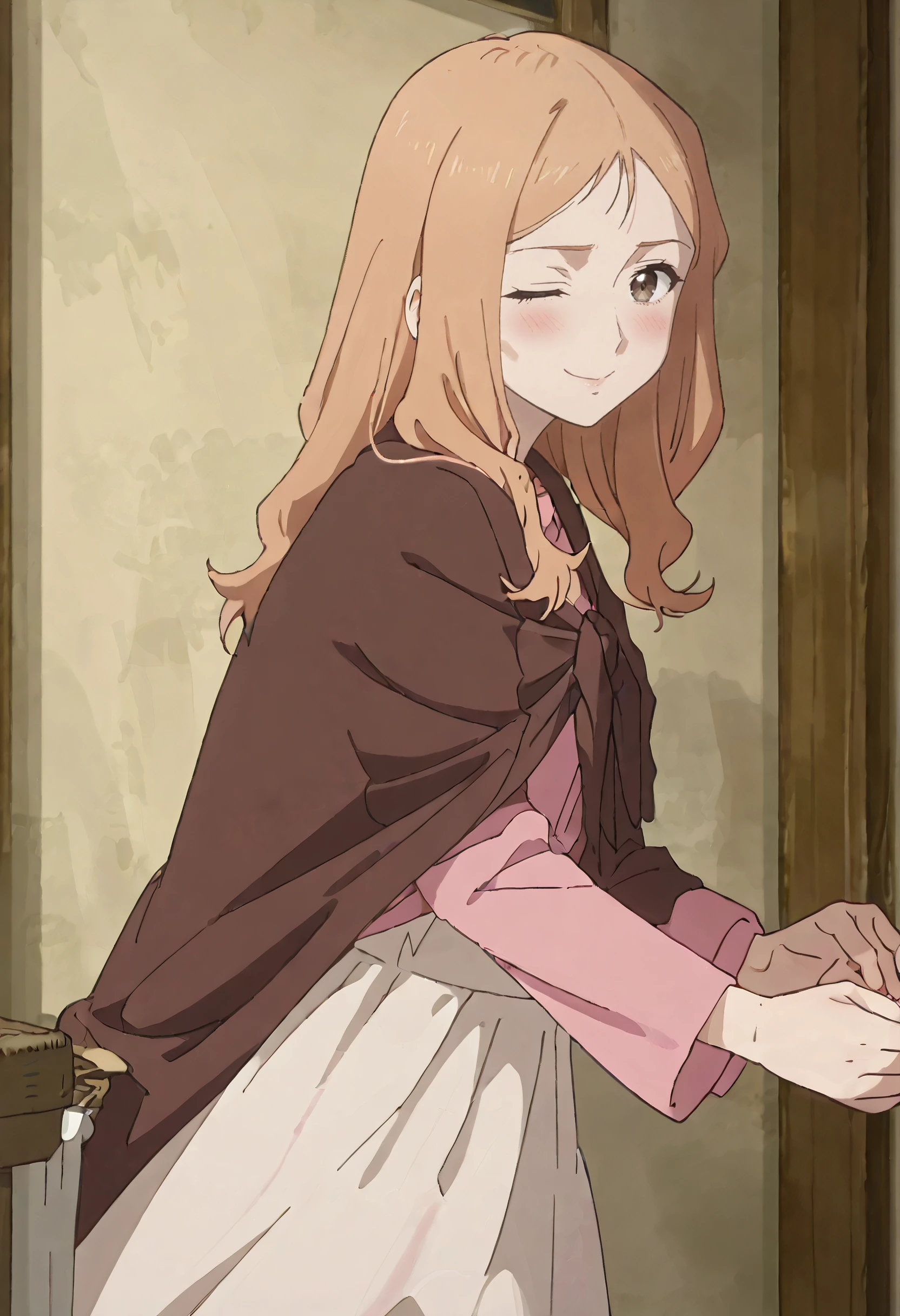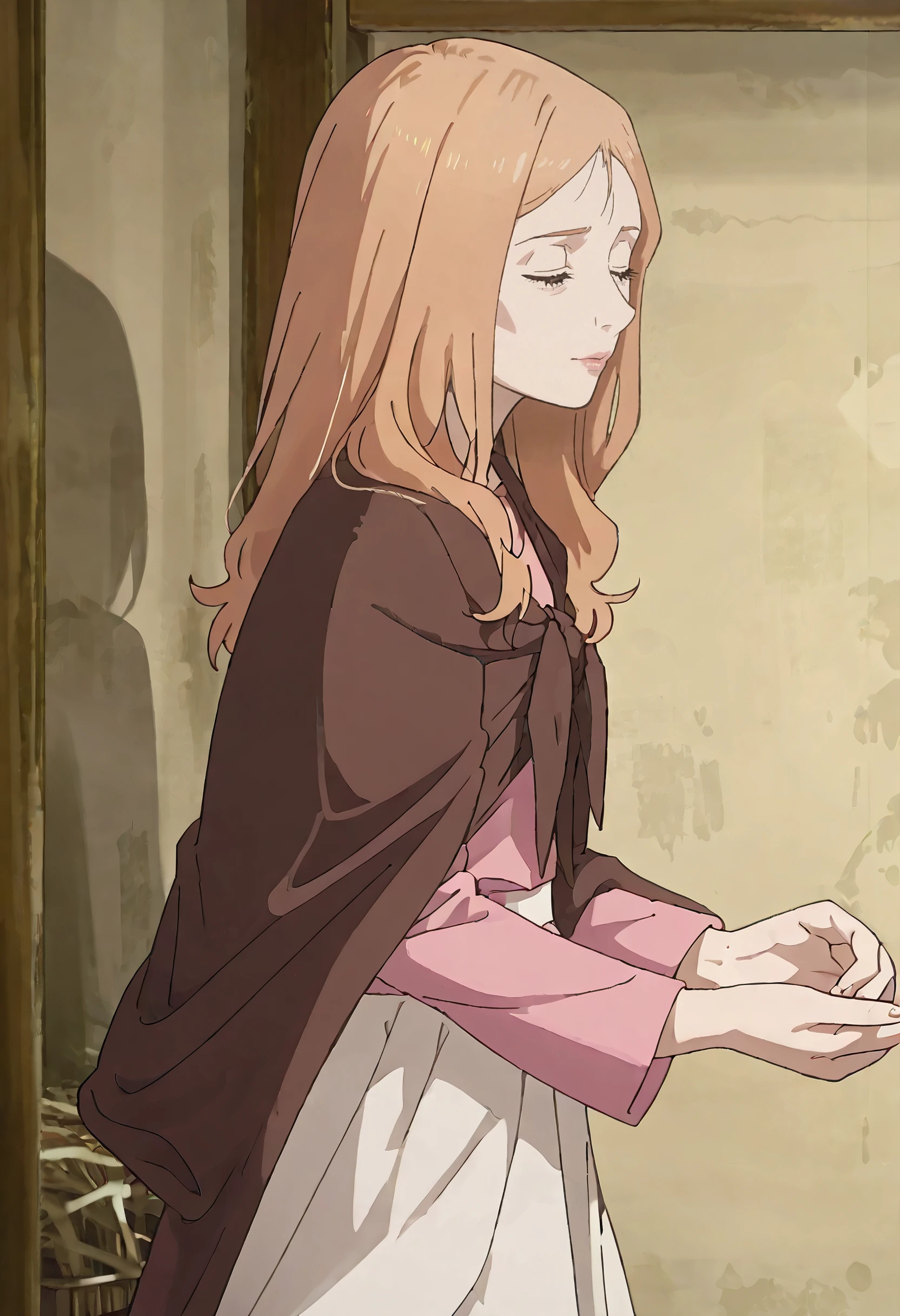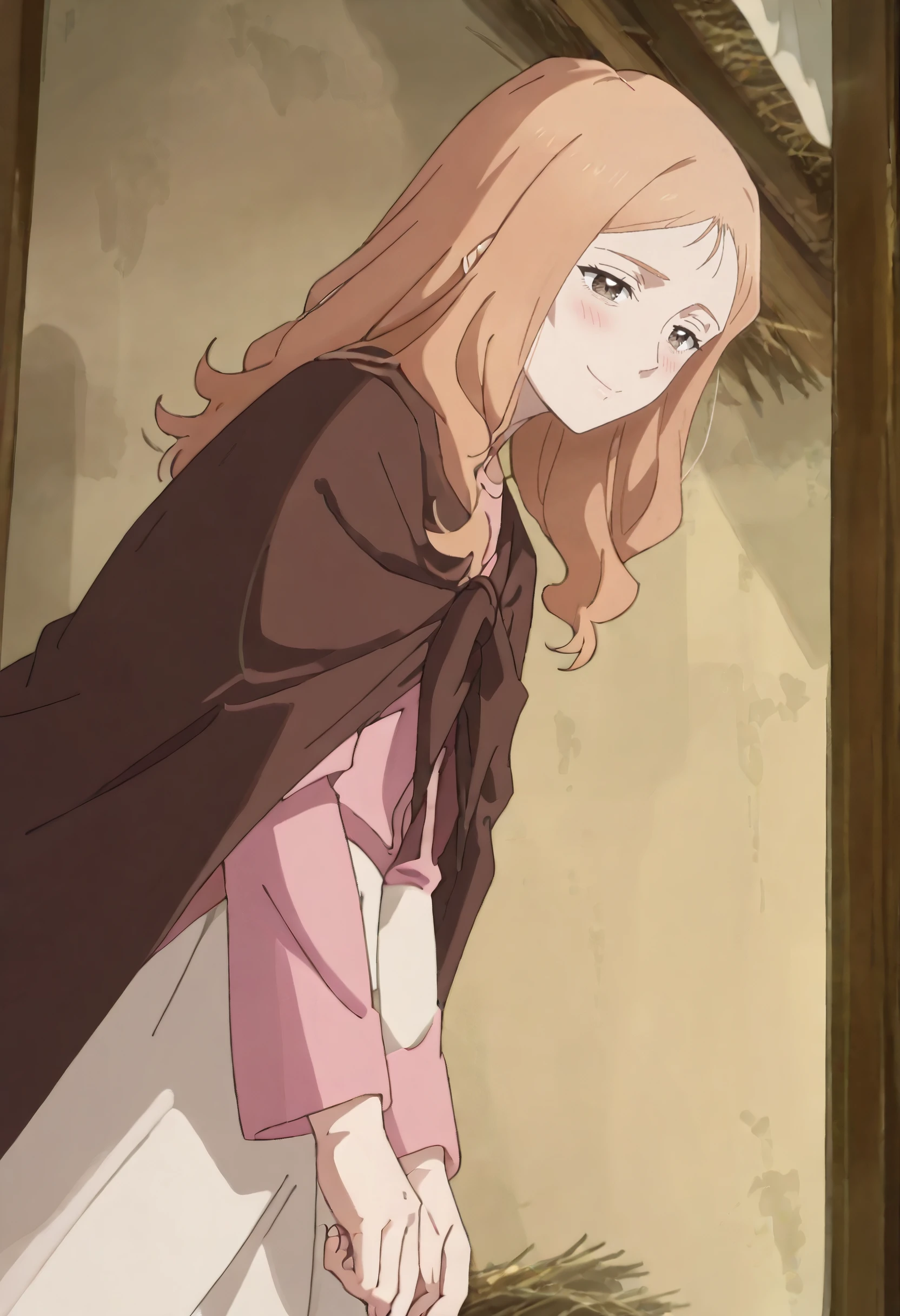 NoorsOutfit, brown cloak, cape, white skirt, pink shirt, long skirt, shawl, long sleeves,
