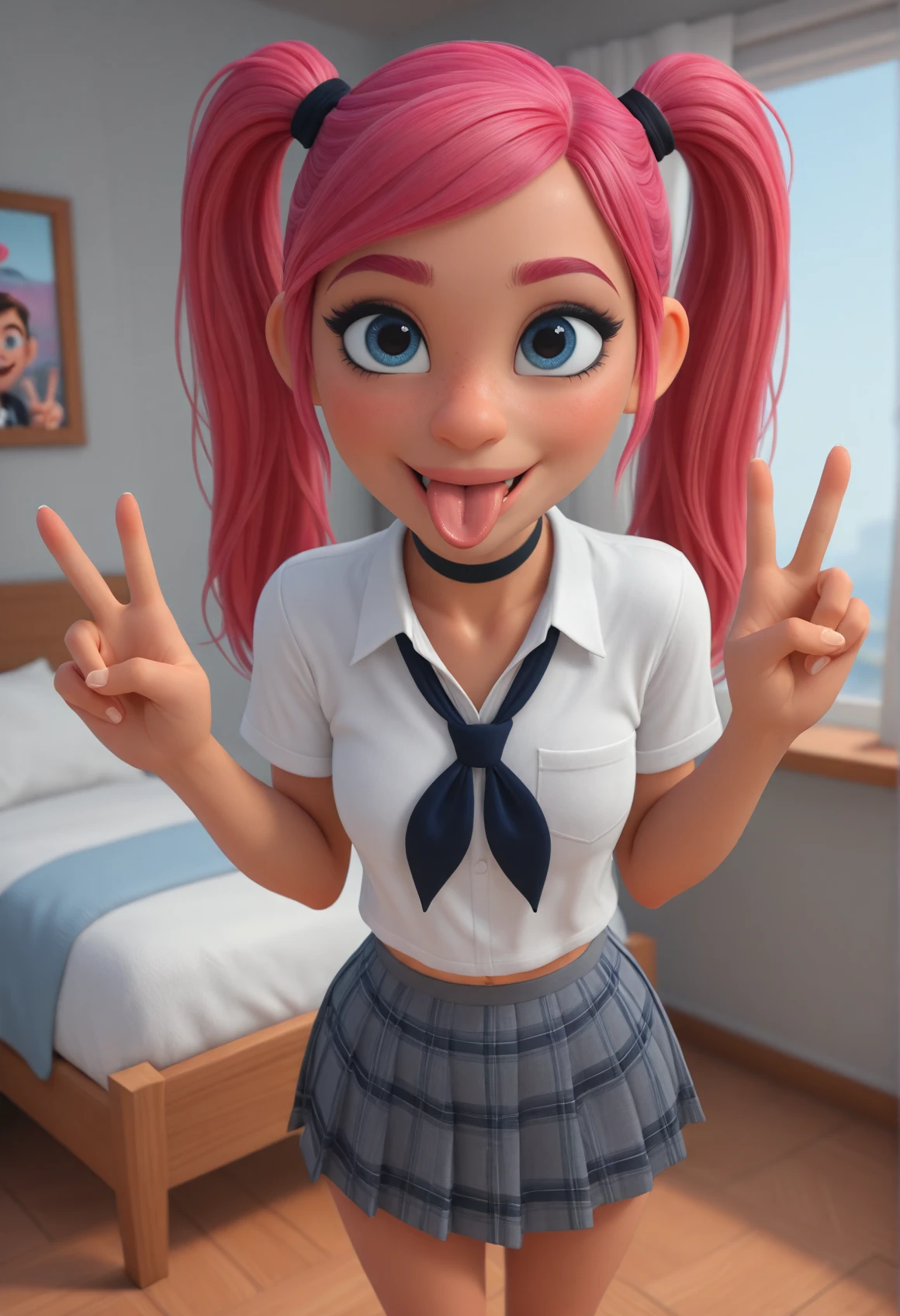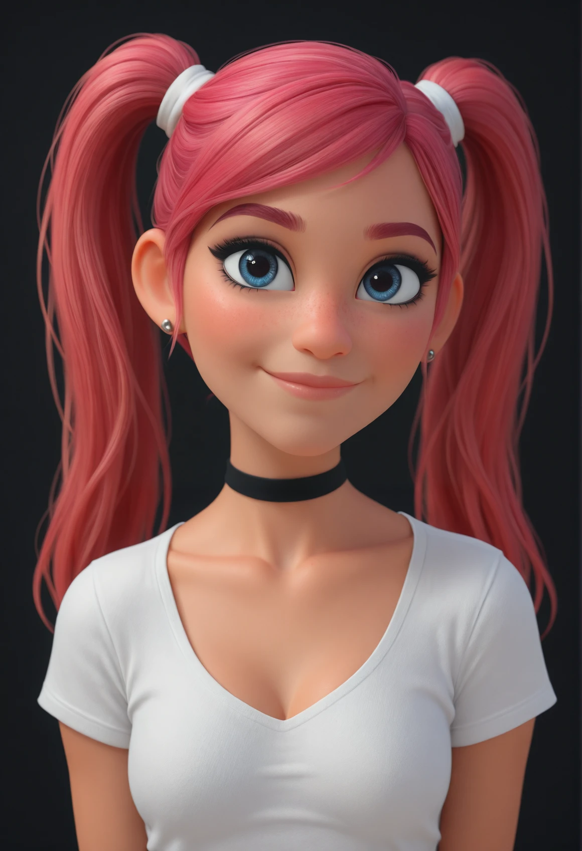IsabelleCute, pink hair, long hair, twin tails, blue eyes