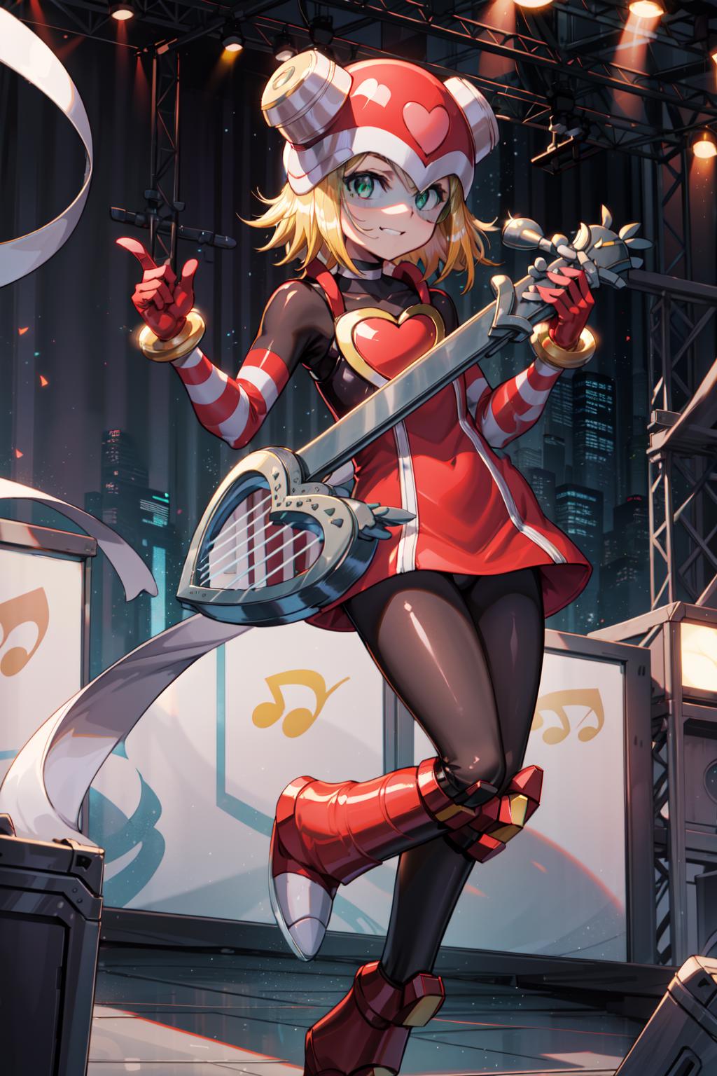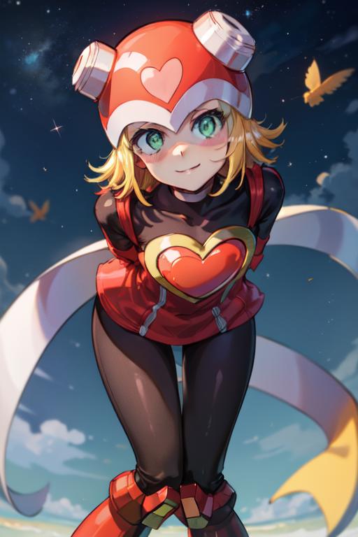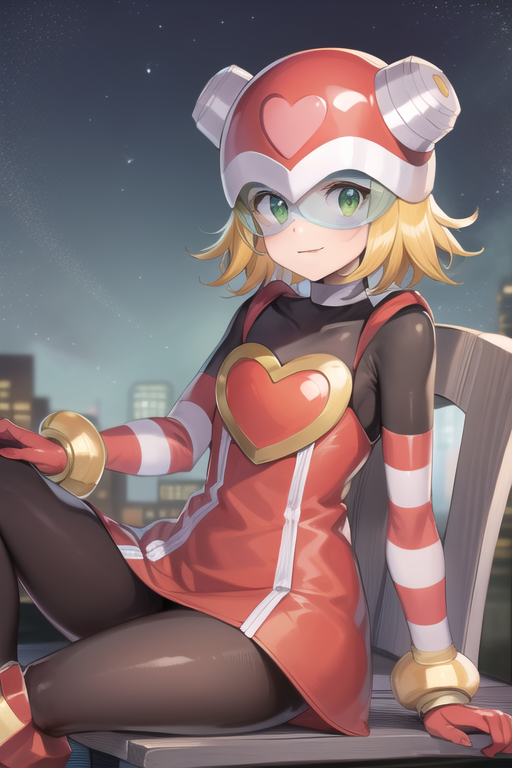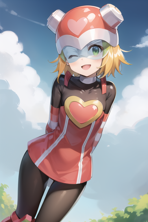 blonde hair, short hair, bodysuit, heart, helmet, green eyes