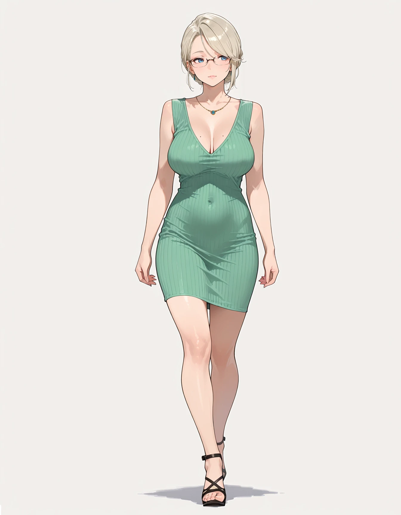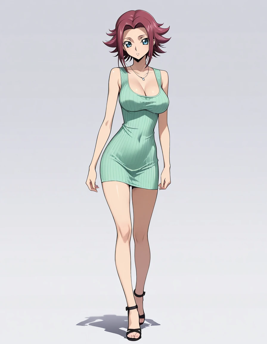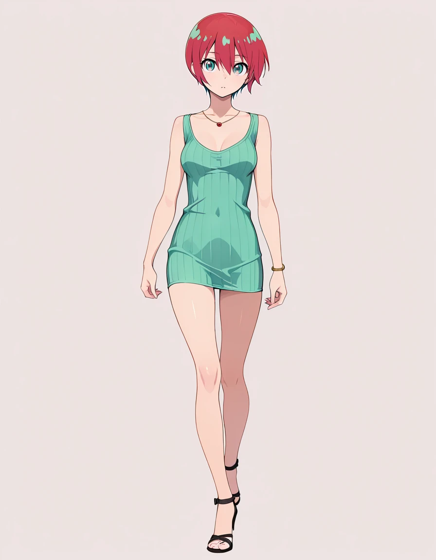 mai_sexy_green_dress,ribbed_dress,short_dress,green_dress,necklace,strappy_heels