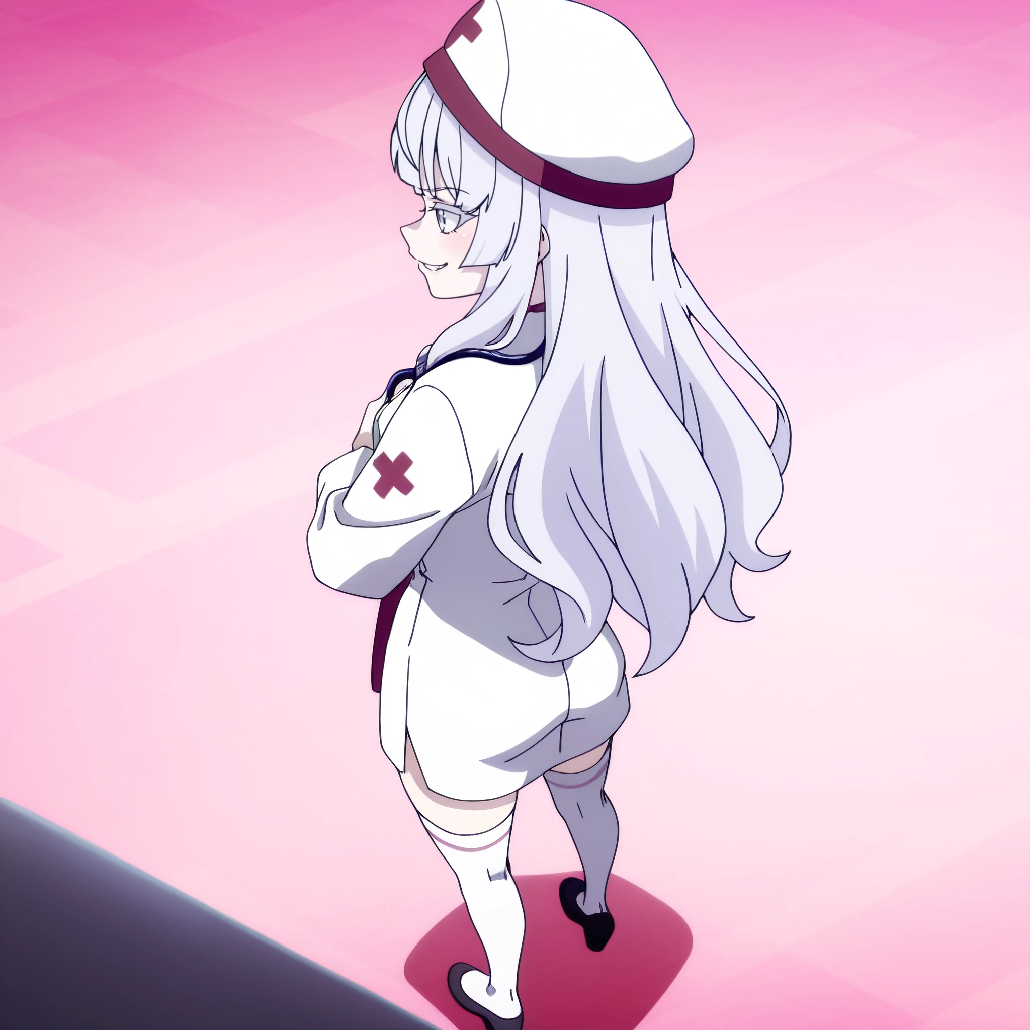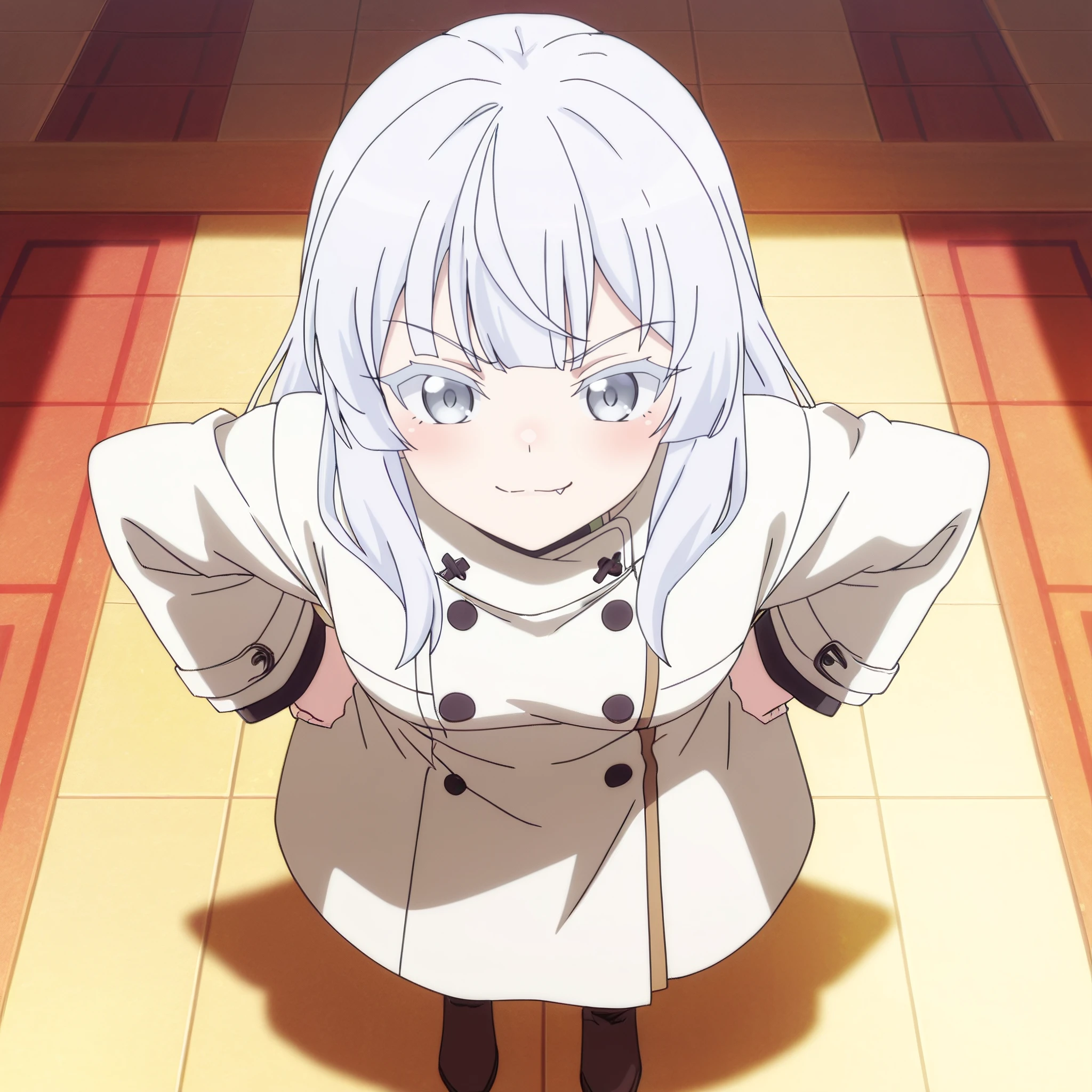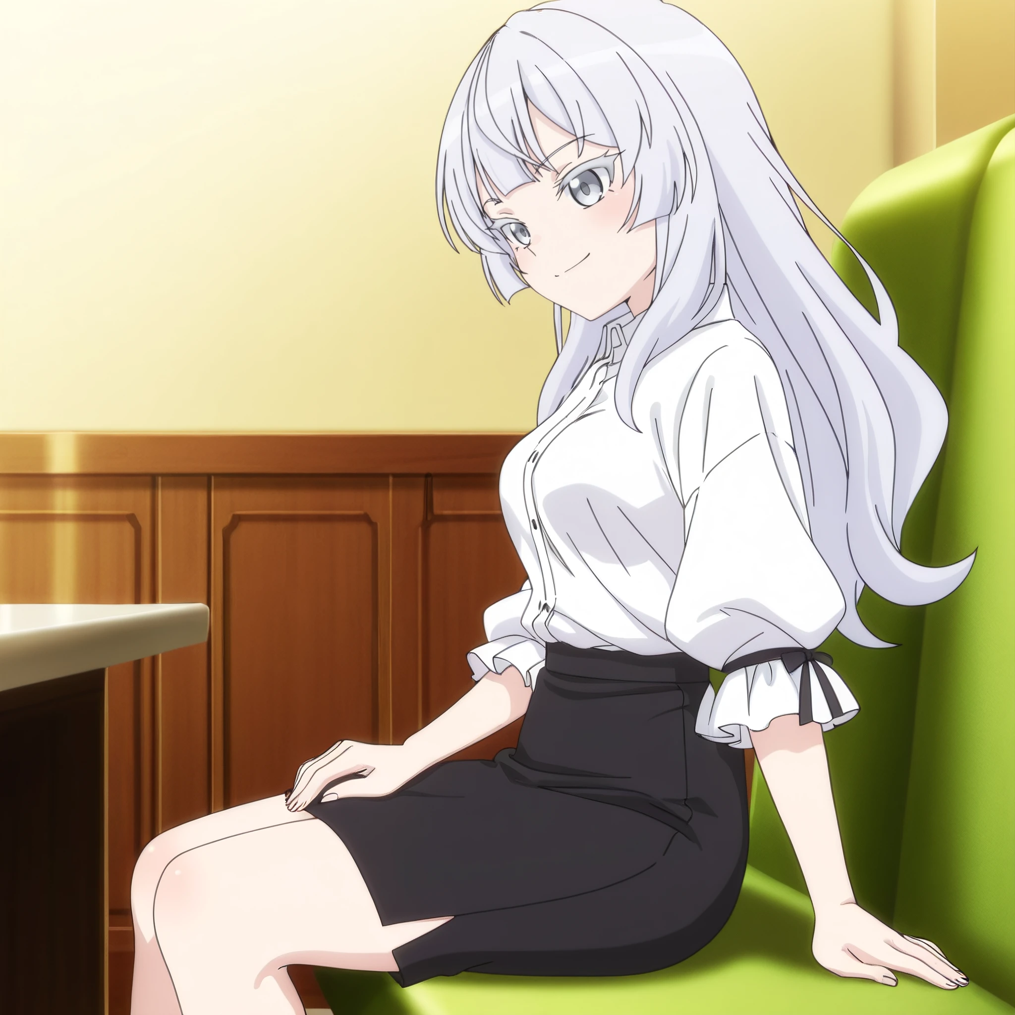 AMGChloe, long hair, bangs, eyebrows visible through hair, grey eyes, blunt bangs, silver hair,