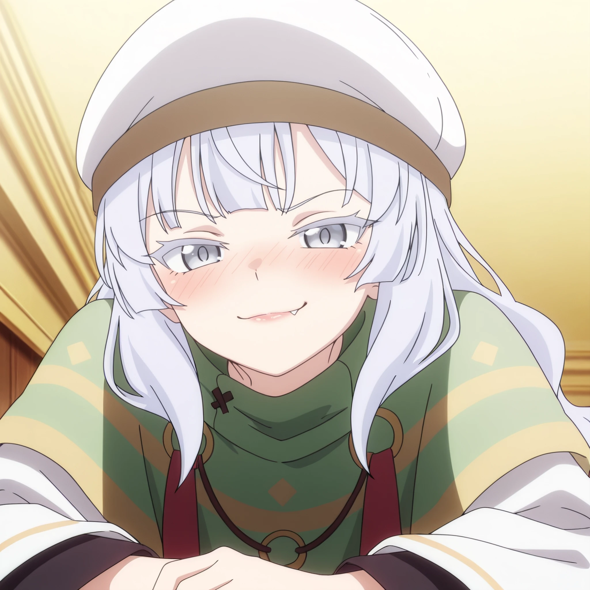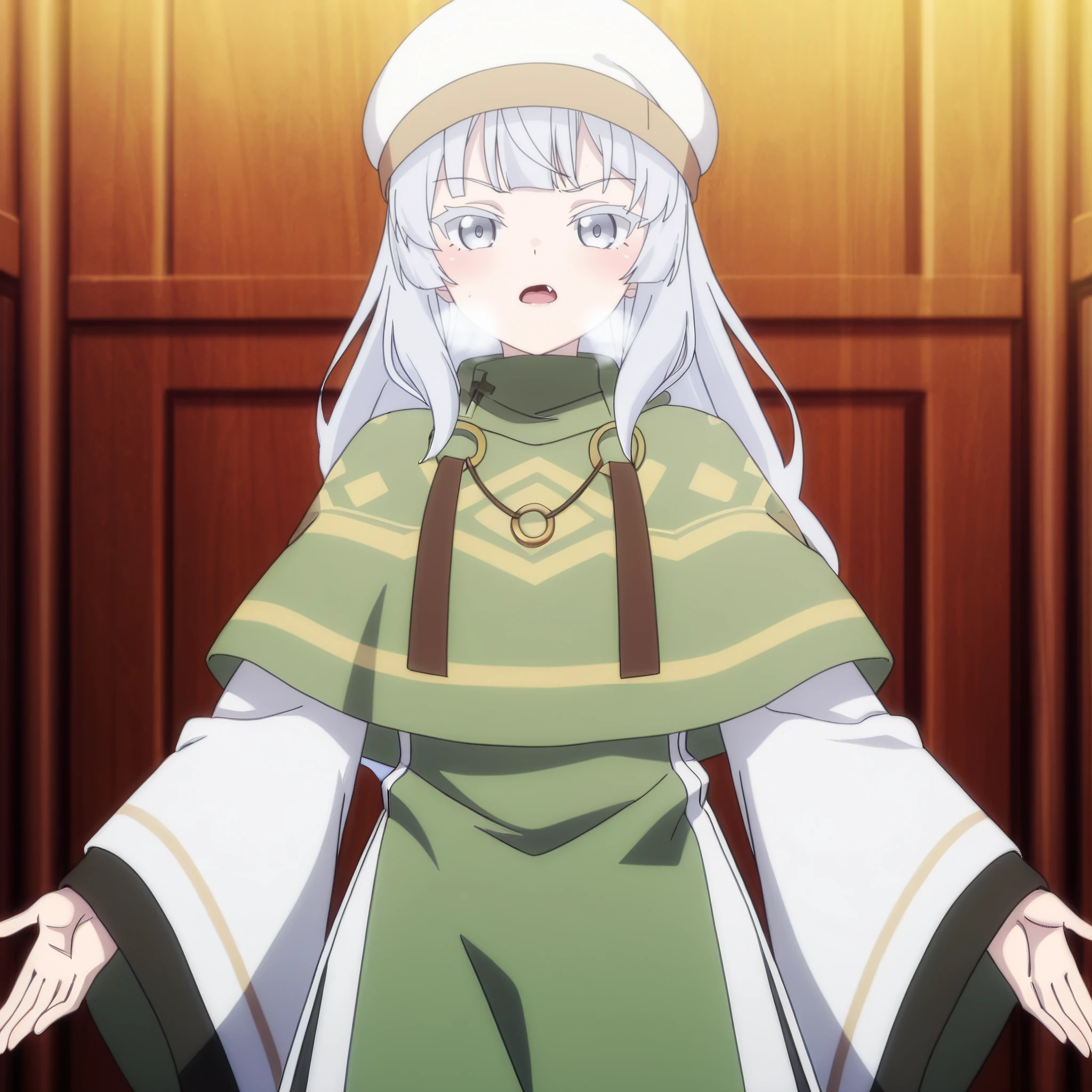 ChloeOutfit, hat, white headwear, wide sleeves, long sleeves, dress, necklace, capelet, robe,
