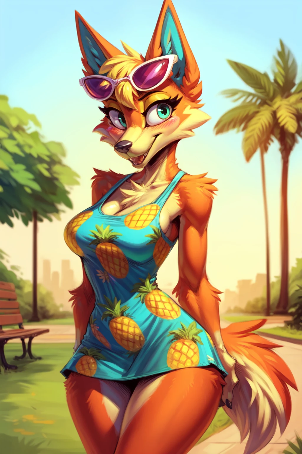 Audie LoRA trained on NovelAI with Kohya training scripts using the DAdaptAdam optimizer at 512x512 resolution. Works great, main issue is an extreme bias towards teal for dresses due to every dress in the dataset being teal. Look at my cocktail dress photo prompt for an idea of how to combat that. Add (sunglasses) to your prompt to add her signature head sunglasses. Has trouble getting sunglasses on her eyes due to them always being on her head in the training data. Add (pineapple dress) to your prompt to get her signature dress. Should have wide compatibility with model mixes based on NovelAI, which is most of them.