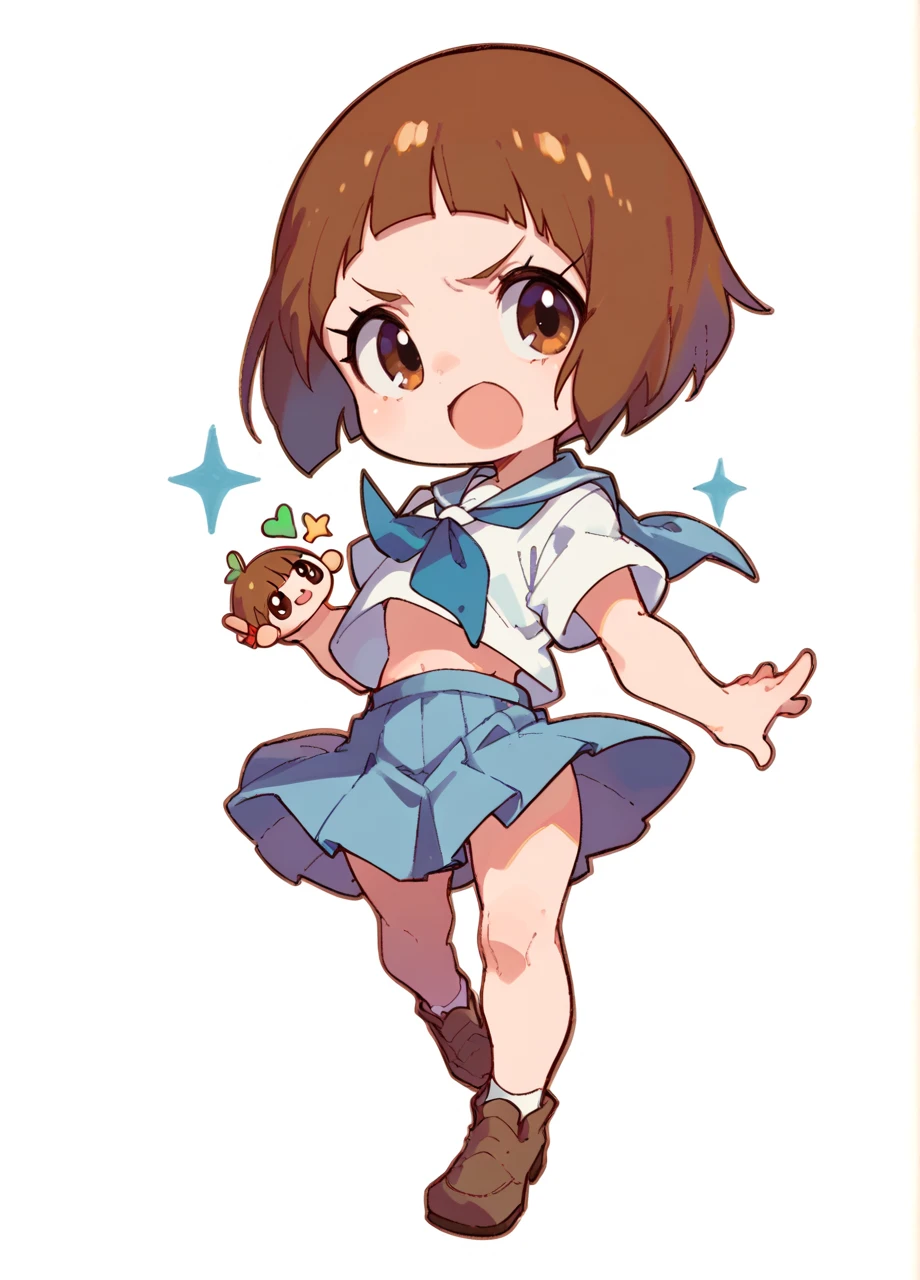 1girl, mankanshoku mako, bob cut, brown hair, brown eyes