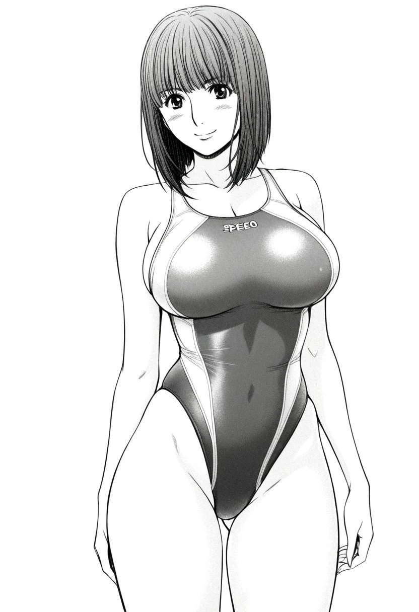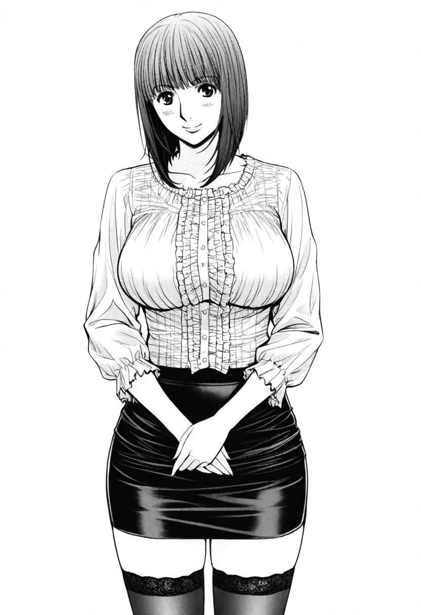 miyoshi, monochrome, greyscale, medium hair, large breasts, mature female,