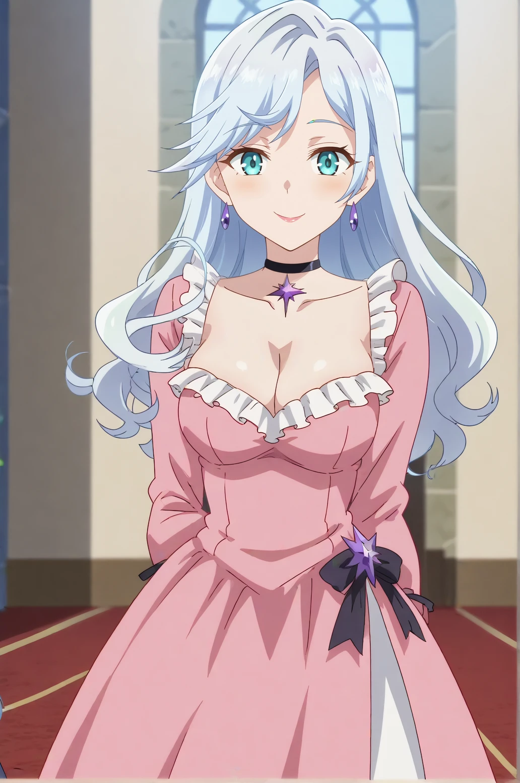 esri tuatha dé,,long hair,black chocker,breasts,cleavage,earrings,jewelry,dress
