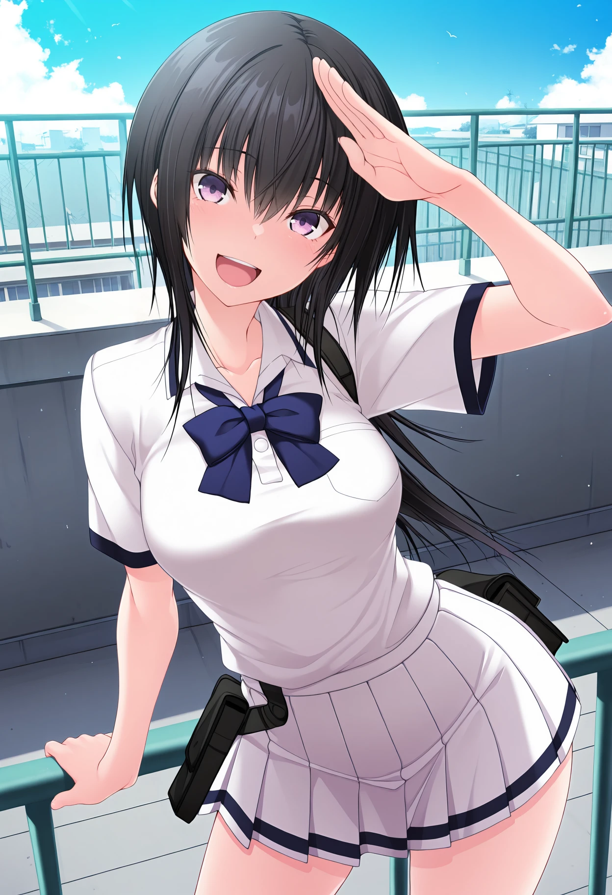 KJOtsubame, black hair, purple eyes, hair between eyes, long hair,