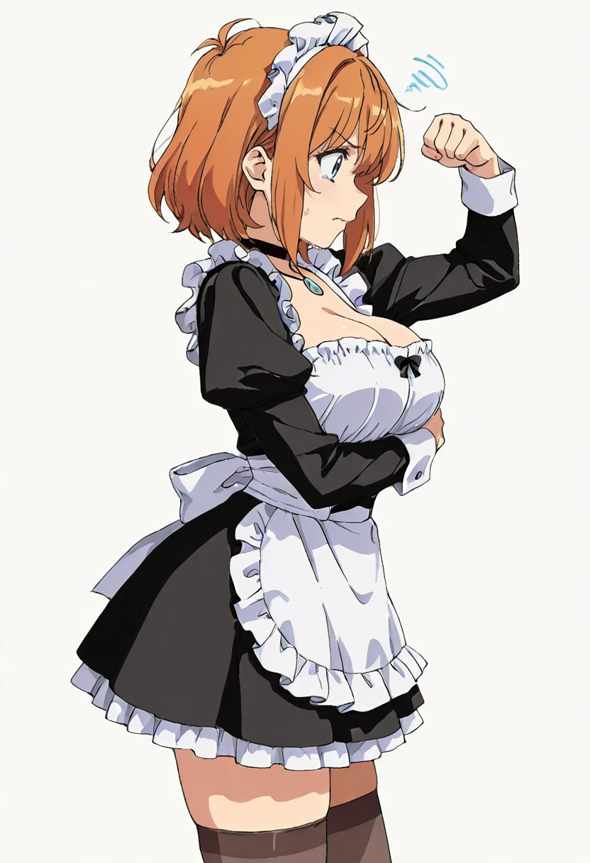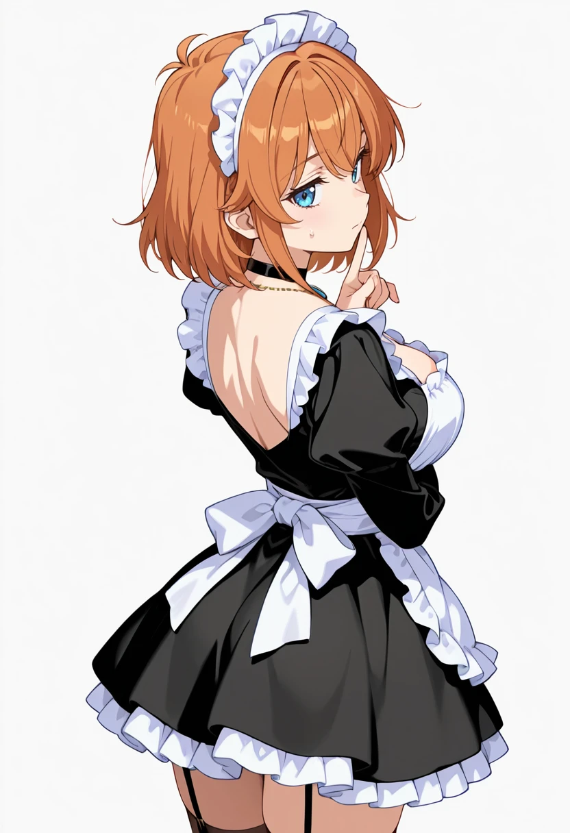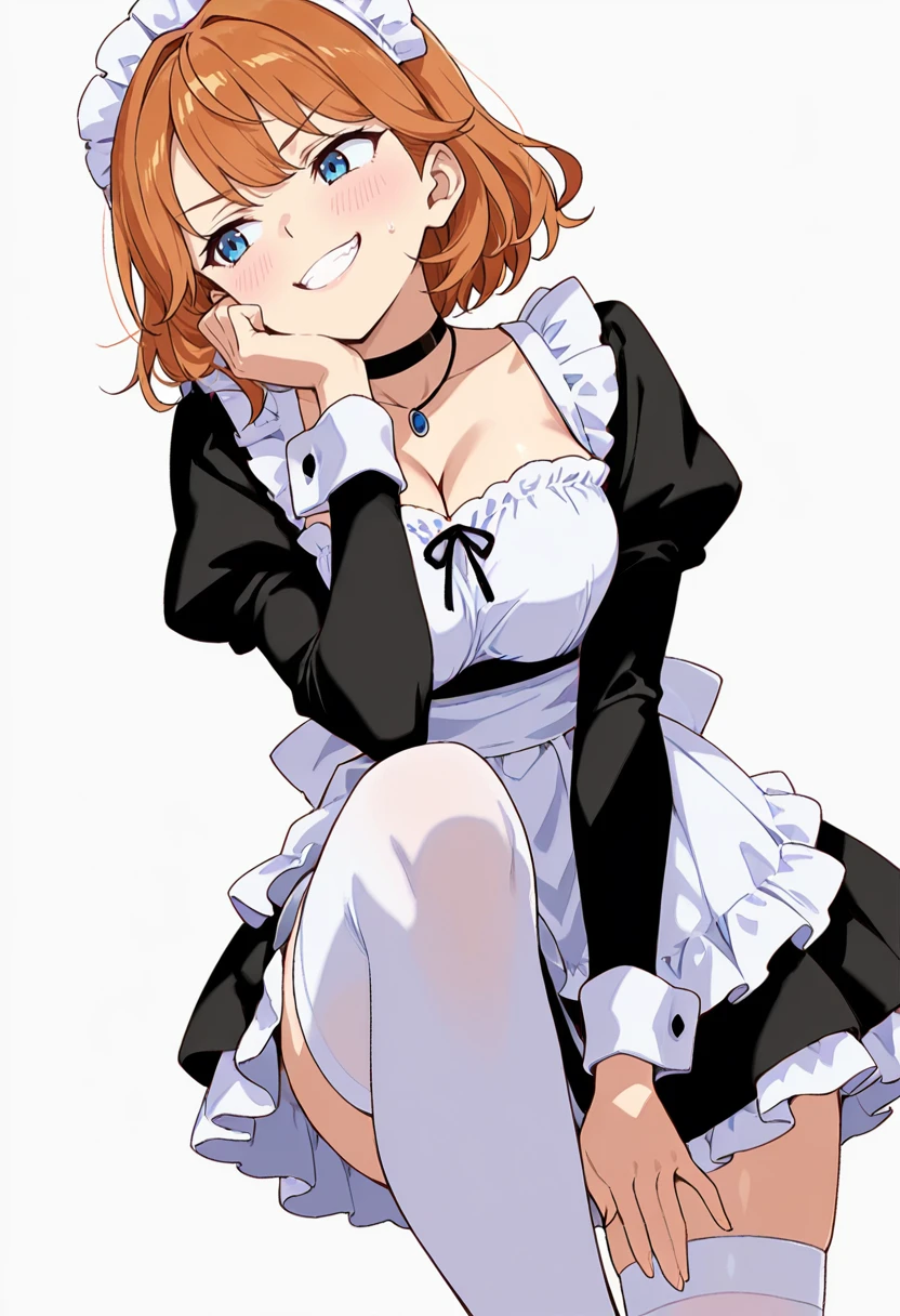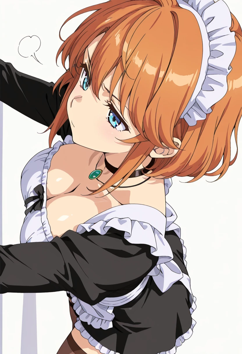 black choker, maid headdress, collar, thighhighs, frills, long sleeves, necklace,anime coloring, enmaided,