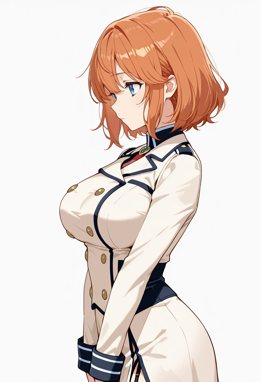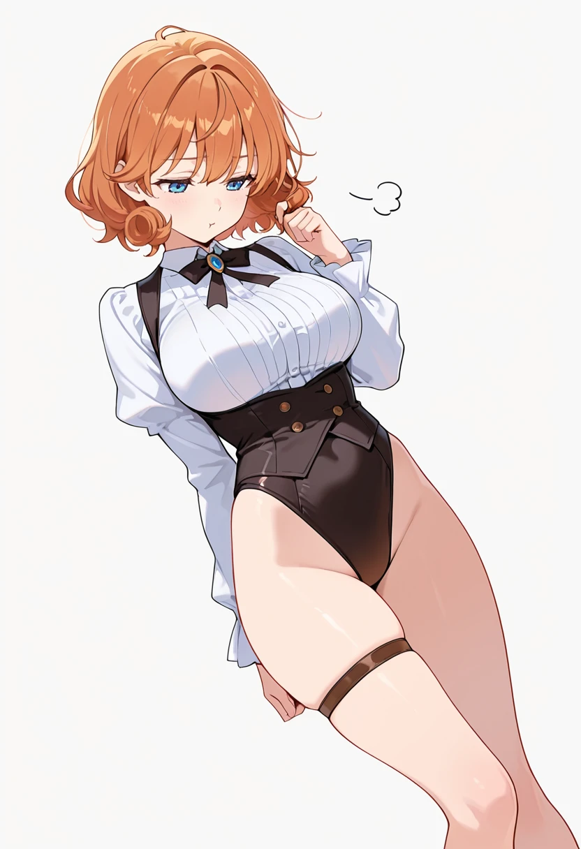 aine_cnr, 1girl, large breasts, blue eyes, short hair, orange hair,