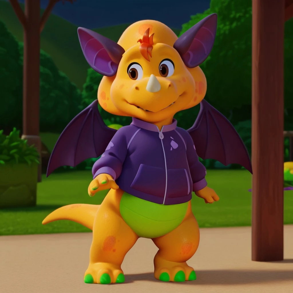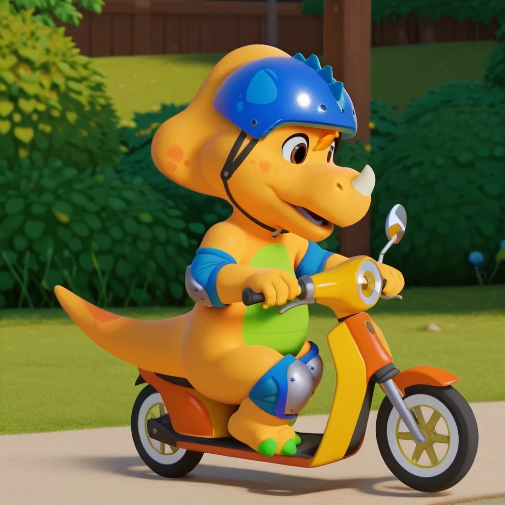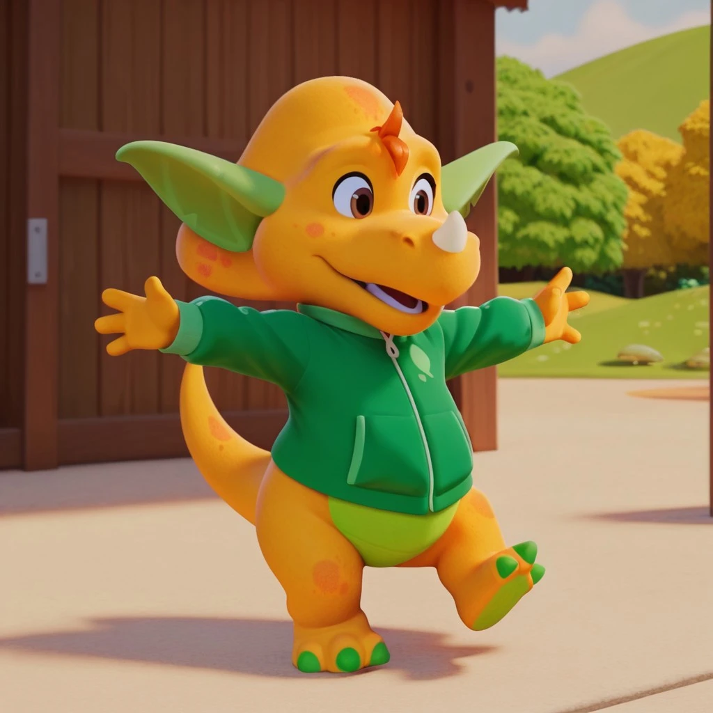 billybwil, semi-anthro, male, dinosaur, yellow skin, orange hair tuft, brown eyes, nose horn