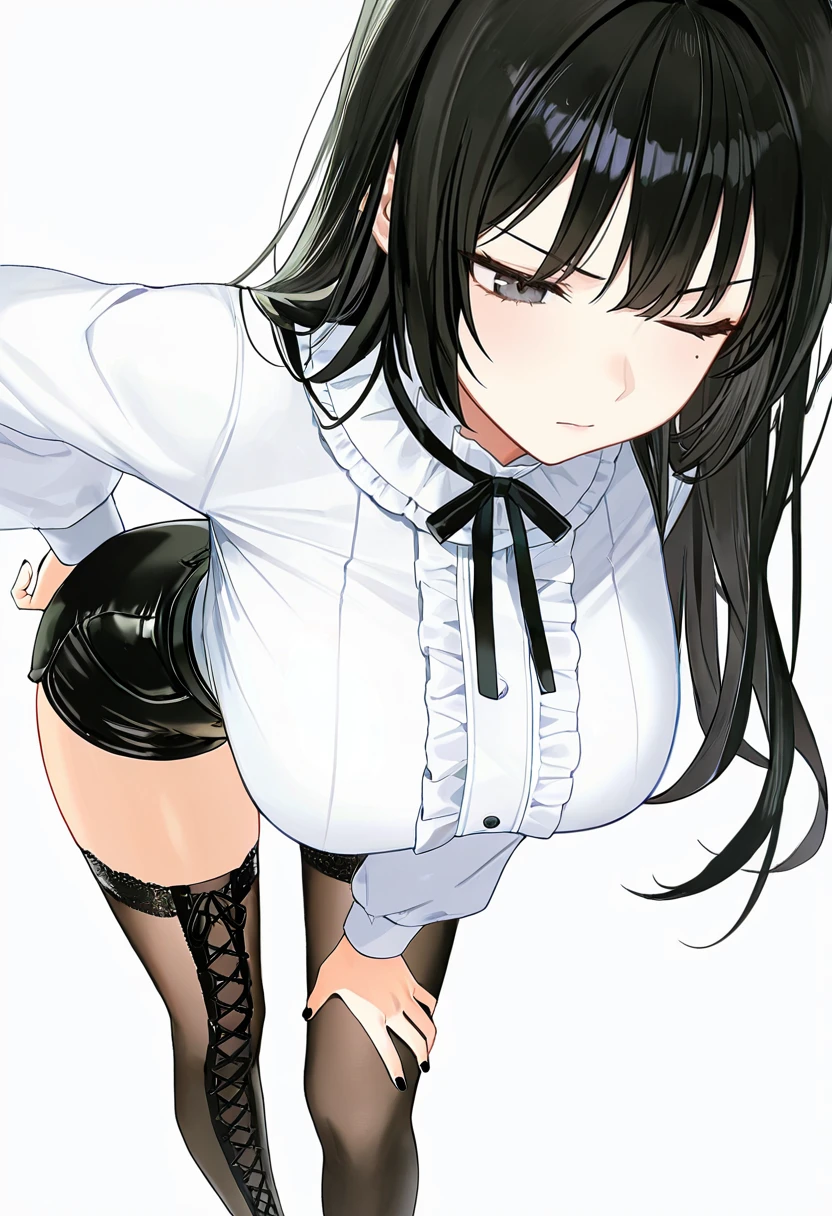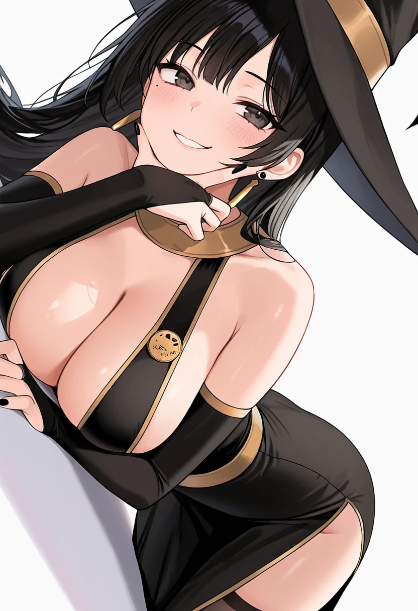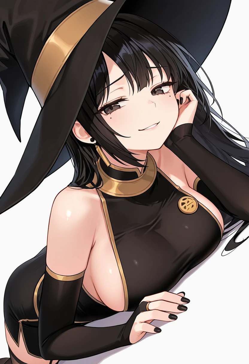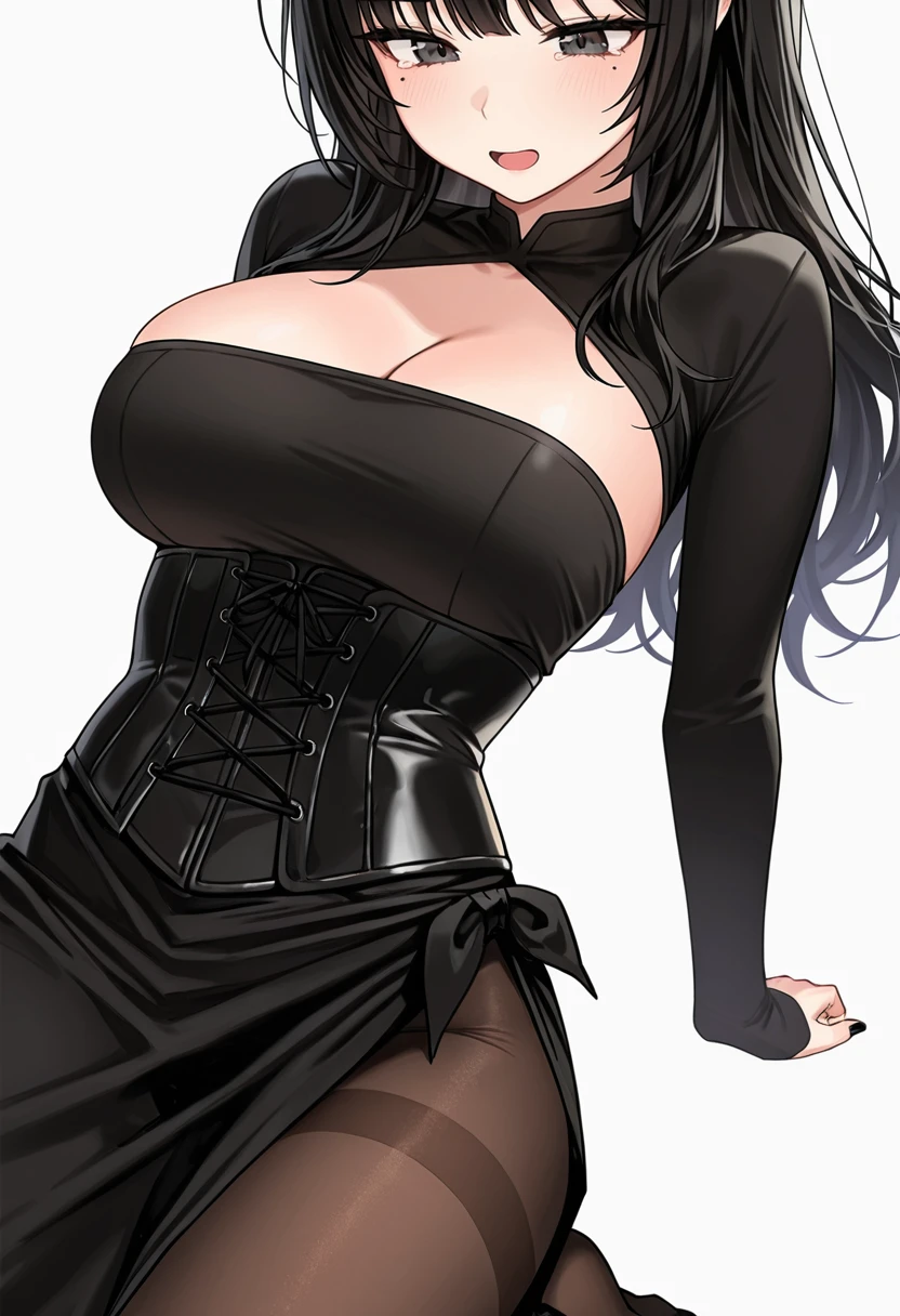 flames_cnr,1girl, long hair, black hair,large breasts, mole under eye,black nails,👗Default Outfit