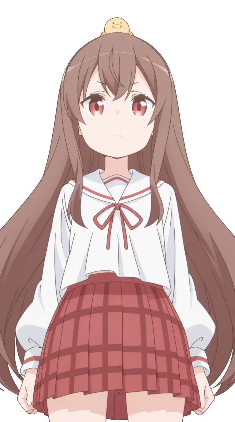 skirt, serafuku, red skirt, plaid skirt, pleated skirt, white shirt, red ribbon, red trim, white sailor collar, puffy sleeves,