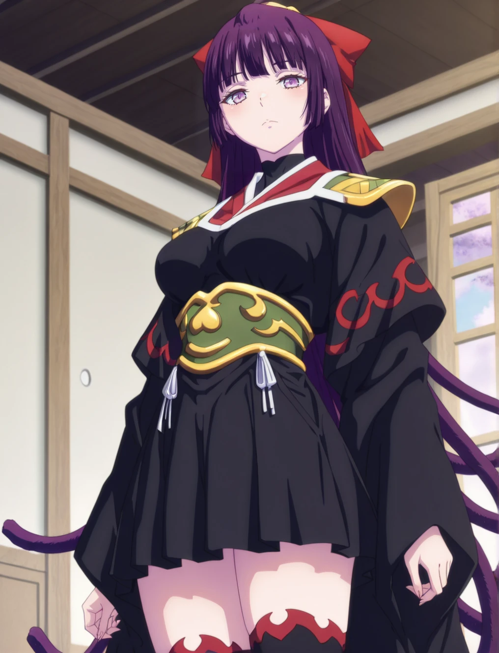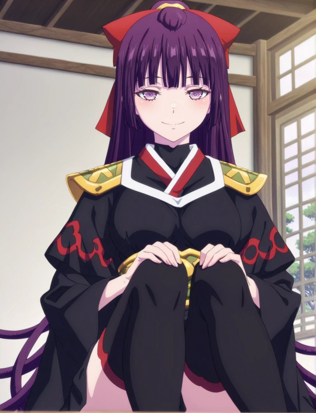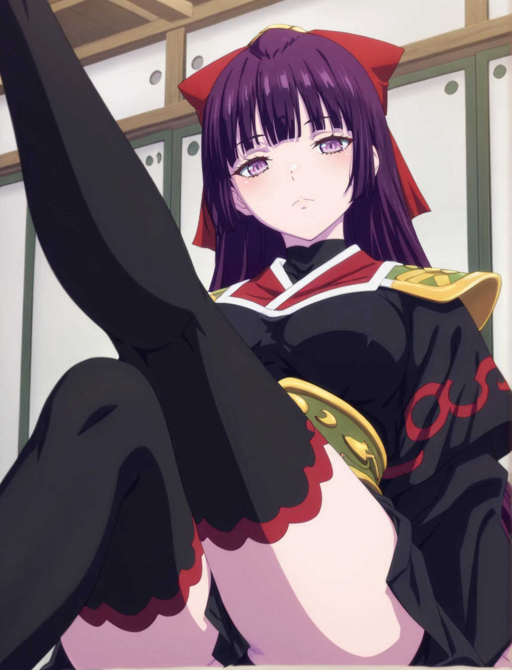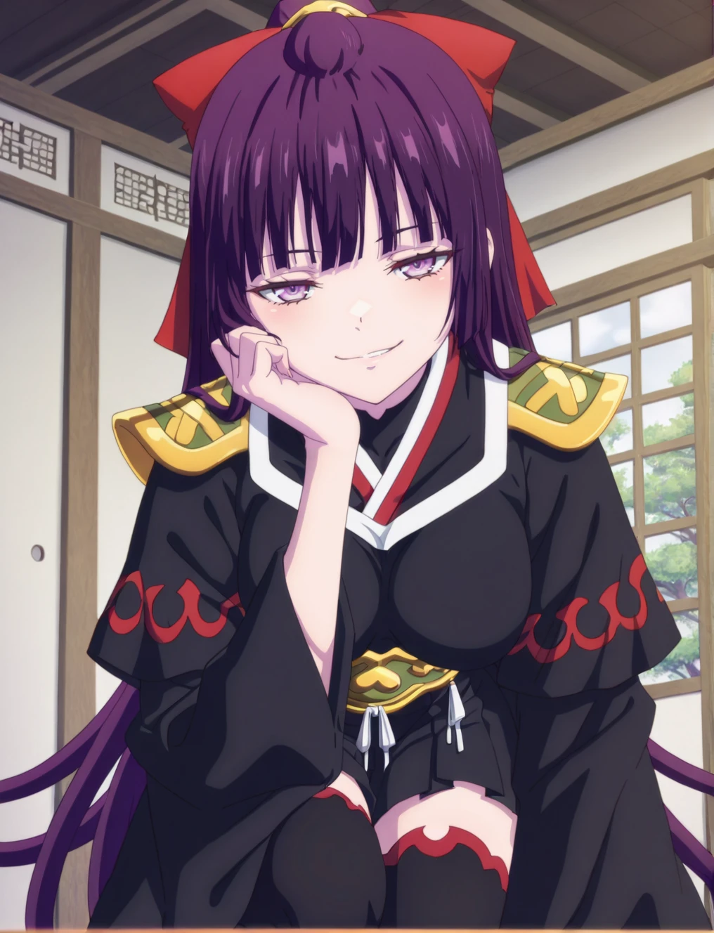 shikoku (mato seihei no slave), 1girl, long hair, hime cut, purple hair, purple eyes