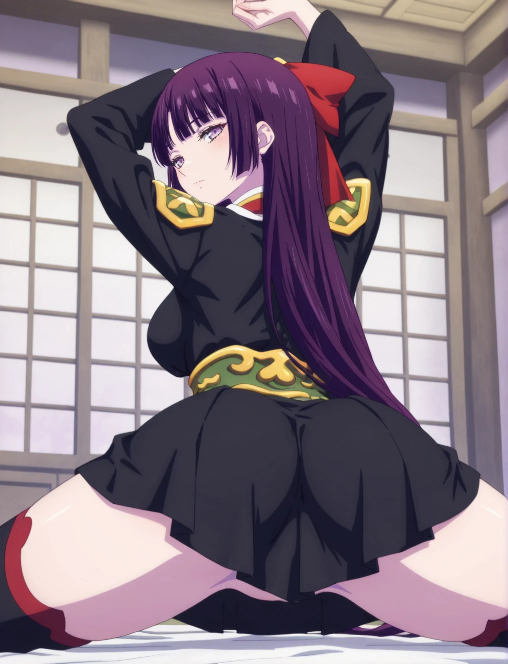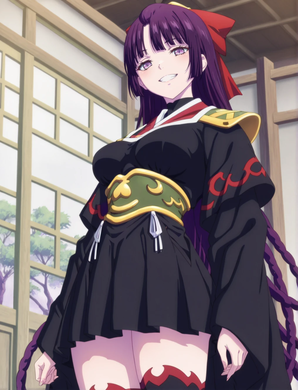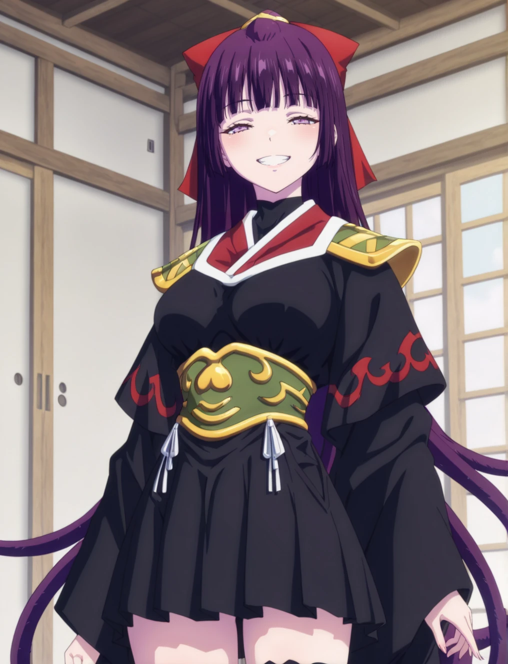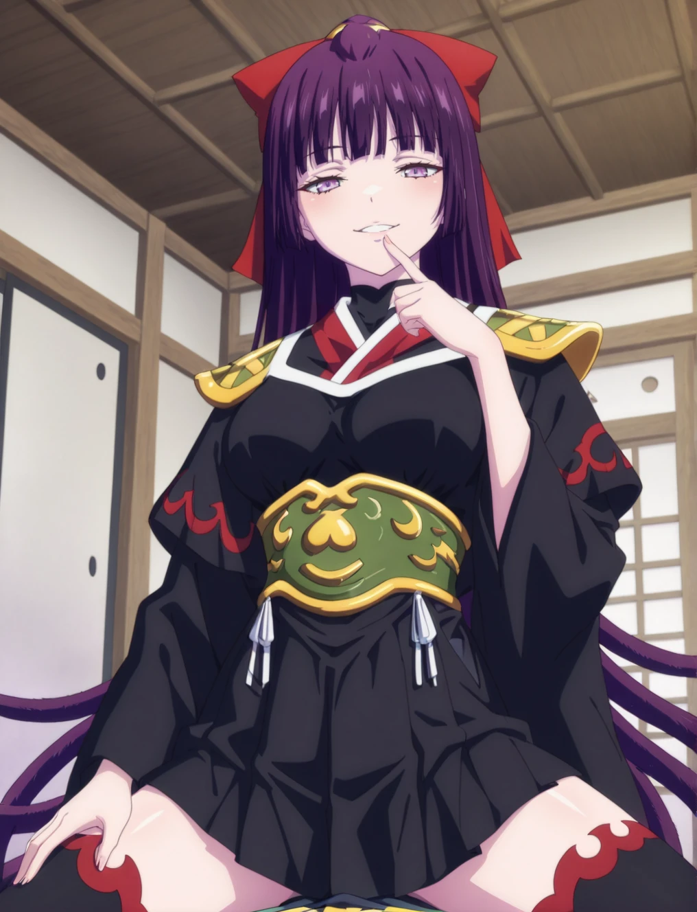shikoku (mato seihei no slave), 1girl, long hair, hime cut, purple hair, purple eyes