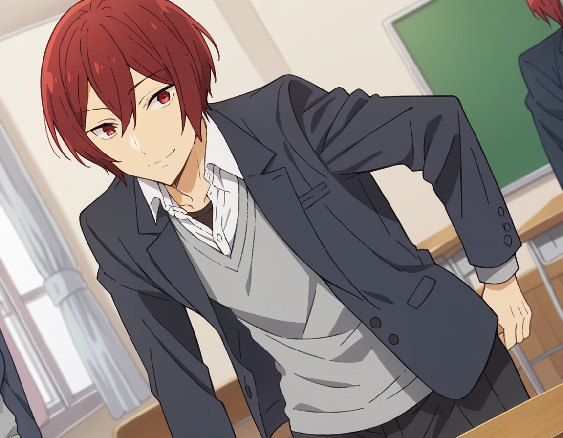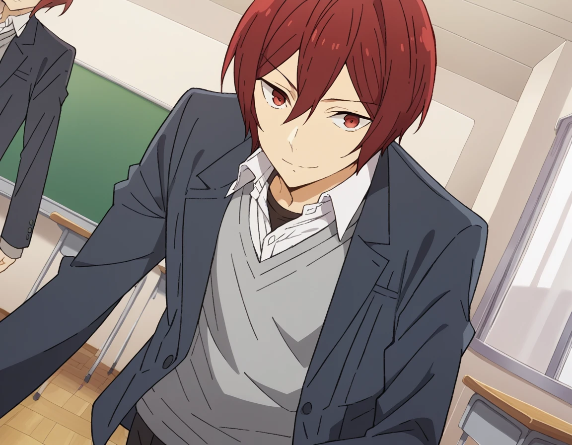 kakeru sengoku, short hair, red eyes, hair between eyes, male focus, red hair,