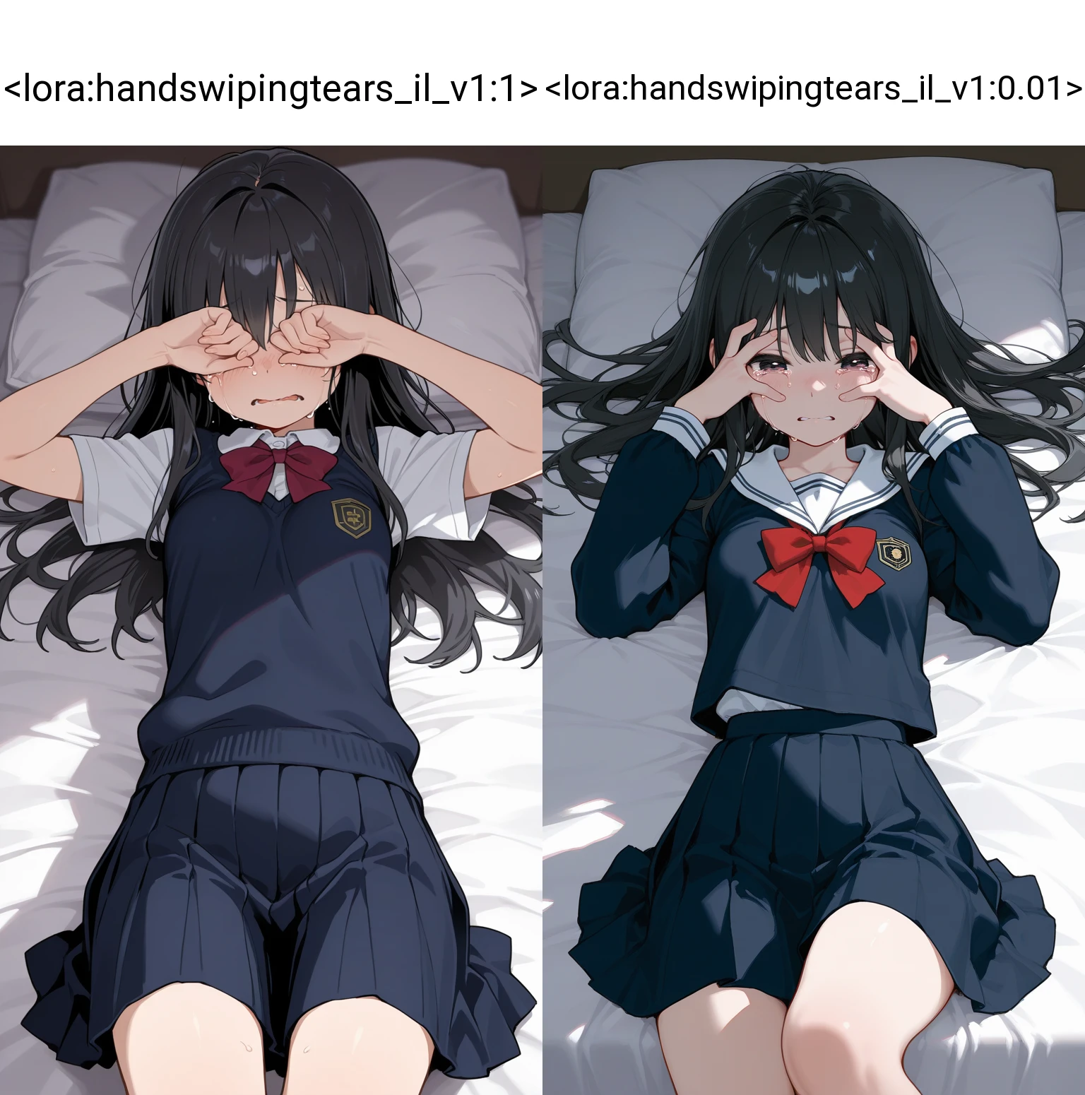 両手で目の涙を拭く表現を出しやすくするLoRA