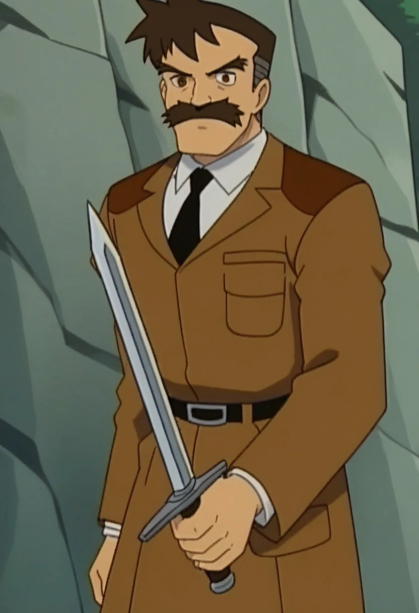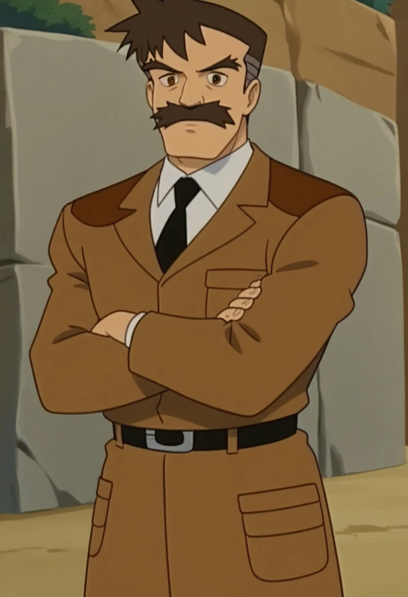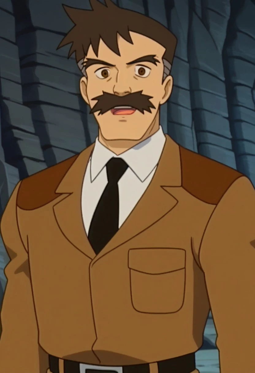 1boy, solo, Christopher Barsac, mustache, necktie, brown hair, brown eyes,